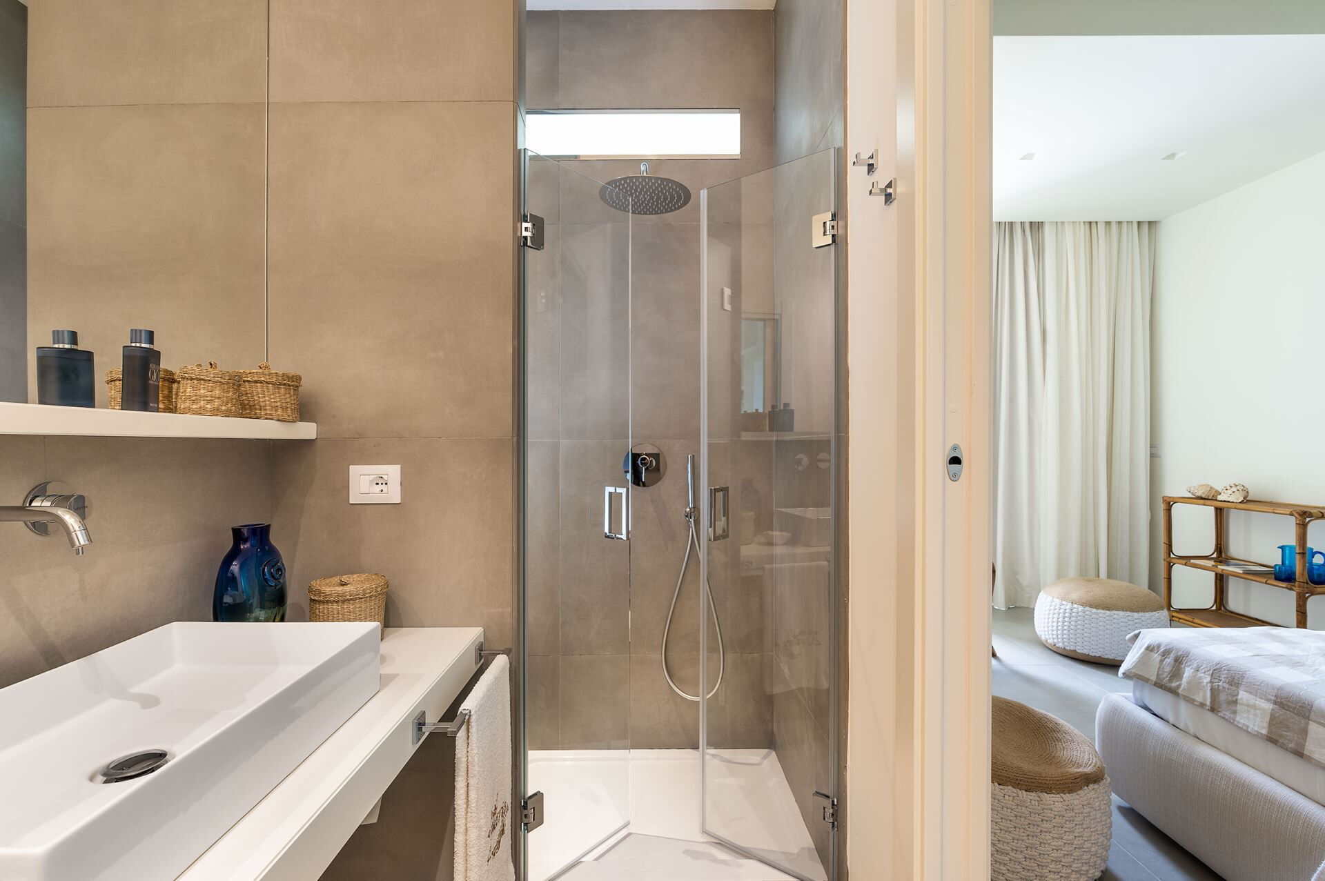Villa Del Faro erstreckt sich über zwei unabhängige Ebenen und bietet flexible Unterkünfte für bis zu 16 Gäste in 8 Schlafzimmern mit 9 Badezimmern. Die erste Etage wird über eine imposante Außentreppe erreicht und öffnet sich in eine geräumige Eingangshalle, die den Ton für die raffinierten Innenräume vorgibt. Diese Ebene verfügt über ein großes Wohnzimmer mit Essbereich, eine voll ausgestattete Küche und einen Waschraum. Die Schlafbereiche auf dieser Etage umfassen 2 Doppelschlafzimmer mit Kingsize-Betten, jeweils mit eigenem Bad mit Dusche, 2 zusätzliche Doppelschlafzimmer mit eigenem Bad mit Dusche sowie 1 Schlafzimmer mit französischem Bett und eigenem Bad mit Dusche. Das Erdgeschoss, nur von außen zugänglich, bietet völlig separate Wohnbereiche mit einem eigenen großen Wohnzimmer, Essbereich und Küche. Diese Ebene beherbergt 3 Schlafzimmer: 1 Doppelschlafzimmer mit Kingsize-Bett und eigenem Bad mit Badewanne, 1 Zweibettzimmer mit eigenem Bad mit Dusche und 1 Doppelschlafzimmer mit eigenem Bad mit Dusche. Das Erdgeschoss verfügt außerdem über einen speziellen Spielraum, der mit einer Tischtennisplatte, Tischfußball und einem Boxsack ausgestattet ist und sich perfekt für Unterhaltung und Erholung eignet. Die Villa kann auch für kleinere Gruppen von bis zu 10 Gästen gemietet werden, wobei nur die erste Etage ohne das Erdgeschoss genutzt wird.