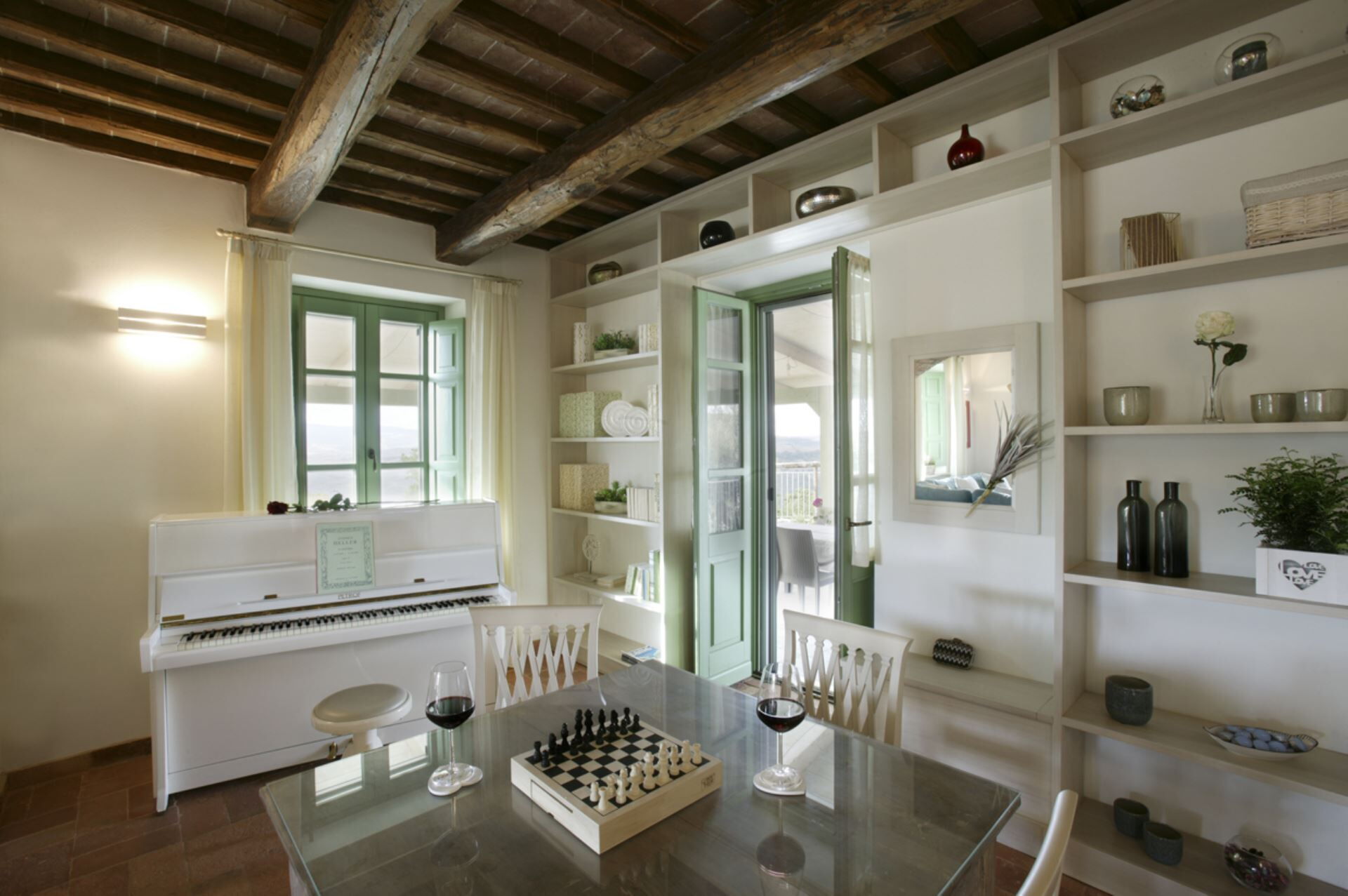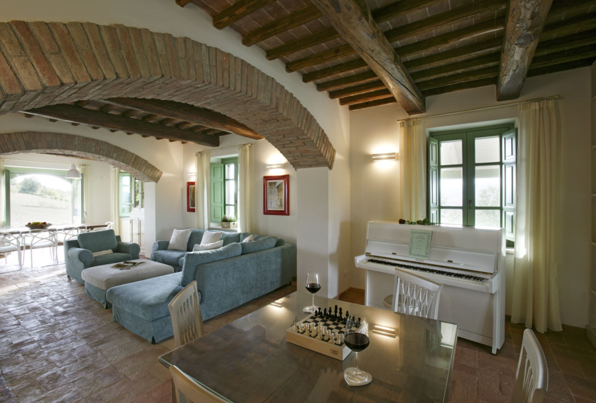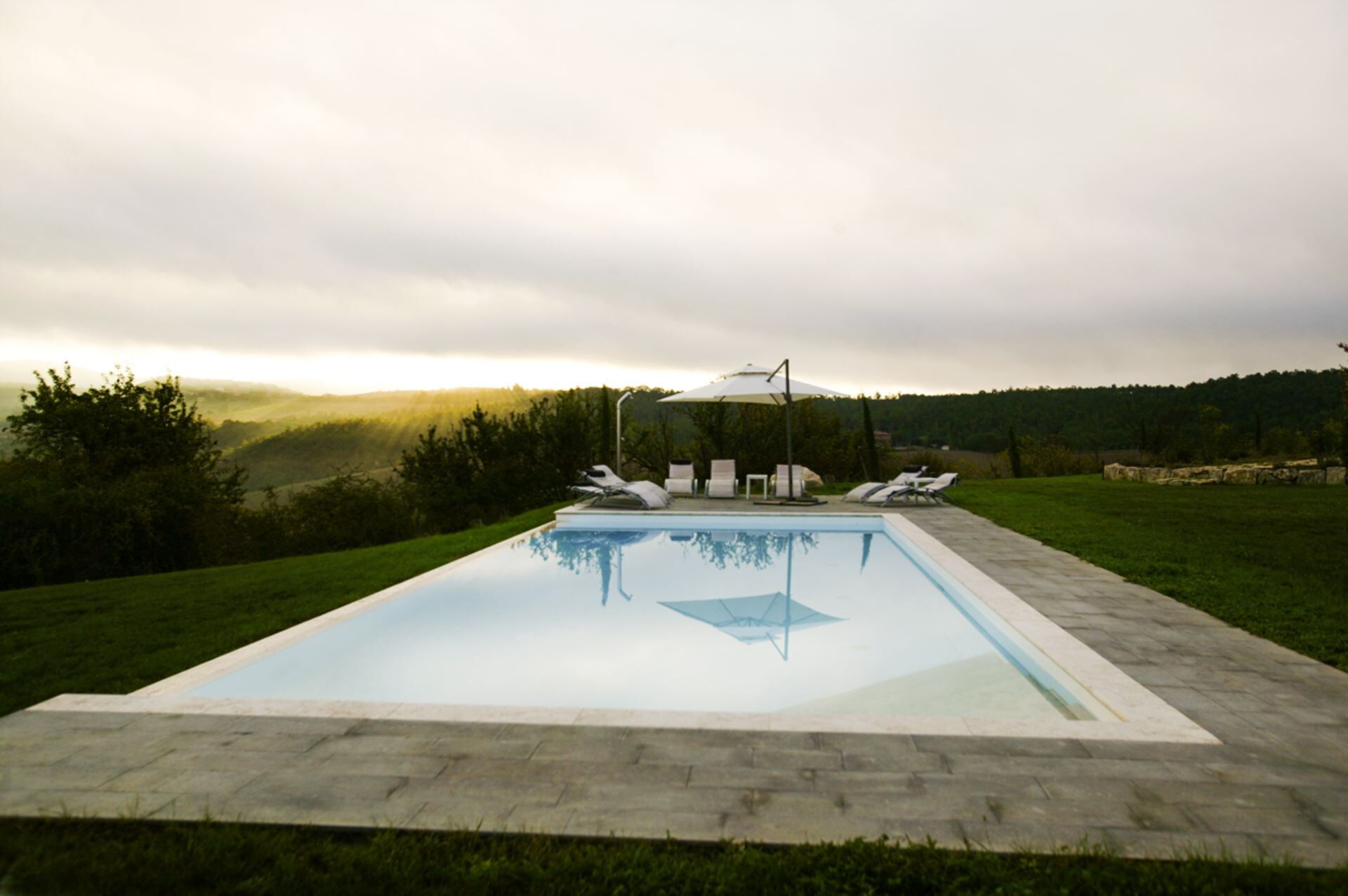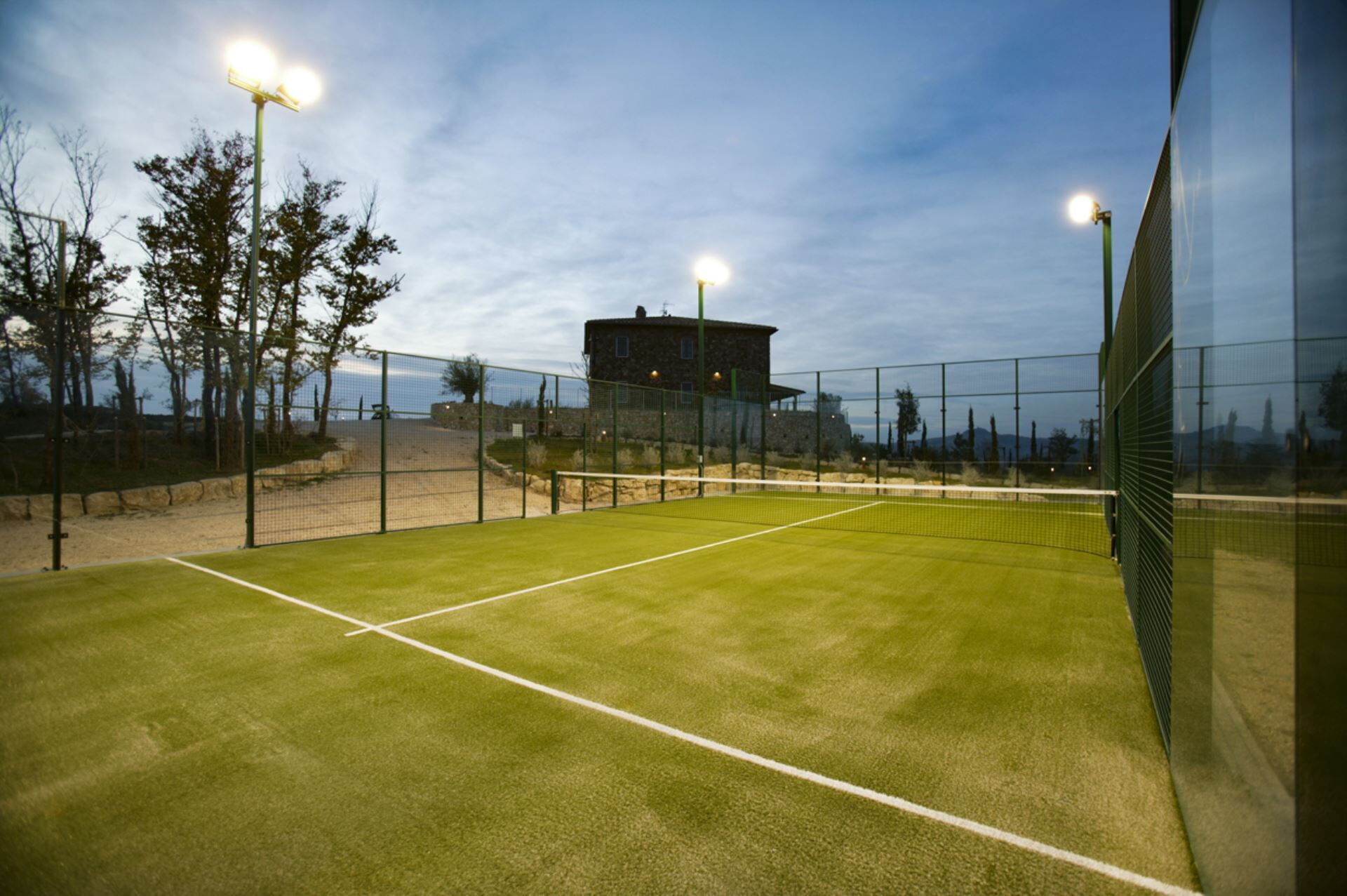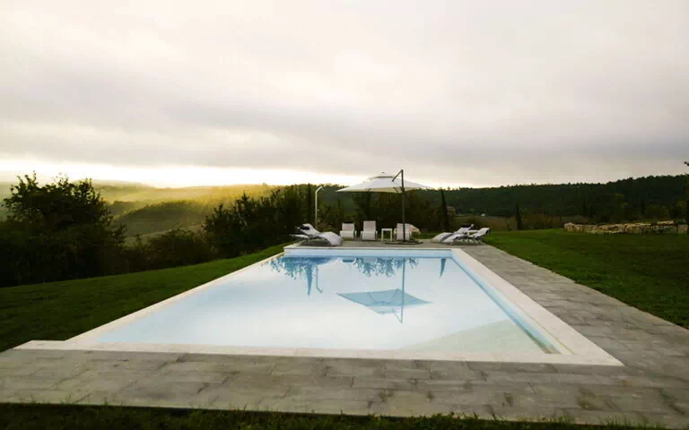 Die Außenbereiche der Villa Eline sind so gestaltet, dass sie Ihnen außergewöhnliche Freizeit- und Entspannungsmöglichkeiten in einer atemberaubenden natürlichen Umgebung bieten. Der weitläufige Garten verfügt über einen wunderschönen Olivenhain, der auf dem gesamten Gelände eine friedliche mediterrane Atmosphäre schafft. Der große Panorama-Swimmingpool bildet das Herzstück des Außenbereichs und bietet herrliche Ausblicke über die sanfte Hügellandschaft, während Sie sich an warmen Sommertagen erfrischen. Bitte beachten Sie, dass der Pool vom 30. September bis 30. April geschlossen ist, wobei eine Öffnung während dieser Zeit auf Anfrage möglich ist. Sie finden eine wunderschöne überdachte Veranda, die sich perfekt für Mahlzeiten und Entspannung im Freien eignet, ergänzt durch einen voll ausgestatteten Grillbereich, in dem Sie köstliche Mahlzeiten im Freien zubereiten können. Das Anwesen verfügt außerdem über einen regulären Paddle-Court, der eine hervorragende Möglichkeit für aktive Erholung bietet, ohne das Anwesen verlassen zu müssen. Die Außenbereiche fügen sich nahtlos in die natürliche Landschaft ein und schaffen eine idyllische Umgebung, in der Sie die Ruhe der italienischen Landschaft genießen und gleichzeitig von luxuriösen Annehmlichkeiten profitieren können.