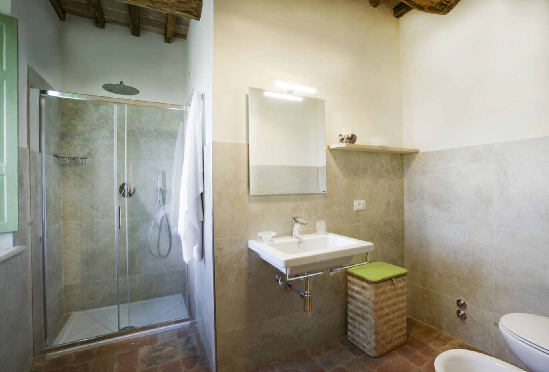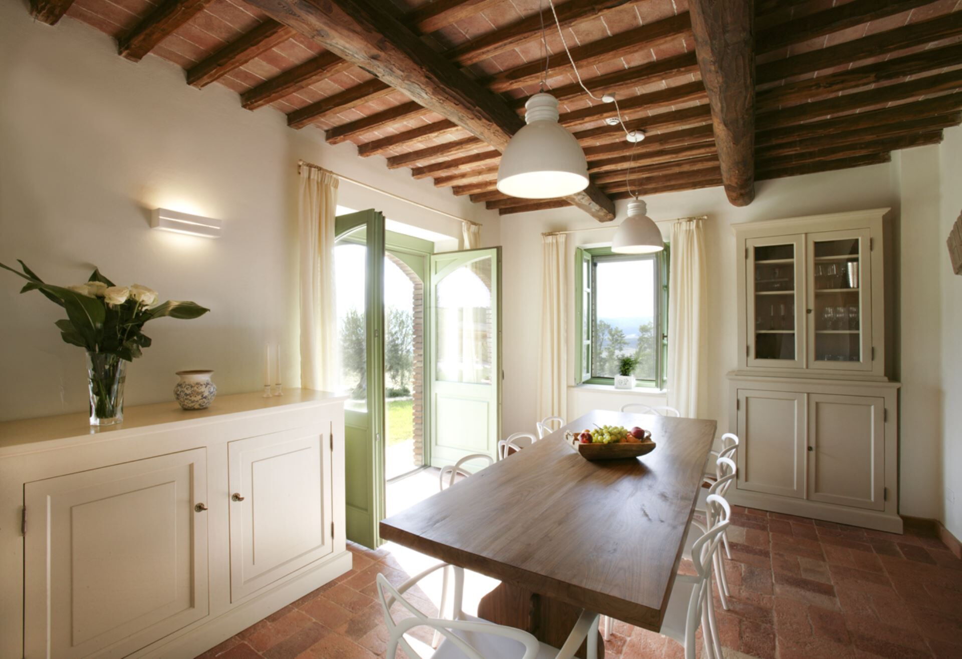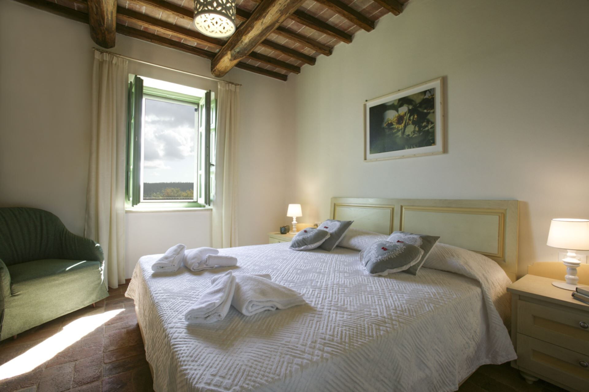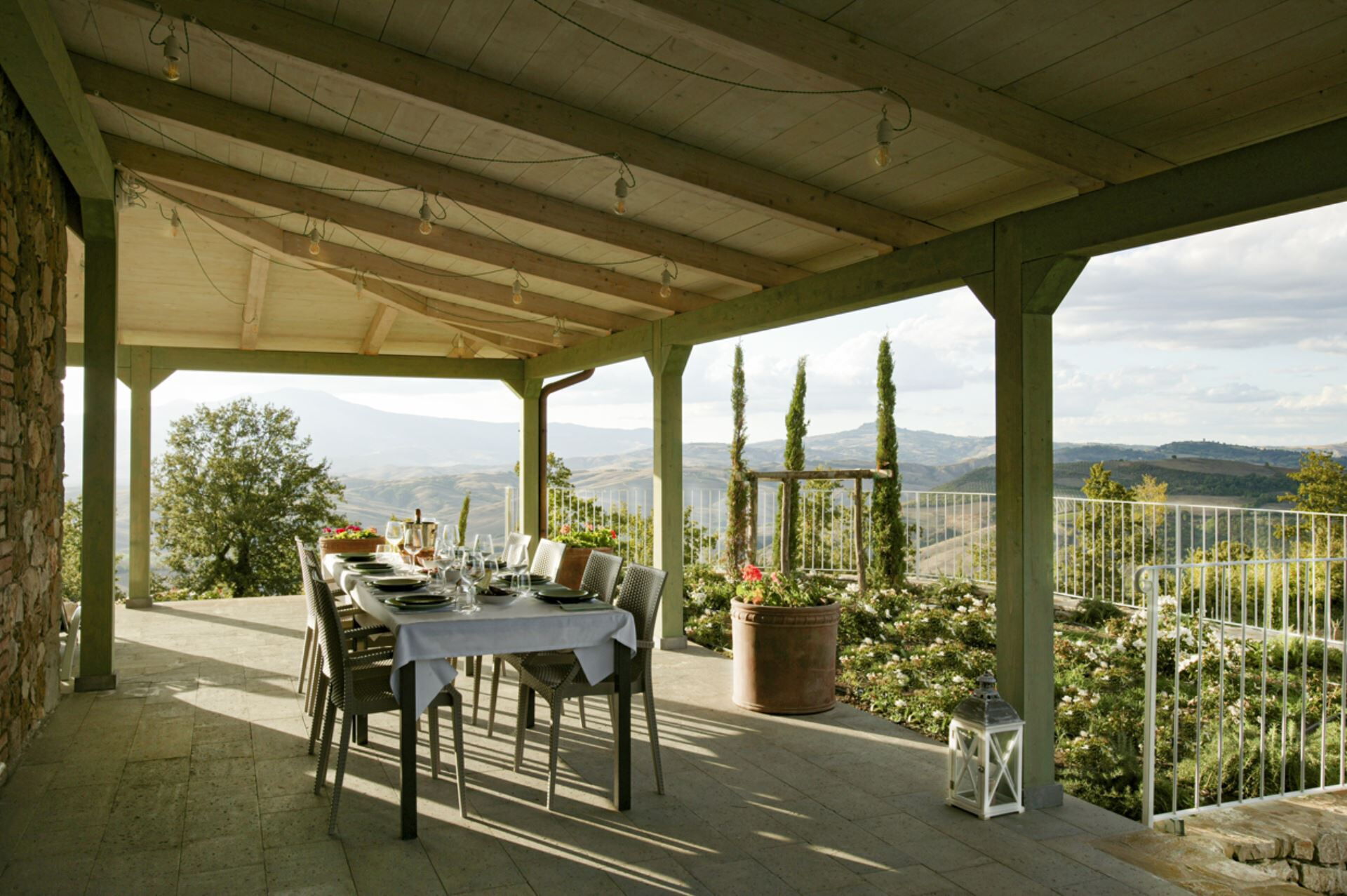 Die Außenbereiche der Villa Eline sind so gestaltet, dass sie Ihnen außergewöhnliche Freizeit- und Entspannungsmöglichkeiten in einer atemberaubenden natürlichen Umgebung bieten. Der weitläufige Garten verfügt über einen wunderschönen Olivenhain, der auf dem gesamten Gelände eine friedliche mediterrane Atmosphäre schafft. Der große Panorama-Swimmingpool bildet das Herzstück des Außenbereichs und bietet herrliche Ausblicke über die sanfte Hügellandschaft, während Sie sich an warmen Sommertagen erfrischen. Bitte beachten Sie, dass der Pool vom 30. September bis 30. April geschlossen ist, wobei eine Öffnung während dieser Zeit auf Anfrage möglich ist. Sie finden eine wunderschöne überdachte Veranda, die sich perfekt für Mahlzeiten und Entspannung im Freien eignet, ergänzt durch einen voll ausgestatteten Grillbereich, in dem Sie köstliche Mahlzeiten im Freien zubereiten können. Das Anwesen verfügt außerdem über einen regulären Paddle-Court, der eine hervorragende Möglichkeit für aktive Erholung bietet, ohne das Anwesen verlassen zu müssen. Die Außenbereiche fügen sich nahtlos in die natürliche Landschaft ein und schaffen eine idyllische Umgebung, in der Sie die Ruhe der italienischen Landschaft genießen und gleichzeitig von luxuriösen Annehmlichkeiten profitieren können.