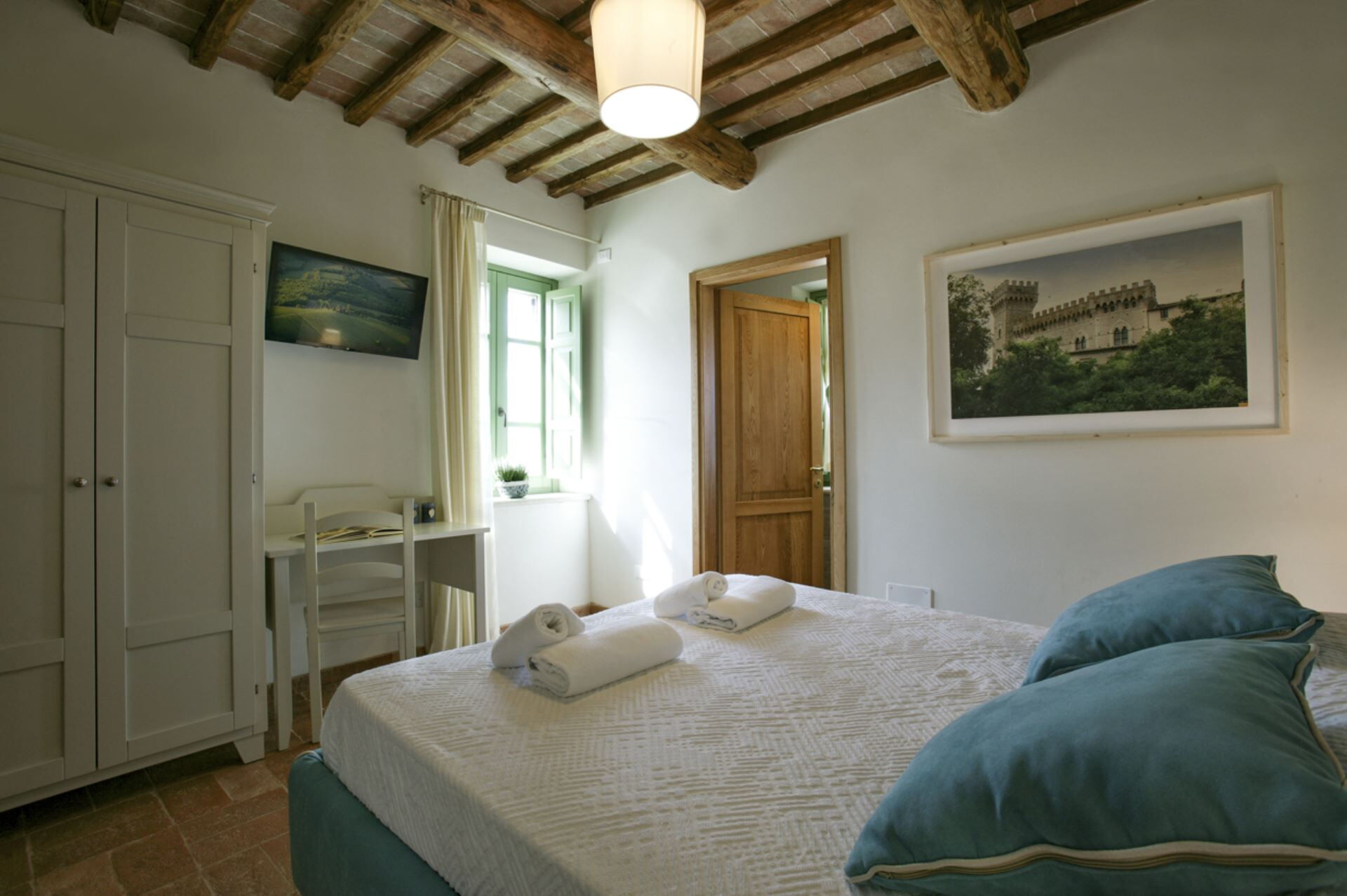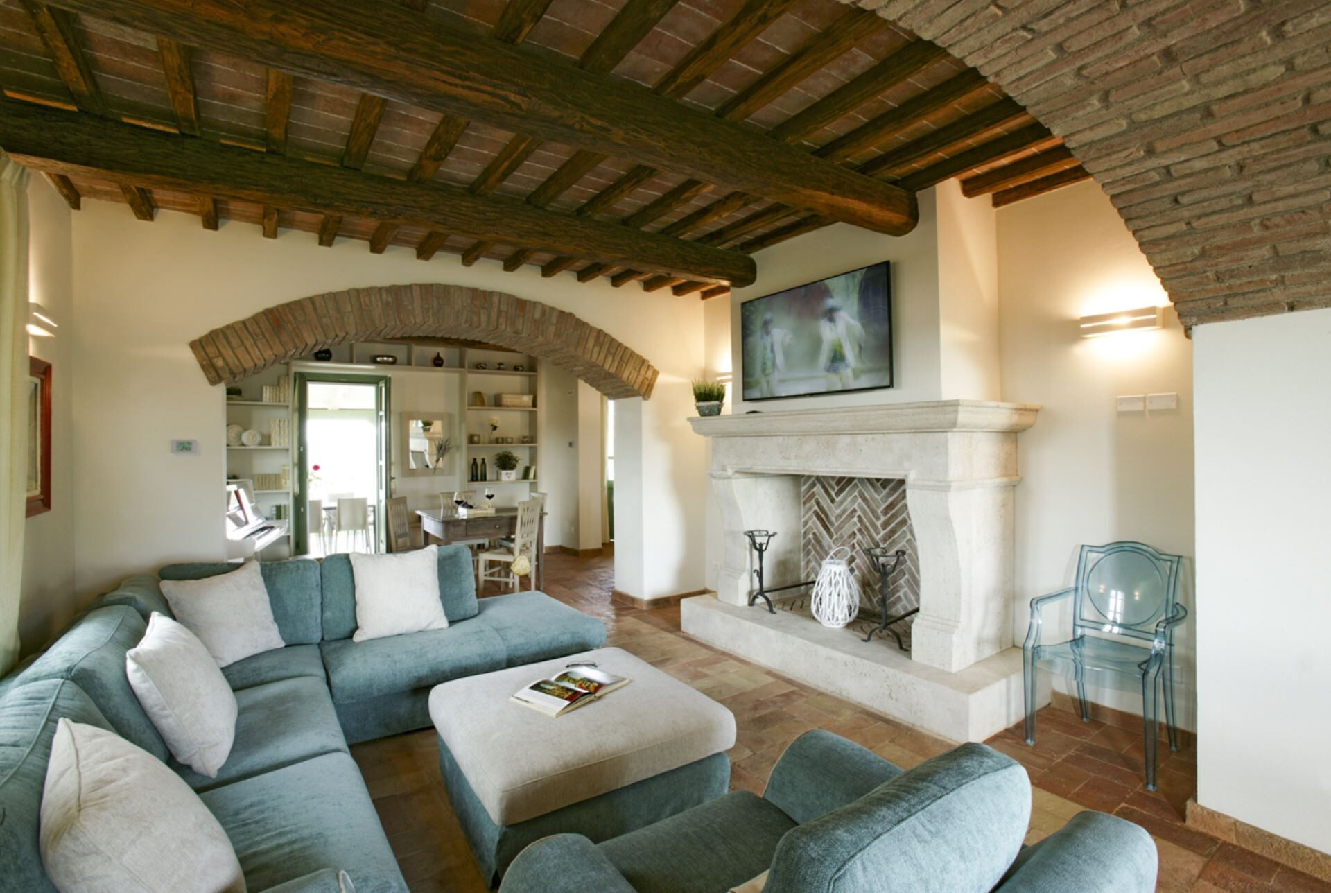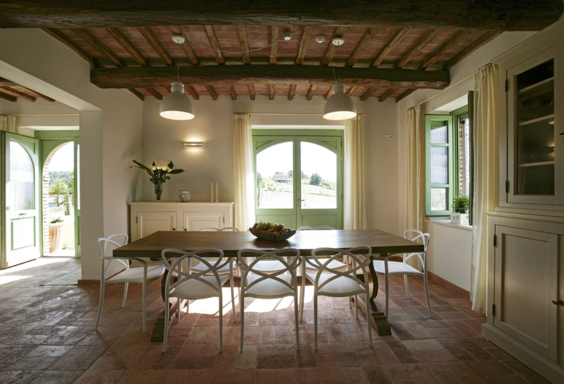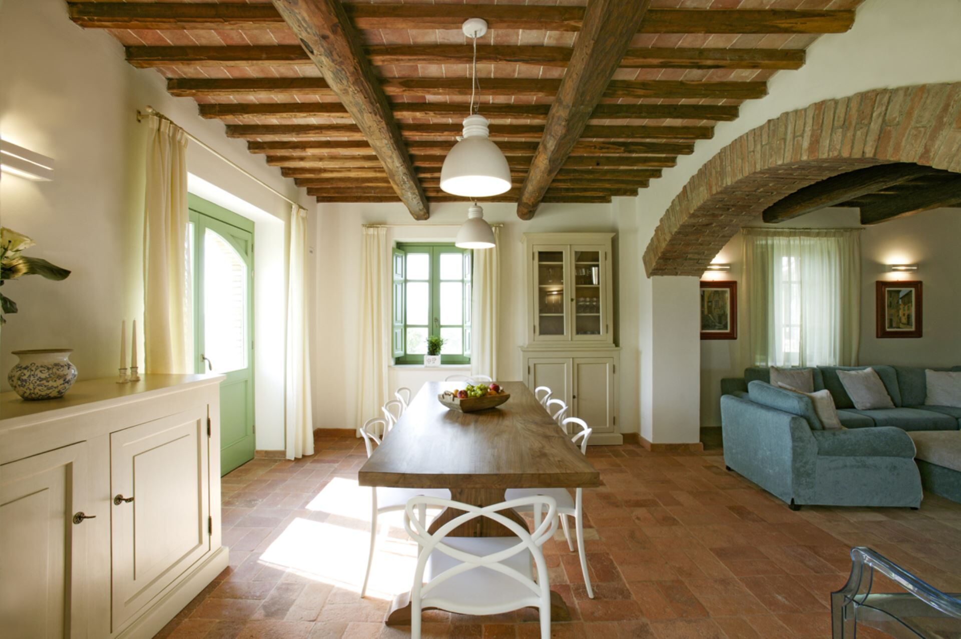 Die Außenbereiche der Villa Eline sind so gestaltet, dass sie Ihnen außergewöhnliche Freizeit- und Entspannungsmöglichkeiten in einer atemberaubenden natürlichen Umgebung bieten. Der weitläufige Garten verfügt über einen wunderschönen Olivenhain, der auf dem gesamten Gelände eine friedliche mediterrane Atmosphäre schafft. Der große Panorama-Swimmingpool bildet das Herzstück des Außenbereichs und bietet herrliche Ausblicke über die sanfte Hügellandschaft, während Sie sich an warmen Sommertagen erfrischen. Bitte beachten Sie, dass der Pool vom 30. September bis 30. April geschlossen ist, wobei eine Öffnung während dieser Zeit auf Anfrage möglich ist. Sie finden eine wunderschöne überdachte Veranda, die sich perfekt für Mahlzeiten und Entspannung im Freien eignet, ergänzt durch einen voll ausgestatteten Grillbereich, in dem Sie köstliche Mahlzeiten im Freien zubereiten können. Das Anwesen verfügt außerdem über einen regulären Paddle-Court, der eine hervorragende Möglichkeit für aktive Erholung bietet, ohne das Anwesen verlassen zu müssen. Die Außenbereiche fügen sich nahtlos in die natürliche Landschaft ein und schaffen eine idyllische Umgebung, in der Sie die Ruhe der italienischen Landschaft genießen und gleichzeitig von luxuriösen Annehmlichkeiten profitieren können.
