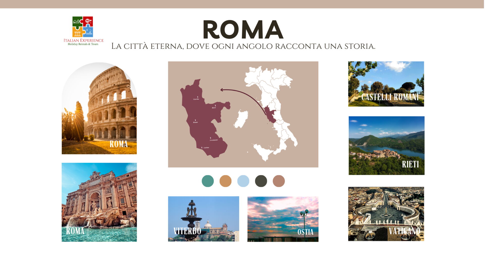 Andere wichtige Touristen-Reiseziele, die es sich lohnt zu besuchen, wären: Florenz 306 km, Mailand 593 km und Neapel 232 km.