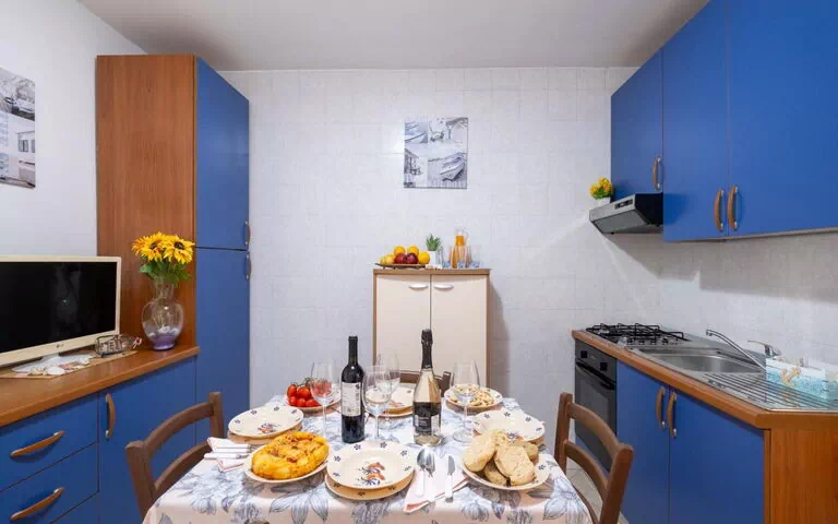 Bei Ankunft in Ihrem Ferienheim On The Sea San Foca,wifi, Ac werden Sie eine hübsche, saubere und gut gepflegte Unterkunft finden, perfekt für einen erholsamen Apulien-Urlaub. Nach einem ereignisreichen Tag, den Sie mit Museumsbesuchen verbracht haben, können Sie mit Familie und Freunden ein schönes, kühles Glas Wein genießen - einfach perfekt, um den Tag ganz ausgeruht ausklingen zu lassen. Speisen mit Freunden und Familie ist ein großer Bestandteil der italienischen Kultur. Nutzen Sie die gut ausgestattete Küche, um Mahlzeiten aus lokalen Produkten vorzubereiten, während Sie im Urlaub sind. Die Küche kommt mit Herd und Kühlschrank, sowie ausreichend Geschirr und Besteck für bis zu zwei Personen.