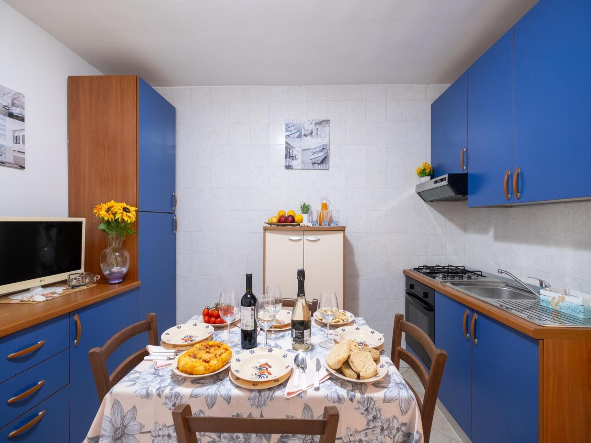 Küche: gut ausgestattete Küche, Esstisch, Kühlschrank, Tiefkühler, Herd, Ofen, WiFi Internet, TV.