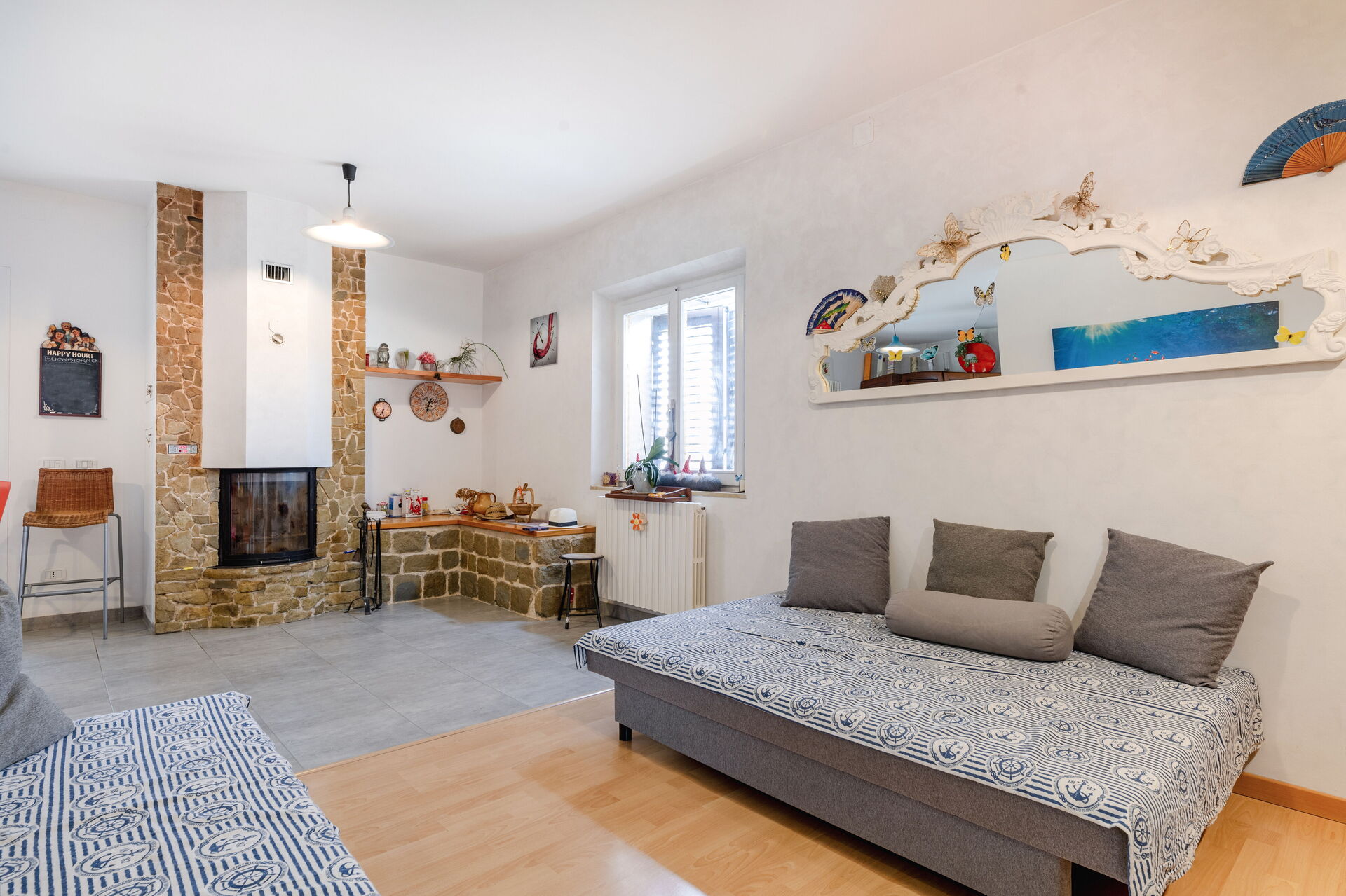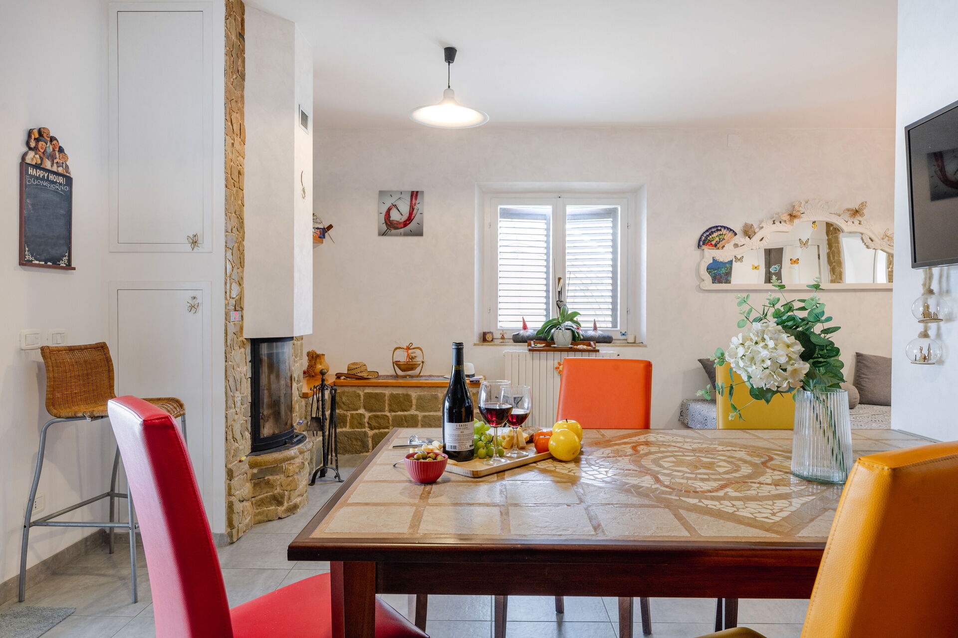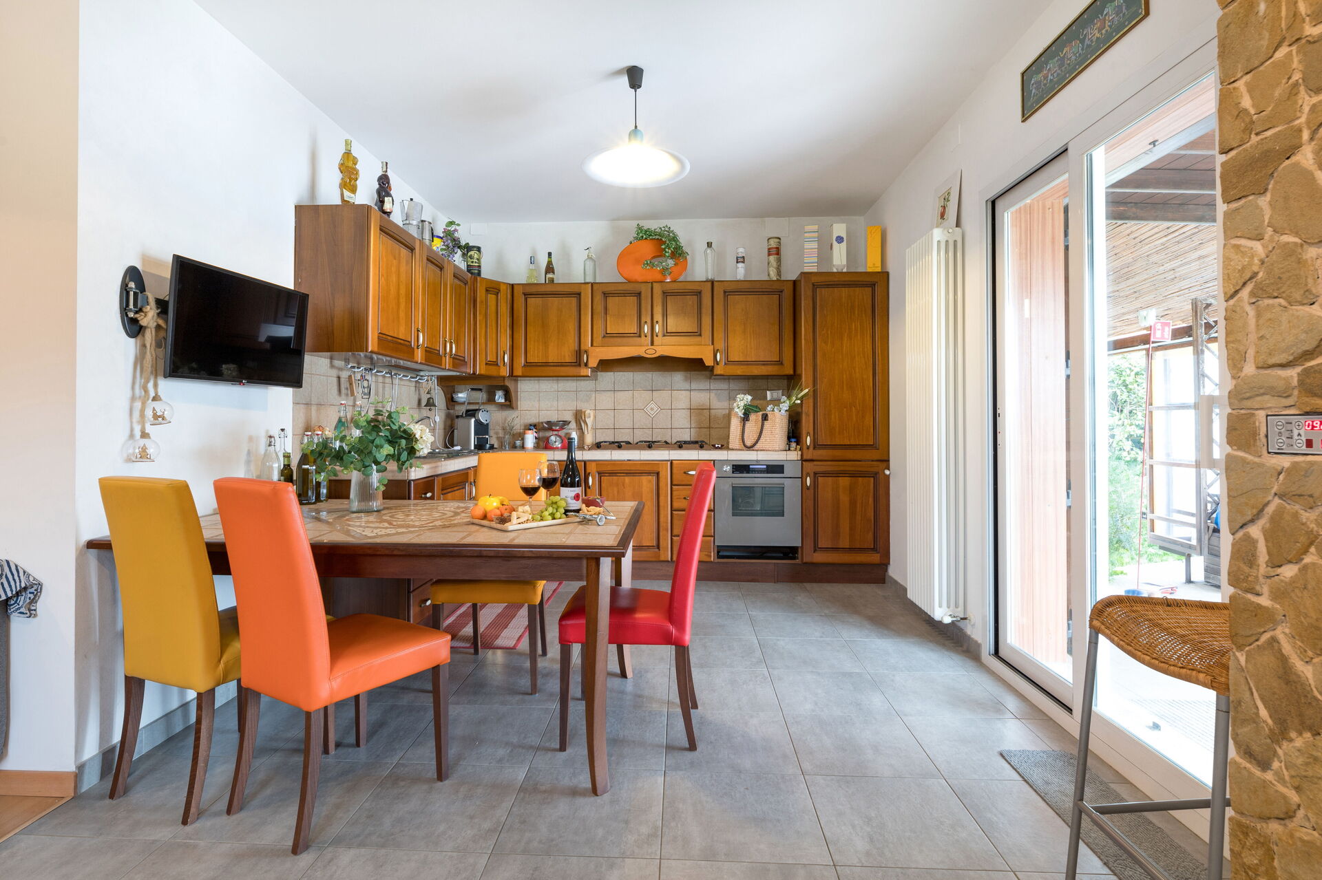 Wohnküche: gut ausgestattete Küche, Esstisch, Kühlschrank, Tiefkühler, Herd, Ofen, Italienische Kaffeemaschine, Sofa, Kamin, WiFi Internet, Satelliten-TV, TV, Ausgang auf den Garten.