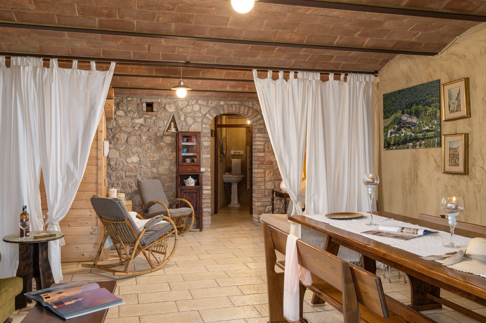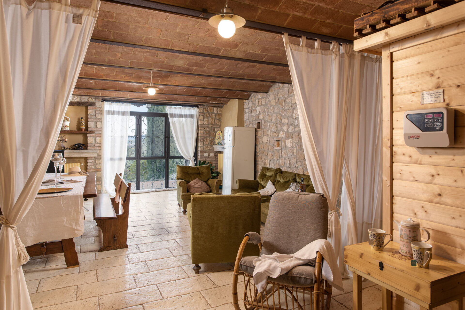Wohnküche: gut ausgestattete Küche, Spülmaschine, Kühlschrank, Tiefkühler, Mikrowelle, Ofen, Toaster, Italienische Kaffeemaschine, Sofa, Sessel, Kamin, WiFi Internet, Kinderhochstuhl, Rauchmelder, CO2 Detektor, Ausgang auf den Garten, Ausgang auf die Terrasse.