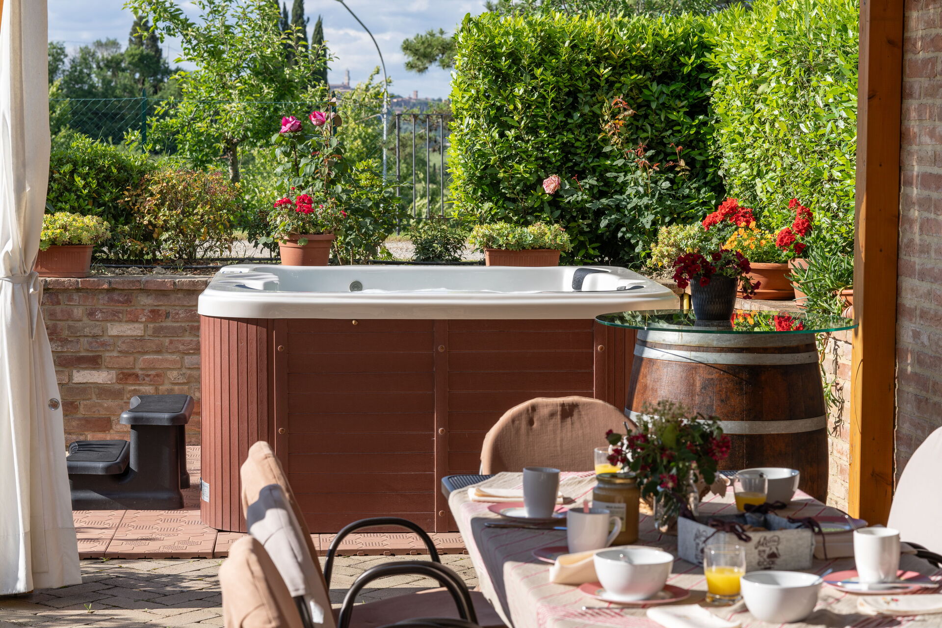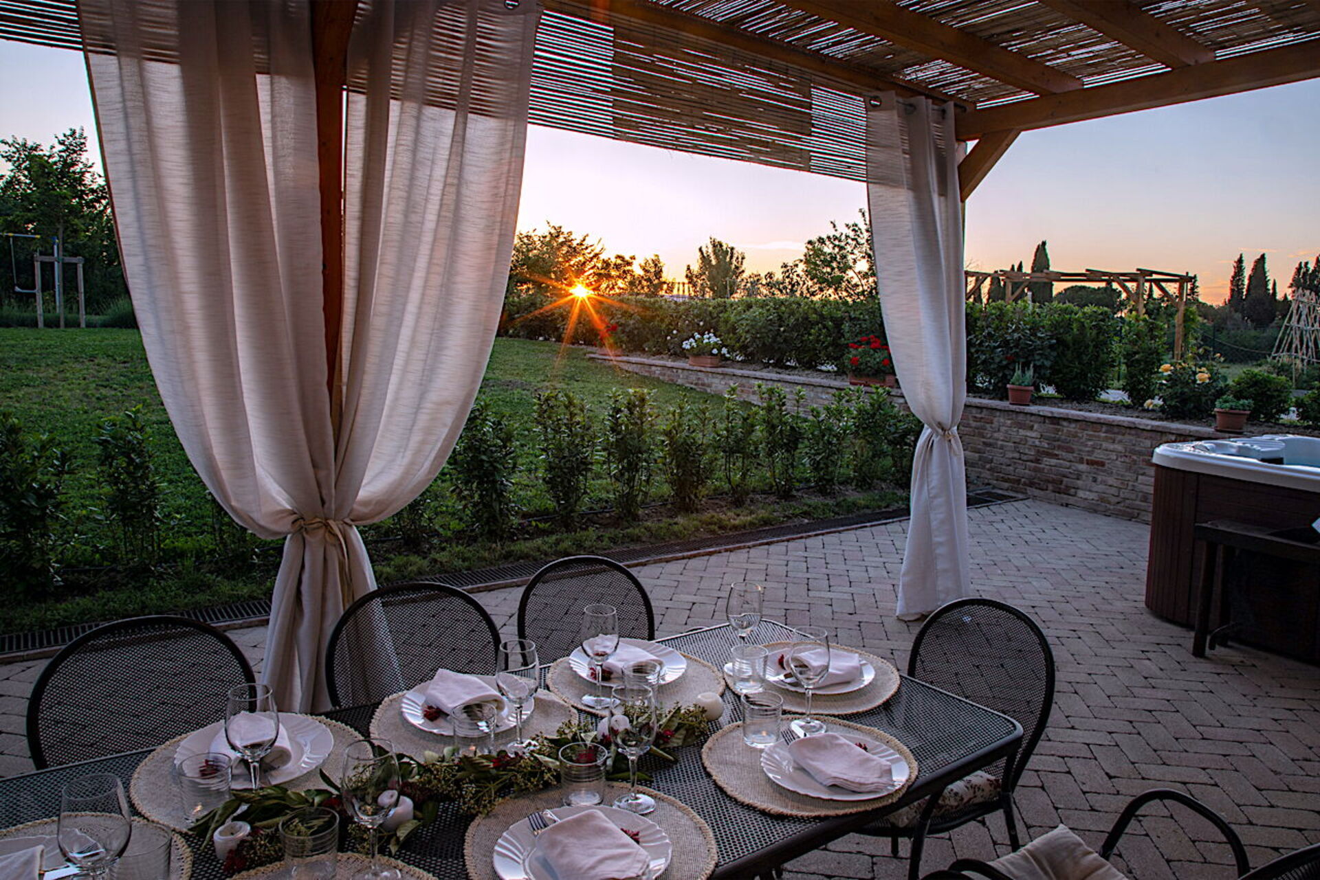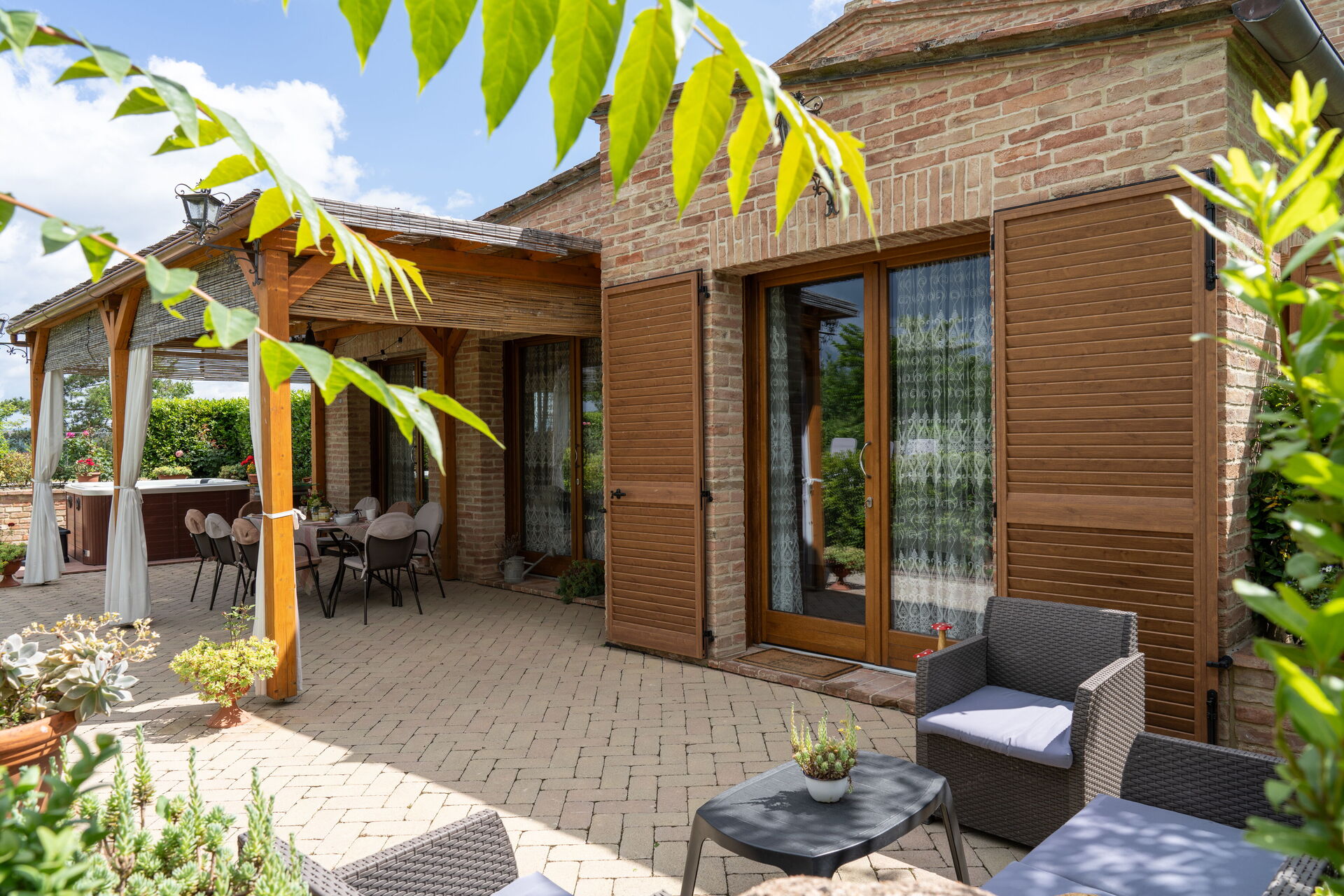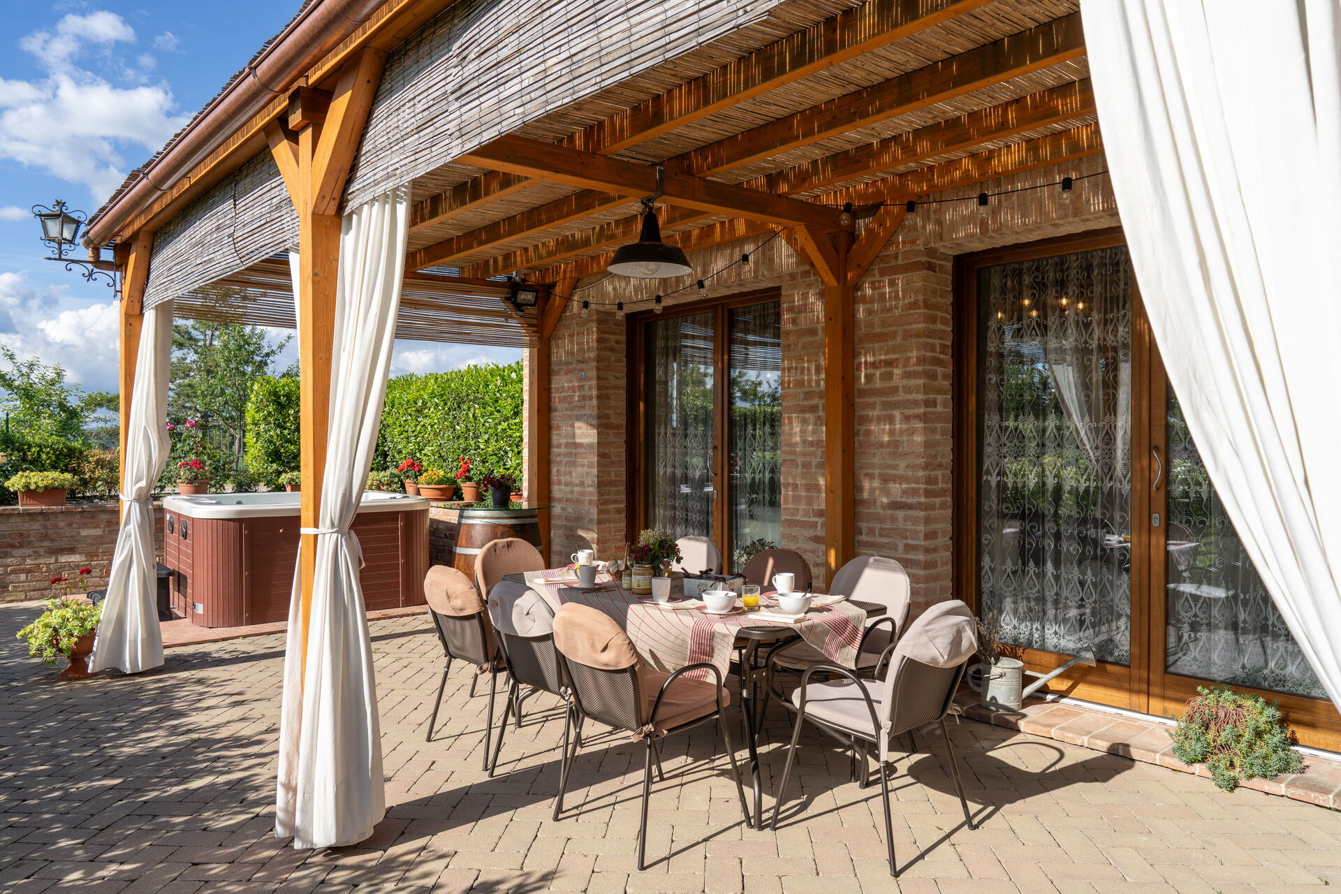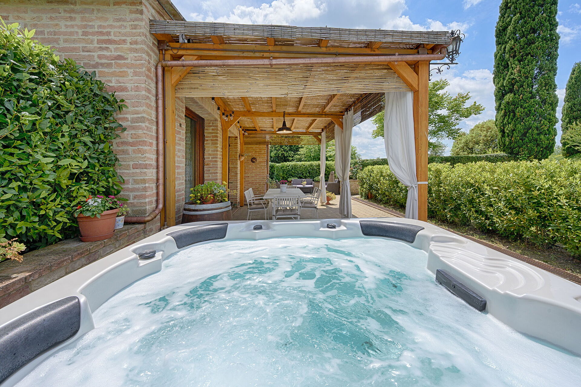 Veranda: Heißwasser-Whirlpool im Freien, Außenbereich für das Essen im Freien, Esstisch (Personen: 8), WiFi Internet, Grill, Gartenmöbel, Terrassenmöbel.