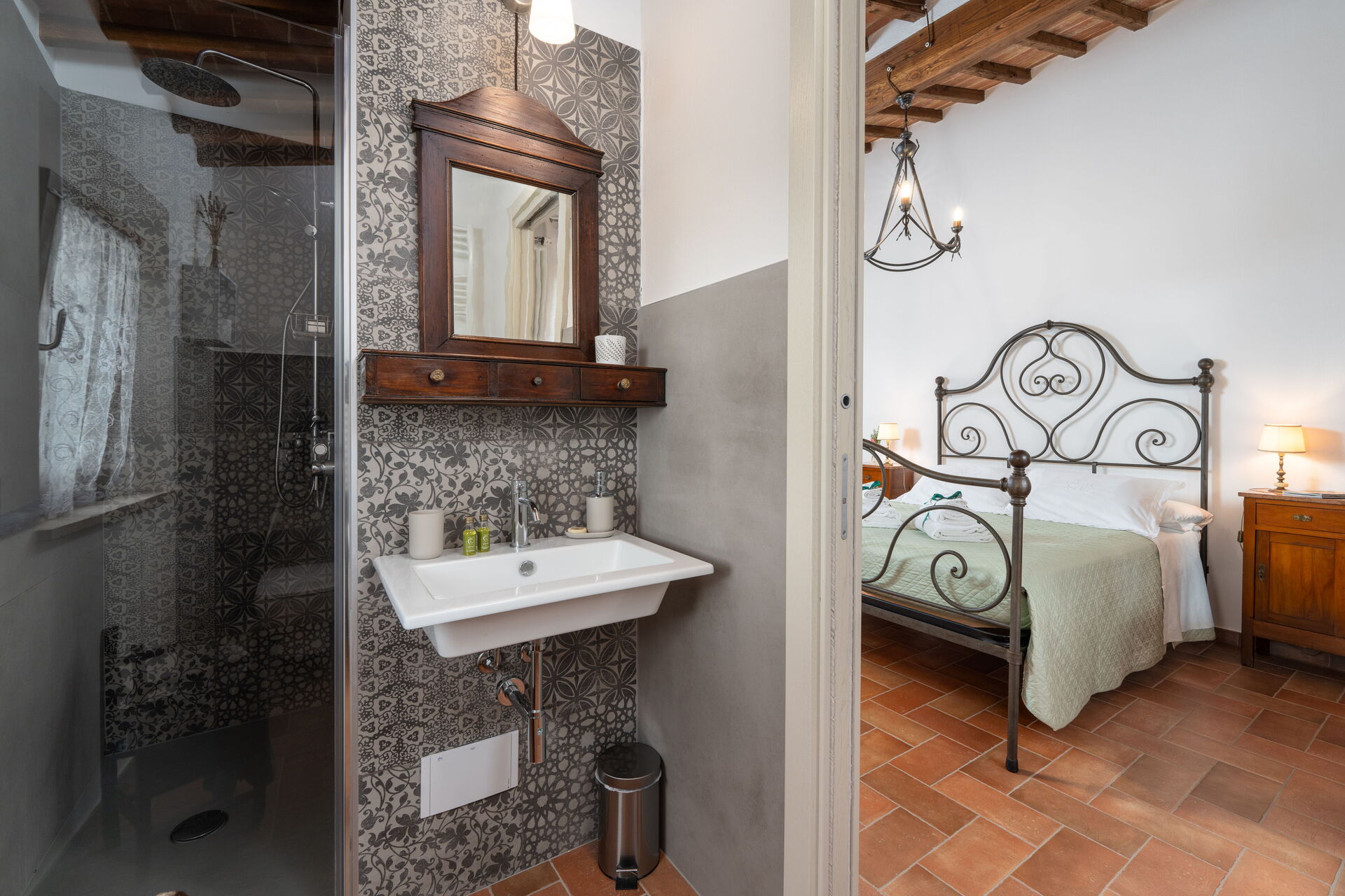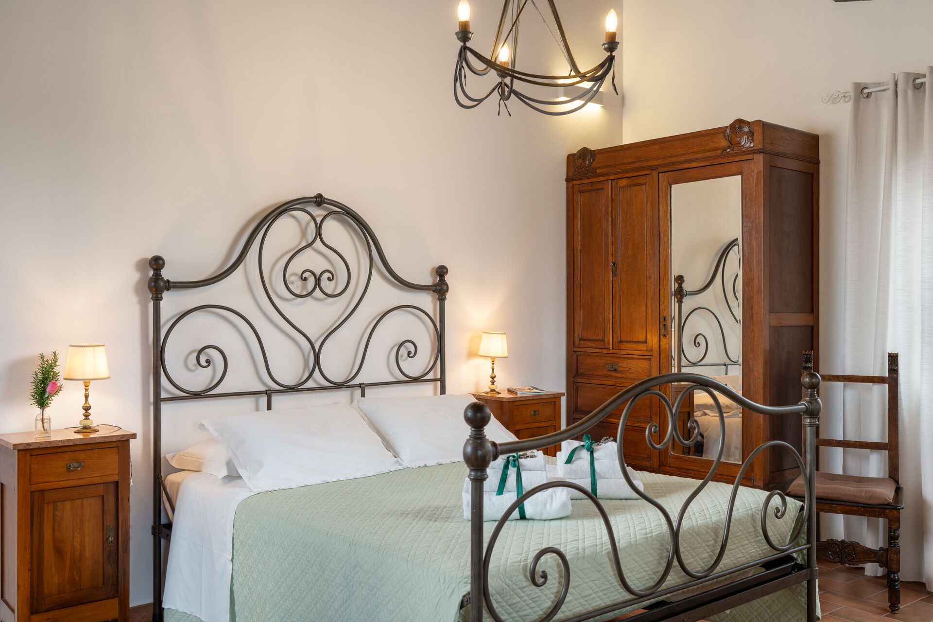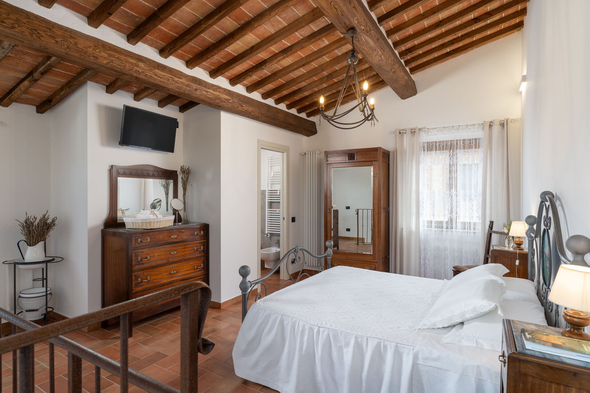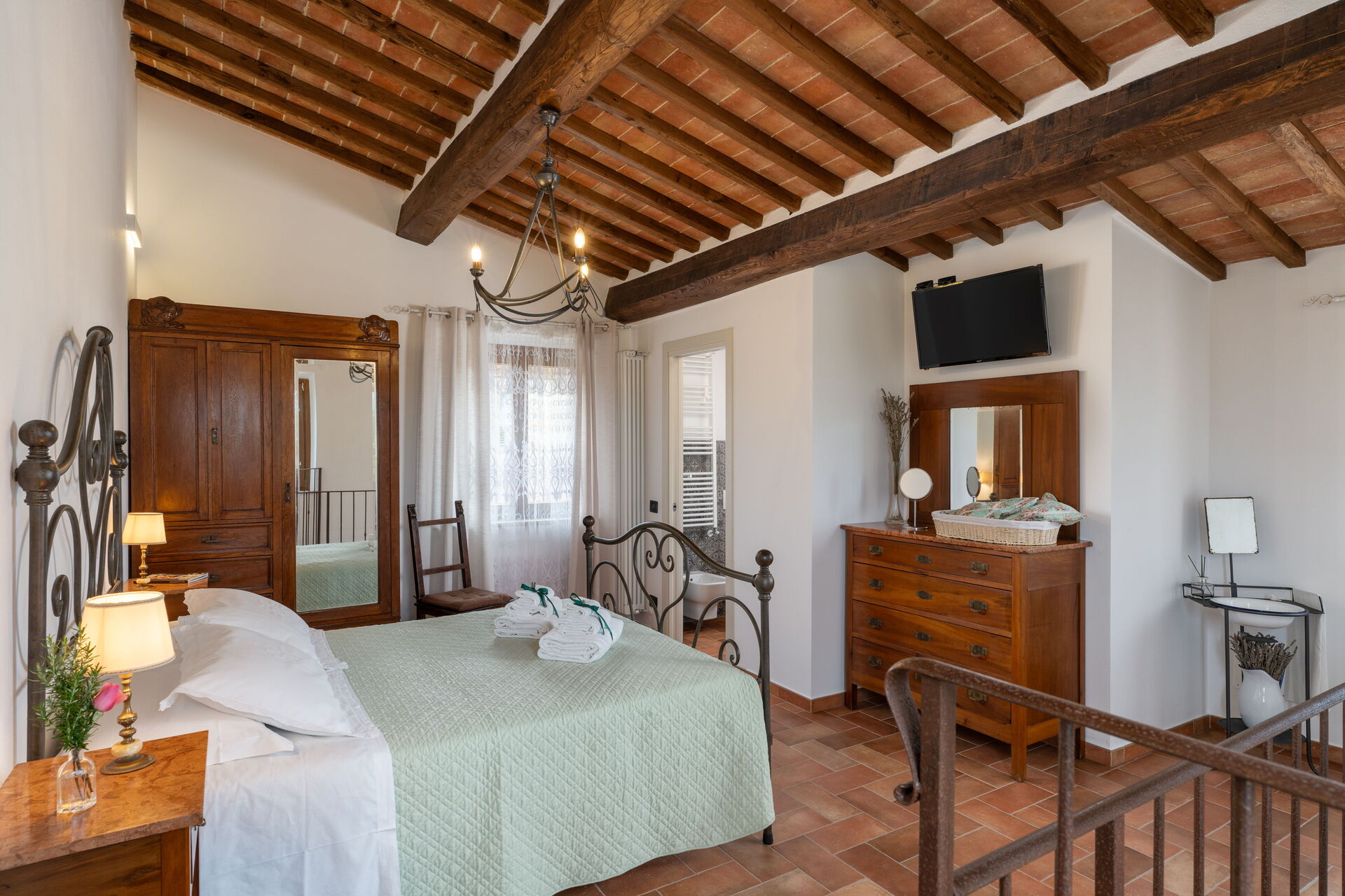 Schlafzimmer mit Bad 2: Doppelbett (Breite: 160m, Länge: 190m), WiFi Internet, Klimaanlage, TV, Waschbecken, Bidet, Dusche, Fön.