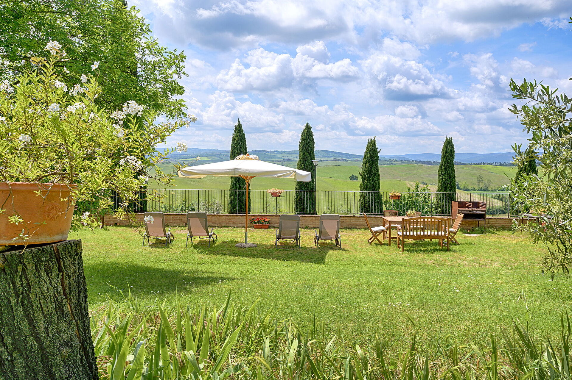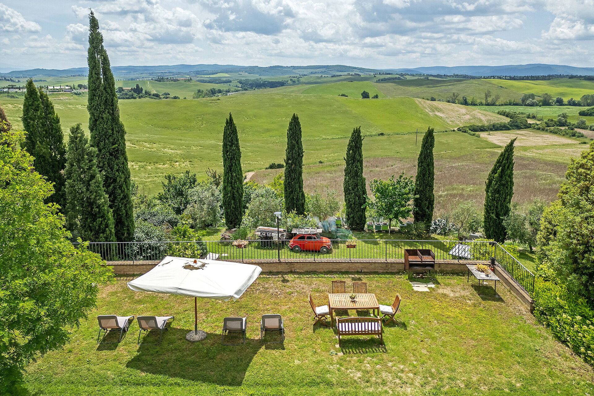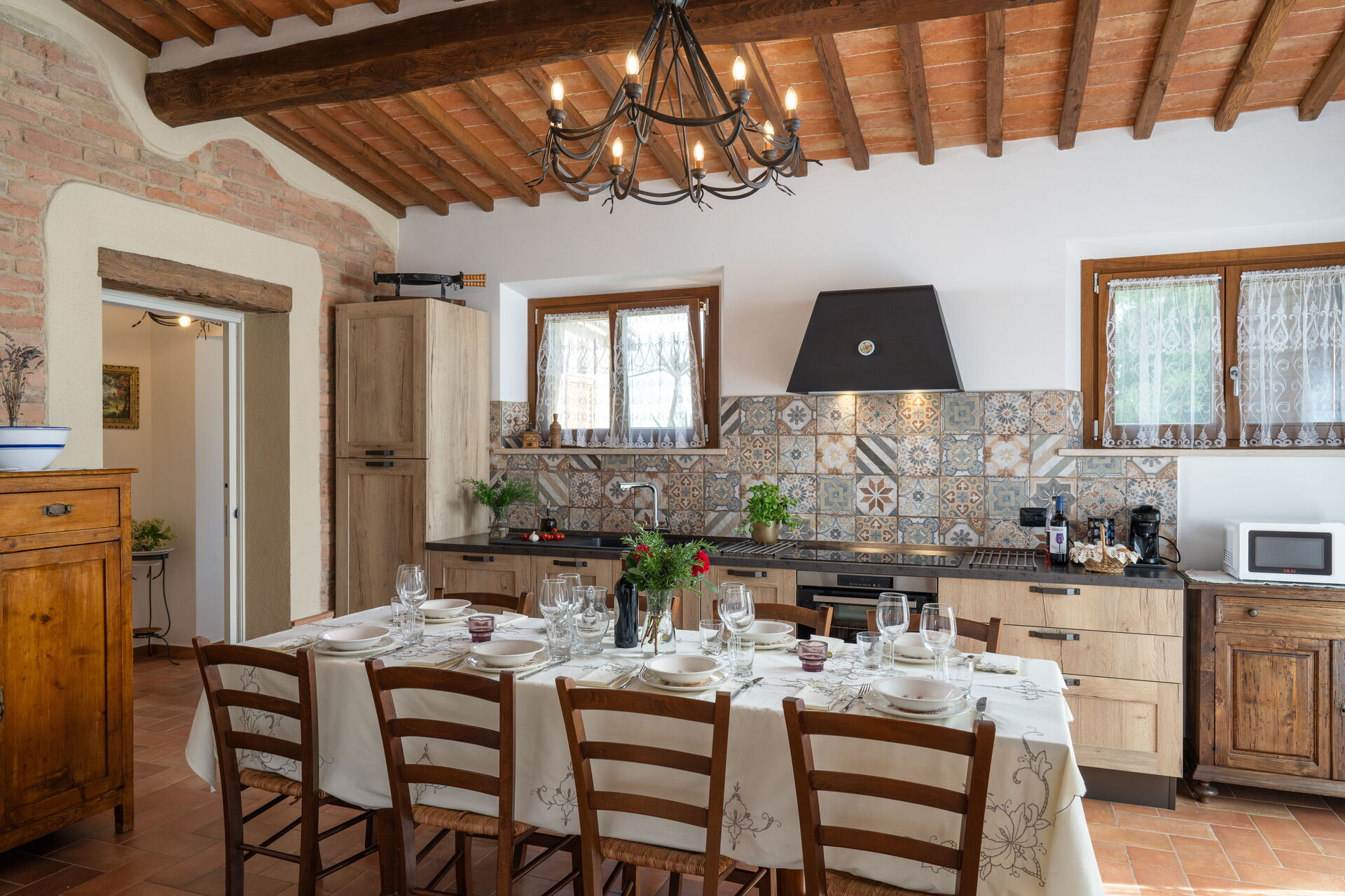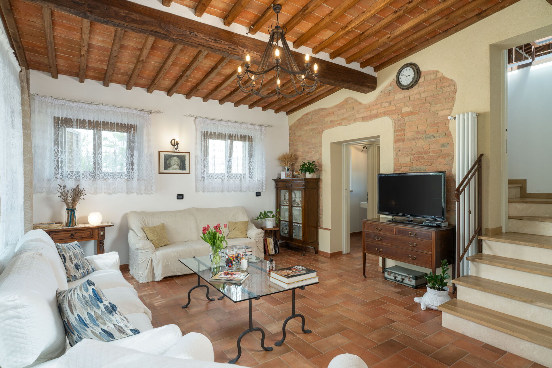 Nach Ankunft werden Sie von dem Besitzer oder Manager begrüßt, der Ihnen die reizende, saubere und gut gepflegte Unterkunft zeigt, mit Blick auf der Hügel erstklassig für einen erholsamen Toskana-Urlaub. Nach einem beschäftigten Tag, den Sie mit Museumsbesuchen verbracht haben, können Sie mit Familie und Freunden ein schönes, kühles Glas Wein genießen - einfach perfekt, um den Tag ganz ausgeruht ausklingen zu lassen. Zu Ihrem Vergnügen gibt es auf dem Gelände eine Veranda, einen Grill and einen Whirlpool. Essen mit Freunden und Familie ist ein großer Bestandteil der toskanischen Kultur. Nutzen Sie die gut ausgestattete Küche, um Mahlzeiten aus lokalen Produkten vorzubereiten, während Sie im Urlaub sind. Die Küche kommt mit Kaffeemaschine, Toaster, Herd und Kühlschrank, sowie ausreichend Geschirr und Besteck für bis zu acht Personen. Speisen Sie 'al Fresco' wie ein echter Toskaner - die komplett eingerichtete Veranda ist eine erstklassige Kulisse, um das Essen, die Familie und das schöne toskanische Wetter zu genießen.