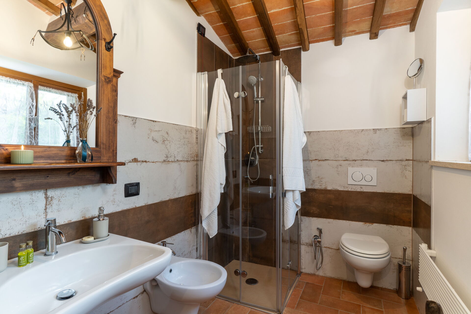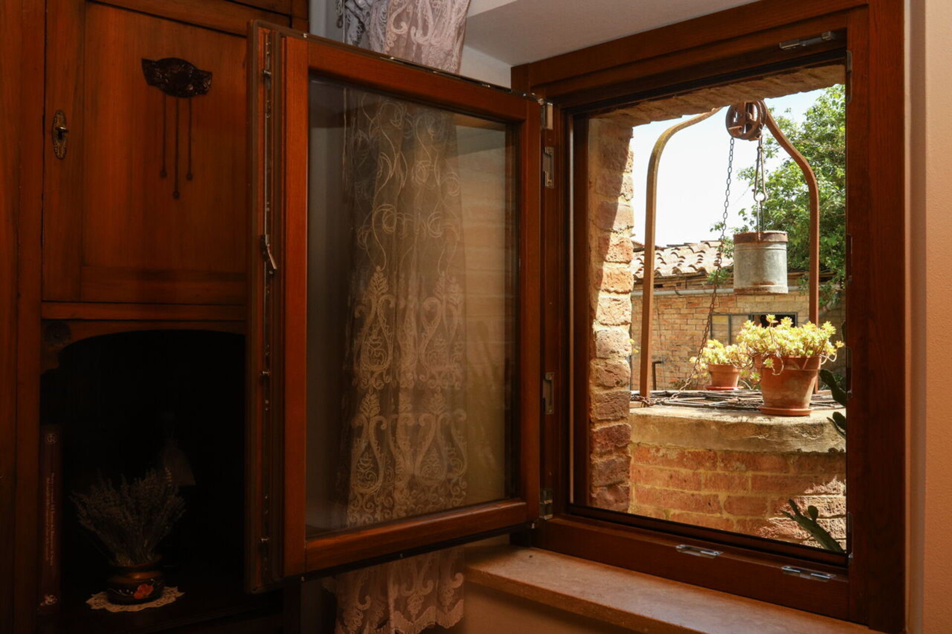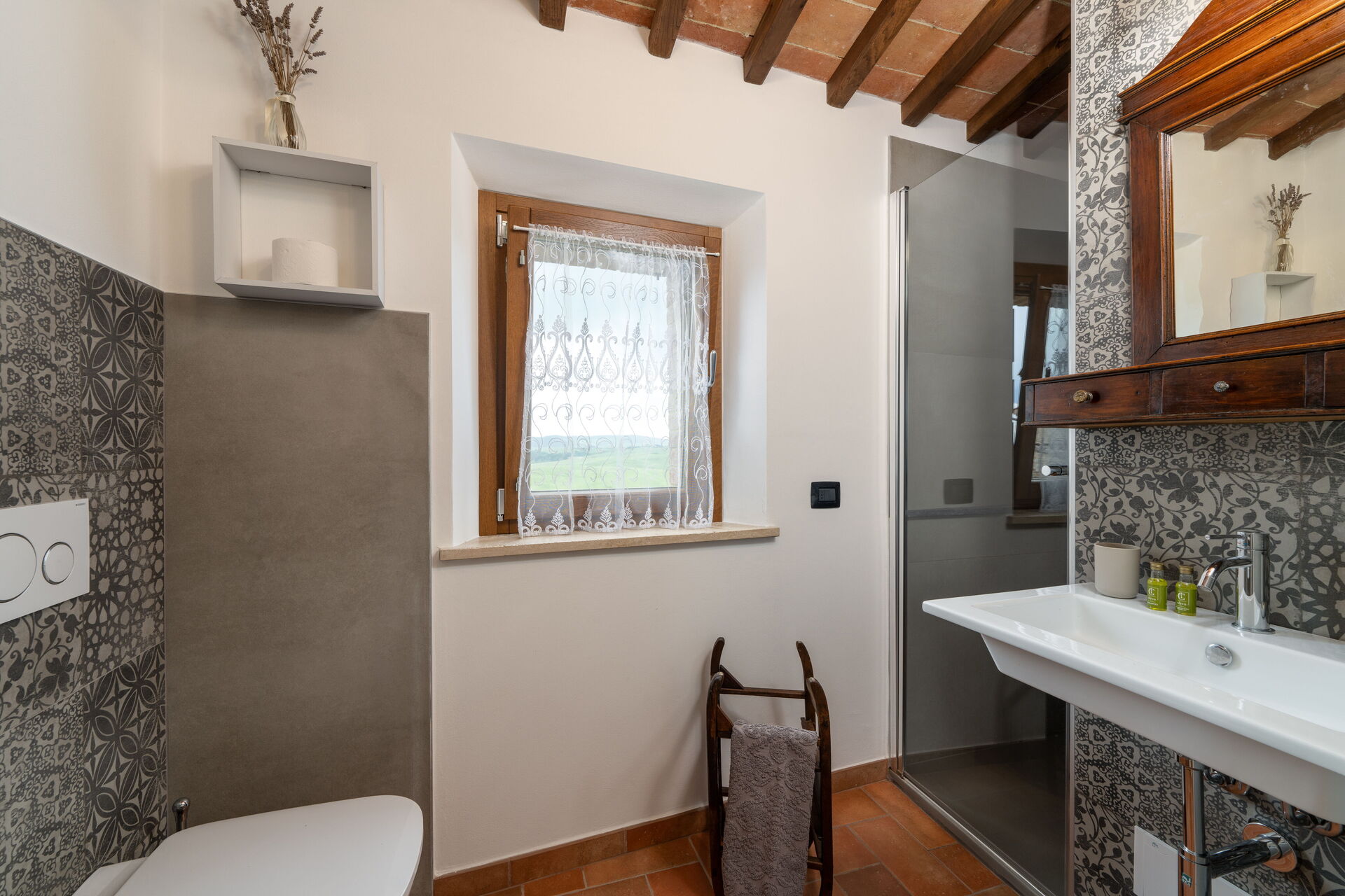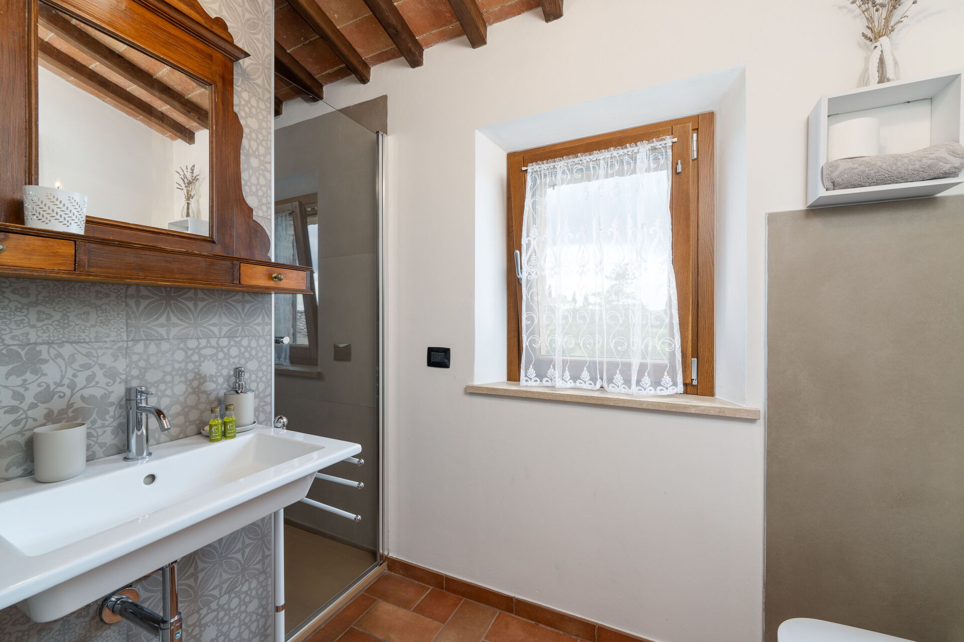 Nach Ankunft werden Sie von dem Besitzer oder Manager begrüßt, der Ihnen die reizende, saubere und gut gepflegte Unterkunft zeigt, mit Blick auf der Hügel erstklassig für einen erholsamen Toskana-Urlaub. Nach einem beschäftigten Tag, den Sie mit Museumsbesuchen verbracht haben, können Sie mit Familie und Freunden ein schönes, kühles Glas Wein genießen - einfach perfekt, um den Tag ganz ausgeruht ausklingen zu lassen. Zu Ihrem Vergnügen gibt es auf dem Gelände eine Veranda, einen Grill and einen Whirlpool. Essen mit Freunden und Familie ist ein großer Bestandteil der toskanischen Kultur. Nutzen Sie die gut ausgestattete Küche, um Mahlzeiten aus lokalen Produkten vorzubereiten, während Sie im Urlaub sind. Die Küche kommt mit Kaffeemaschine, Toaster, Herd und Kühlschrank, sowie ausreichend Geschirr und Besteck für bis zu acht Personen. Speisen Sie 'al Fresco' wie ein echter Toskaner - die komplett eingerichtete Veranda ist eine erstklassige Kulisse, um das Essen, die Familie und das schöne toskanische Wetter zu genießen.