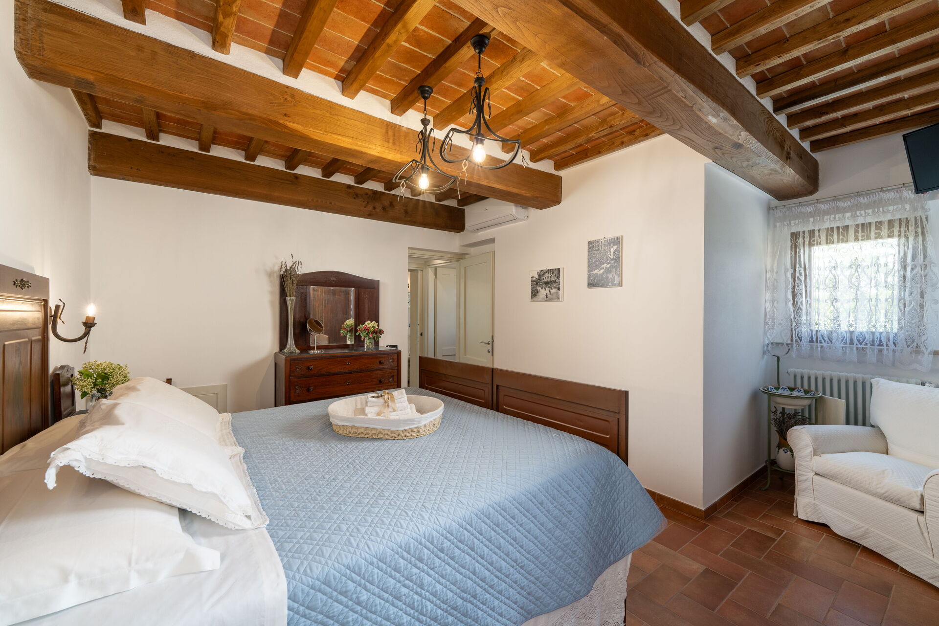 Schlafzimmer mit Bad 1: Doppelbett (Breite: 160m, Länge: 190m), WiFi Internet, Klimaanlage, TV, Waschbecken, Bidet, Dusche, Fön.