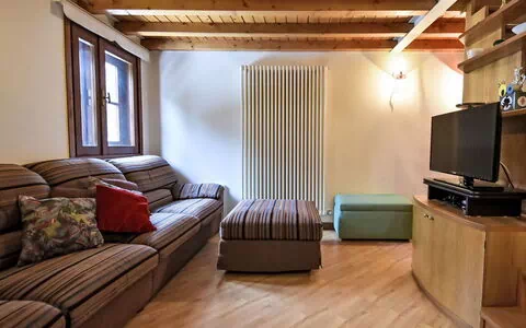 3-Zimmer-Wohnung 60 m2 auf 2 Stockwerken im 3. Stock. Zweckmässig und komfortabel eingerichtet: Wohn-/Schlafzimmer mit 1 Doppeldiwanbett (120 cm, Länge 180 cm), TV. 1 Doppelzimmer mit 1 Doppelbett (160 cm, Länge 200 cm), TV. Küche (Backofen, Toaster, Wasserkocher, Mikrowelle, elektrische Kaffeemaschine, Kapseln für die Kaffeemaschine (Nescafè Dolcegusto) gratis) mit Esstisch. Bad/Bidet/WC. Heizung, Boiler (100 Liter). Obergeschoss: (steile Treppe) 1 abgeschrägtes Zimmer mit 1 franz. Bett (130 cm, Länge 200 cm). Sicht auf die Berge, das Tal und den Wald. Zur Verfügung: Waschmaschine, Kinderhochstuhl, Babybett, Haartrockner. Internet (WLAN, gratis). Bitte beachten: Nichtraucher-Unterkunft. IT014035B45FICUWZX