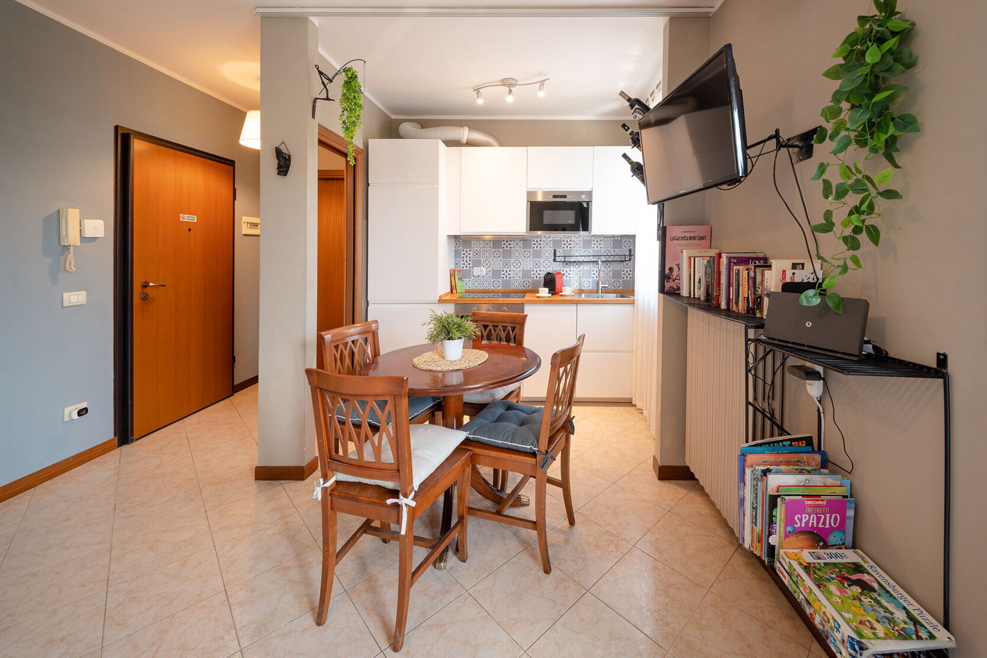 Nach Ankunft werden Sie eine hübsche, saubere und gut gepflegte Unterkunft finden, mit Ausblick auf die Stadt ideal für einen entspannenden Lombardei-Urlaub. Nach einem ereignisreichen Tag, den Sie mit Einkaufen verbracht haben, können Sie mit Familie und Freunden ein schönes, kühles Glas Wein genießen - einfach perfekt, um den Tag ganz erholt ausklingen zu lassen. Wenn Sie gerne für Familie und Freunde kochen, werden Sie sich über die gut ausgestattete Küche freuen mit Kaffeemaschine, Mikrowelle und Kühlschrank, sowie ausreichend Geschirr und Besteck für bis zu drei Personen.