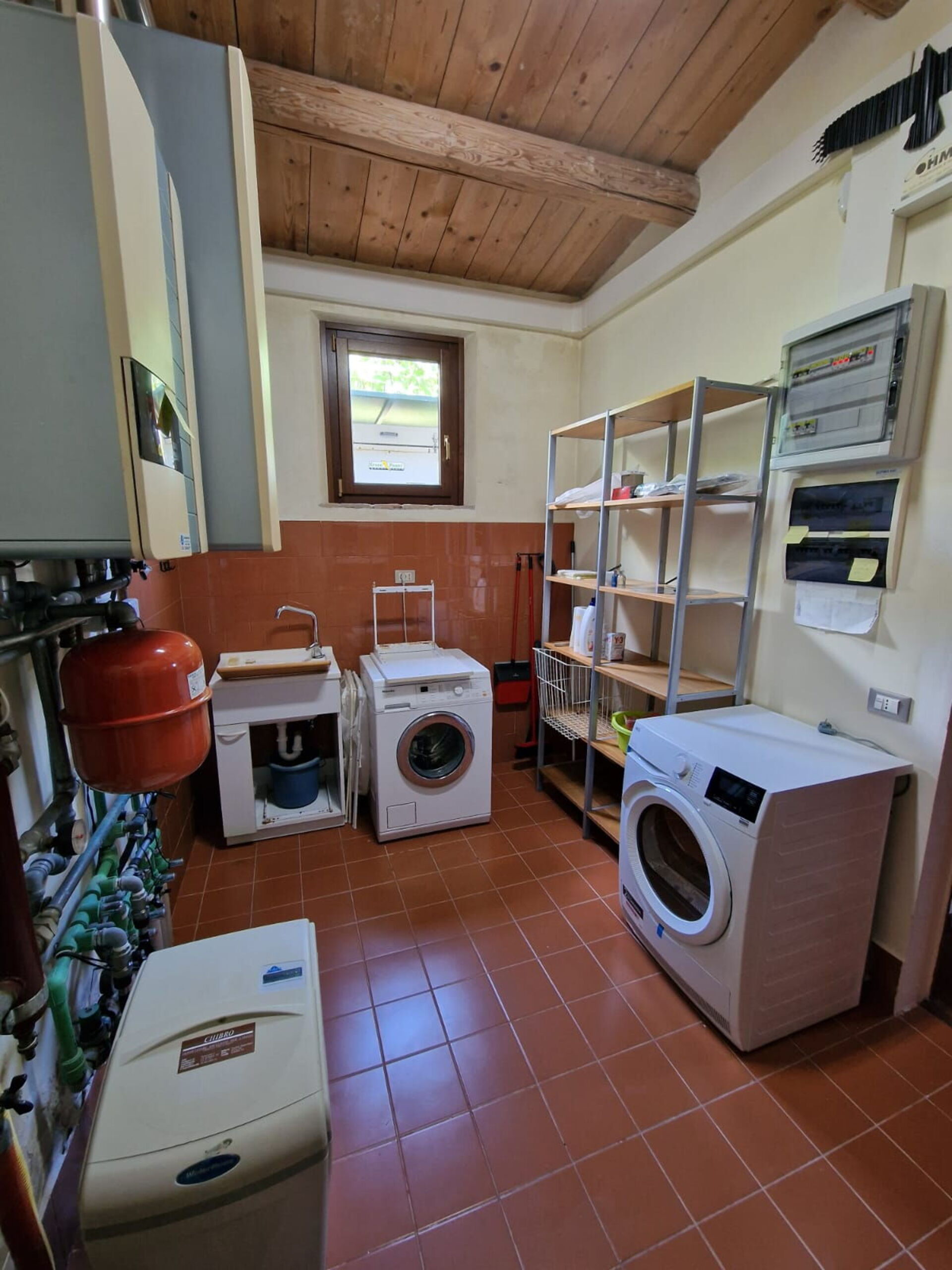 Wohnküche: gut ausgestattete Küche, Esstisch, Spülmaschine, Kühlschrank, Tiefkühler, Herd, Ofen, Italienische Kaffeemaschine, Sofa, WiFi Internet, Klimaanlage, Satelliten-TV, Ausgang auf den Garten.