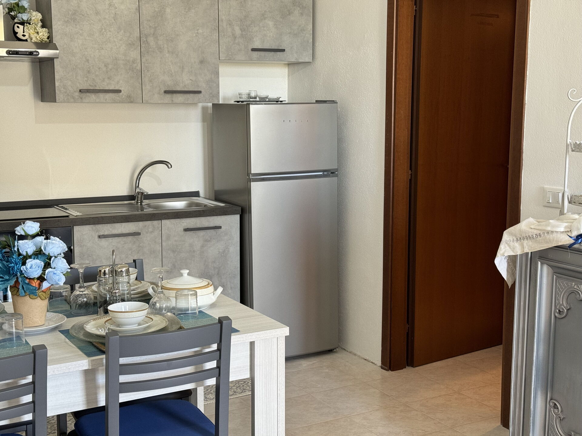 Wohnküche: gut ausgestattete Küche, Esstisch (Personen: 4), Kühlschrank, Tiefkühler, Herd, Ofen, Toaster, Amerikanische Kaffeemaschine, Sofa bed (Breite: 1.4m), WiFi Internet, Klimaanlage, Fliegengitter, TV, Ausgang auf den Garten.
