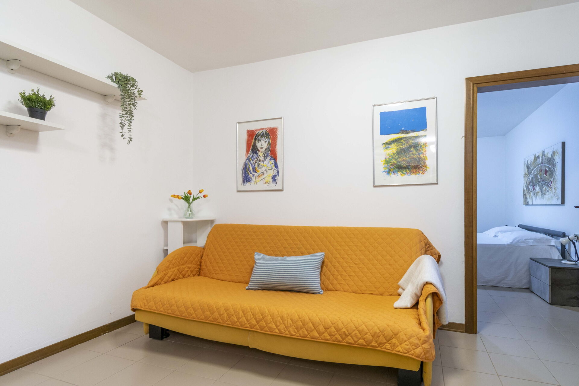 Wohnzimmer: französisches Bett.