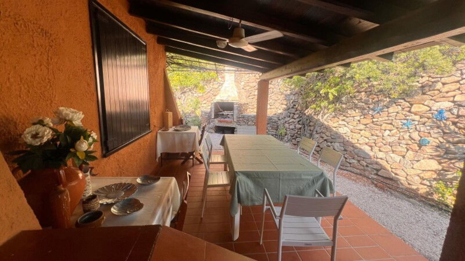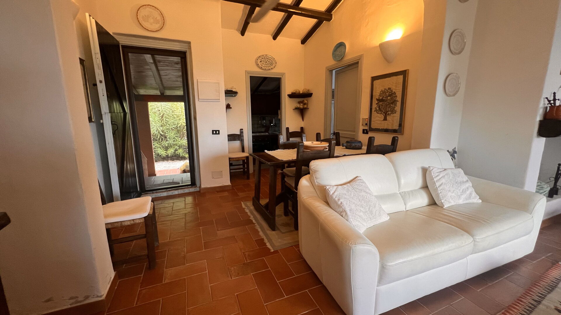 Nach Ankunft werden Sie von dem Besitzer oder Manager begrüßt, der Ihnen die schöne, saubere und gut gepflegte Unterkunft zeigt, mit Blick auf das Meer perfekt für einen entspannenden Sardinien-Urlaub. Nach einem beschäftigten Tag, den Sie mit Einkaufen verbracht haben, können Sie mit Familie und Freunden am Pool ein schönes, kühles Glas Wein genießen - einfach perfekt, um den Tag ganz ausgeruht ausklingen zu lassen. Wenn Sie gerne für Familie und Freunde kochen, werden Sie sich über die gut ausgestattete Küche freuen mit Kaffeemaschine, Mikrowelle, Herd und Kühlschrank, sowie ausreichend Geschirr und Besteck für bis zu sechs Personen.