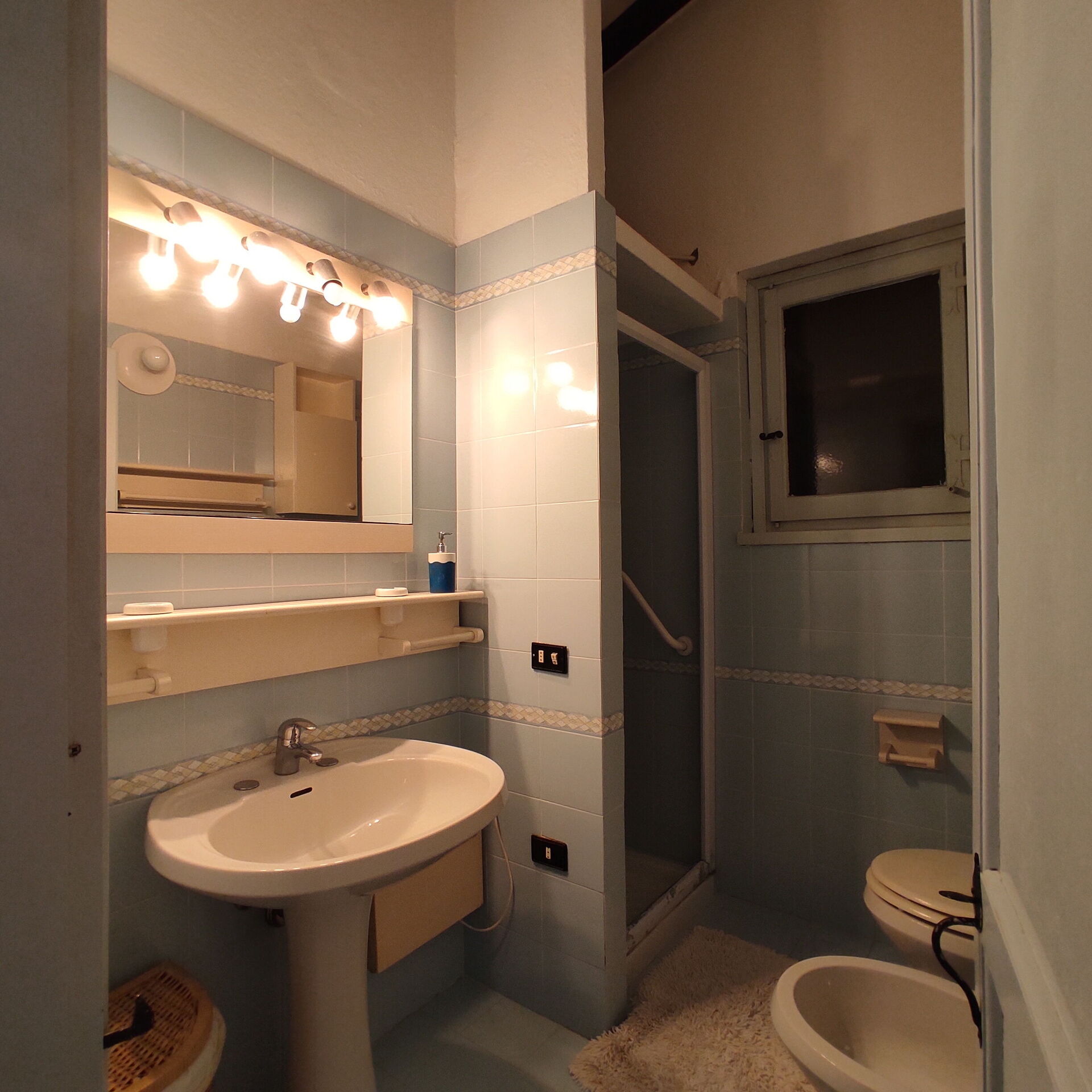 Badezimmer: Waschbecken, WC, Bidet, Dusche, WiFi Internet.