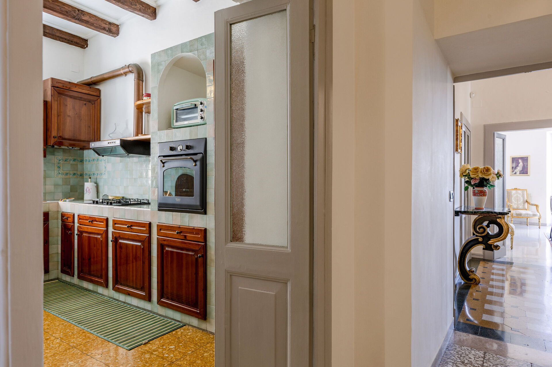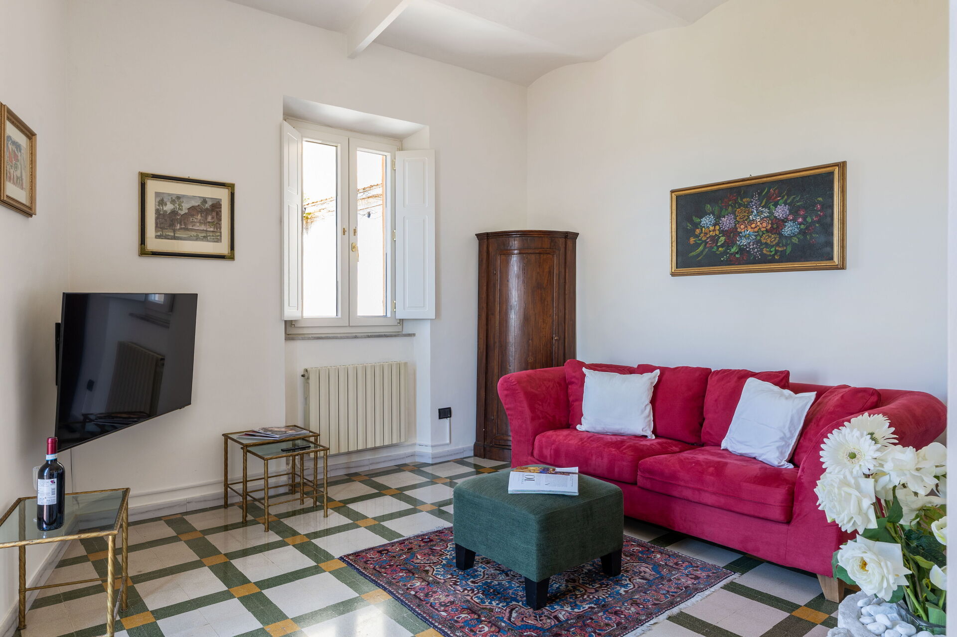 Bei Ankunft werden Sie eine schöne, saubere und gut gepflegte Unterkunft finden, mit Ausblick auf die Berge und der Hügel erstklassig für einen entspannenden Marken-Urlaub. Nach einem ereignisreichen Tag, den Sie mit Museumsbesuchen verbracht haben, können Sie mit Familie und Freunden ein schönes, kühles Glas Wein genießen - einfach perfekt, um den Tag ganz entspannt ausklingen zu lassen. Wenn Sie gerne für Familie und Freunde kochen, werden Sie sich über die gut ausgestattete Küche freuen mit Herd und Kühlschrank, sowie ausreichend Geschirr und Besteck für bis zu vier Personen. Wenn Sie lieber 'al Fresco' speisen, dann können Sie das auf dem komplett eingerichteten Balkon tun, wo Sie gleichzeitig das schöne Wetter beim Essen genießen können.