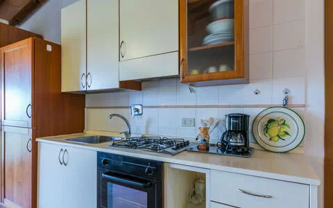 "Loma", 3-Zimmer-Reihenhaus im 1. Stock. Komfortabel und gemütlich eingerichtet: Wohn-/Esszimmer mit 1 Diwanbett. Ausgang zum Balkon. 1 Doppelzimmer mit 1 Doppelbett. 1 Zimmer mit 1 Bett. Offene Küche (Geschirrspüler, Gasherd, 4 Flammen, Wasserkocher). Bad/Bidet/WC. Terrasse. Terrassenmöbel, Gartengrill, Loggia. Zur Verfügung: Waschmaschine, Kinderhochstuhl, Babybett bis 3 Jahre. Internet (WLAN, gratis). Parkplatz (1 Auto). Bitte beachten: Maximal 1 Haustier/Hund erlaubt. Rauchmelder, Feuerlöscher. IT050015C2XH7Z2JB2