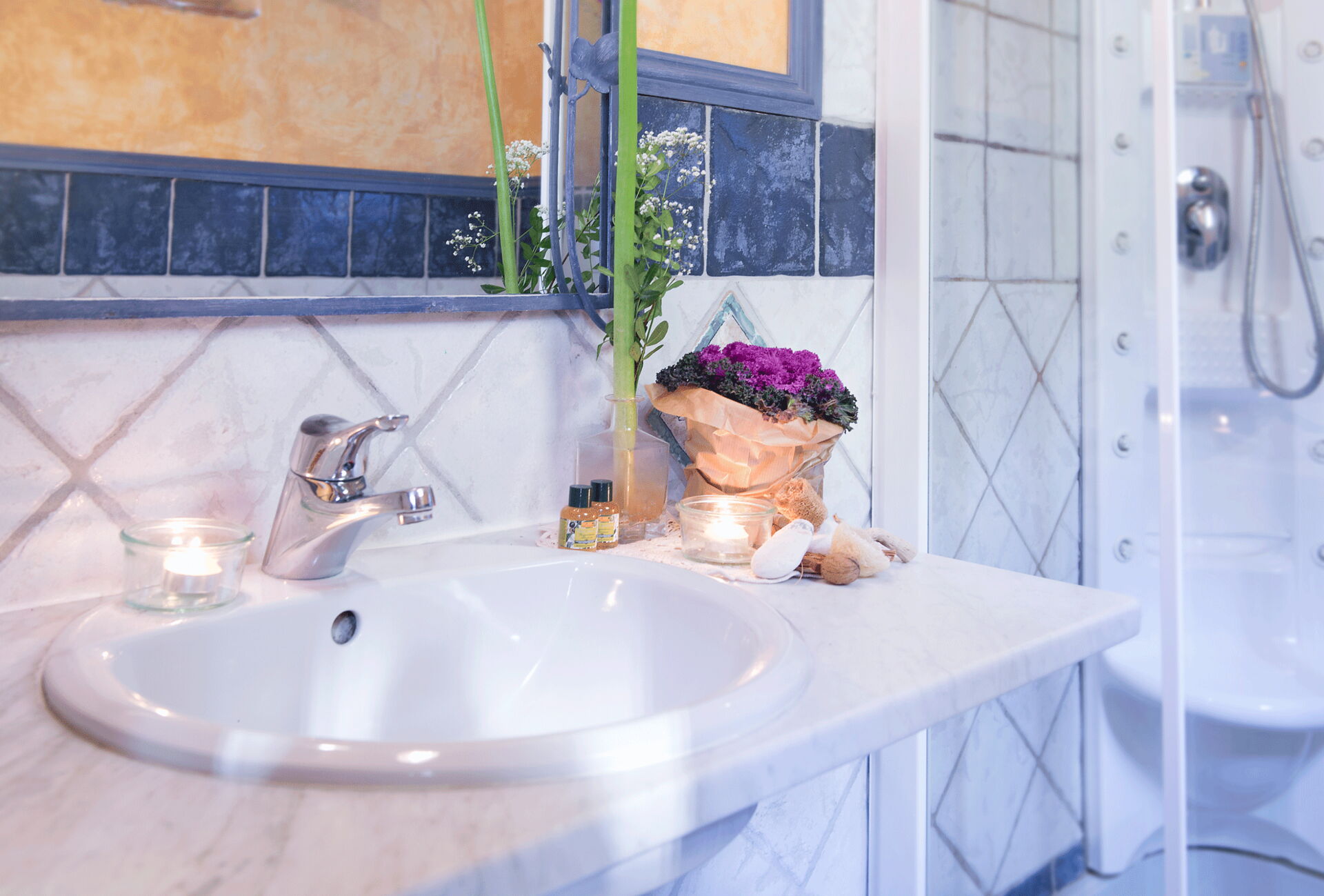 Bathroom with hydromassage shower and double bedroom equipped with AC and wifi.