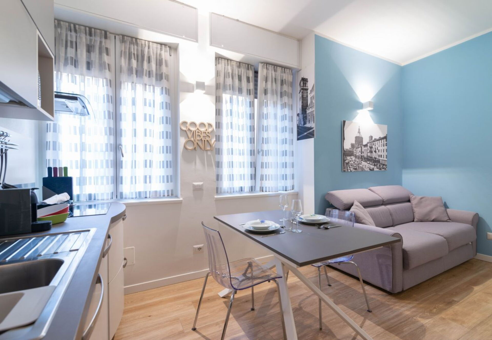 Nach Ankunft in Ihrem Ferienheim Vittoria Suite werden Sie eine schöne, saubere und gut gepflegte Unterkunft finden, mit Blick auf die Stadt erstklassig für einen entspannenden Lombardei-Urlaub. Nach einem beschäftigten Tag, den Sie mit Sightseeing verbracht haben, können Sie mit Familie und Freunden ein schönes, kühles Glas Wein genießen - einfach perfekt, um den Tag ganz ausgeruht ausklingen zu lassen. Wenn Sie gerne für Familie und Freunde kochen, werden Sie sich über die gut ausgestattete Küche freuen mit Kaffeemaschine, Mikrowelle, Herd und Kühlschrank, sowie ausreichend Geschirr und Besteck für bis zu zwei Personen.