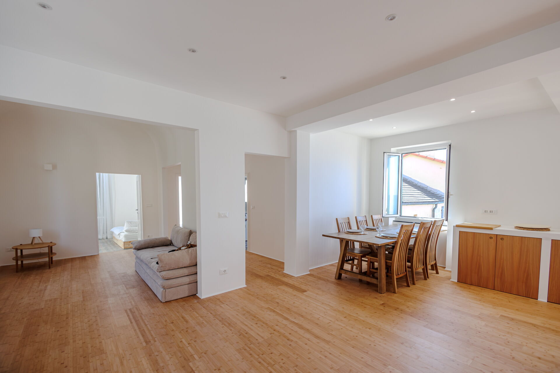 Wohnküche: gut ausgestattete Küche, Esstisch, Spülmaschine, Kühlschrank, Tiefkühler, Herd, Ofen, Italienische Kaffeemaschine, Doppel-Schlafsofa, WiFi Internet, Klimaanlage, TV, Ausgang auf den Balkon.
