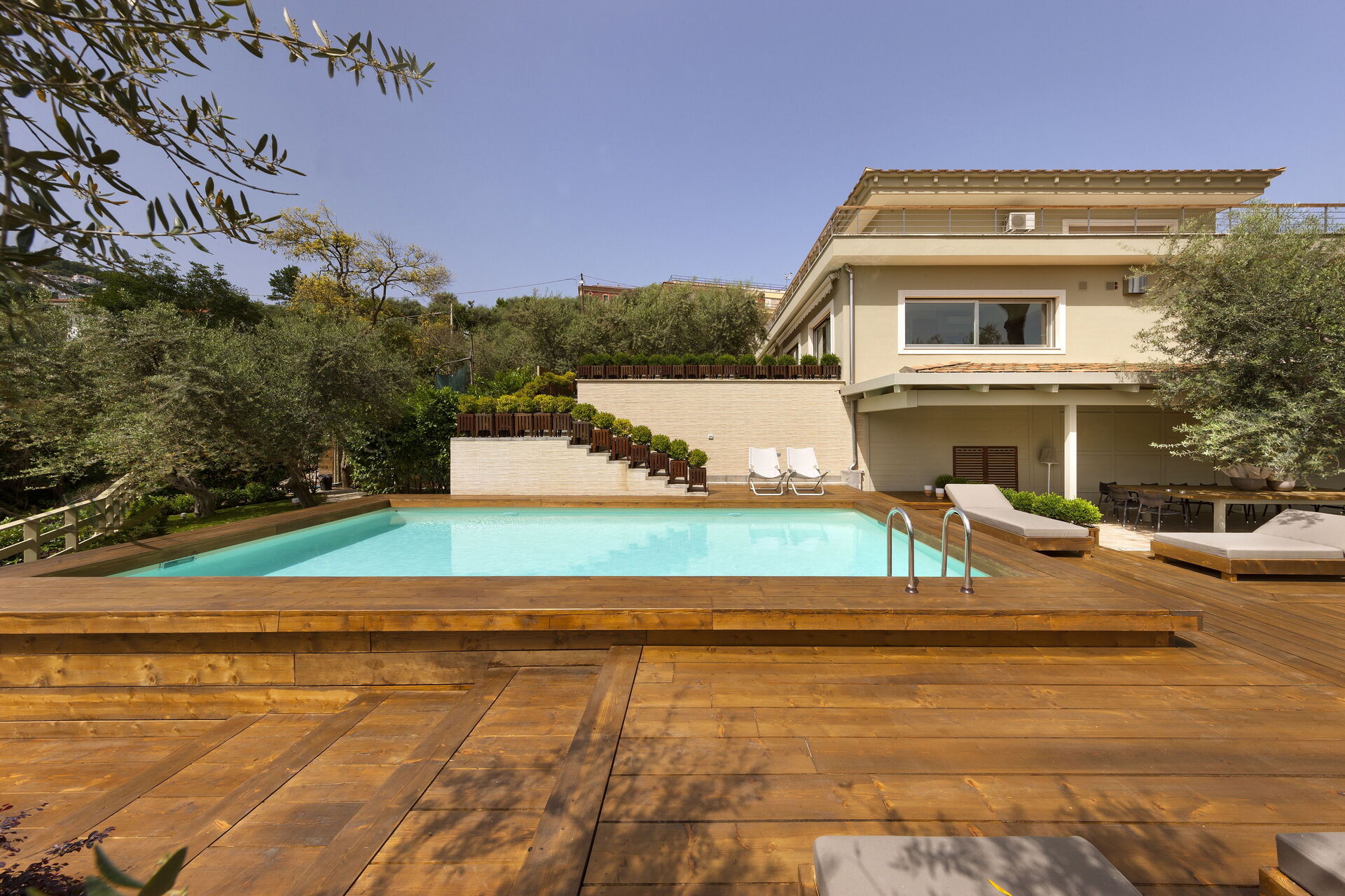 Nach Ankunft werden Sie eine hübsche, saubere und gut gepflegte Unterkunft finden, mit Ausblick auf die Stadt und die Berge perfekt für einen entspannenden Kampanien-Urlaub. Zum Zeitvertreib gibt es hier einen privater Pool wo Sie sich nach Ihrem ereignisreichen Tag, den Sie mit Einkaufen verbracht haben, ausruhen können, während Sie ein erfrischendes, kühles Getränk zu sich nehmen. Im Außenbereich können Sie eine Terrasse und einen Grill nutzen. Essen mit Freunden und Familie ist ein wichtiger Bestandteil der italienischen Kultur. Nutzen Sie die Küche, um Mahlzeiten aus lokalen Produkten vorzubereiten, während Sie im Urlaub sind. Die Küche kommt mit Kaffeemaschine, Mikrowelle und Toaster, sowie ausreichend Geschirr und Besteck für bis zu 12 Personen. Speisen Sie 'al Fresco' wie ein echter Italiener - die komplett eingerichtete Veranda ist eine perfekte Kulisse, um das Essen, die Familie und das schöne italienische Wetter zu genießen.