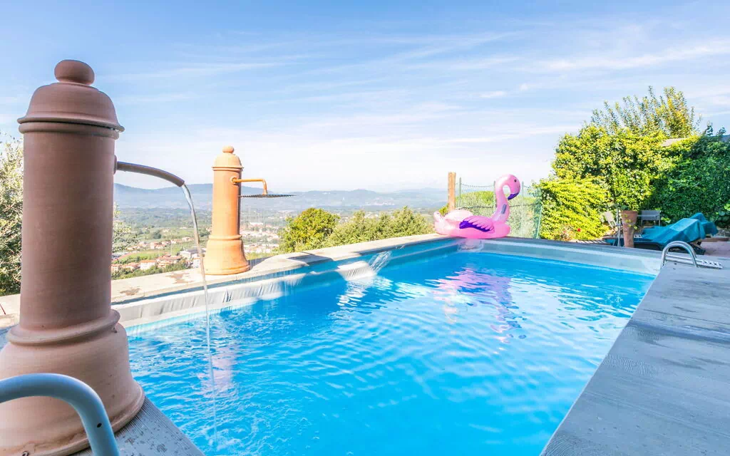 Landsitz 450 m.ü.M., einseitig angebaut. 1.4 km vom Zentrum von Reggello, 30 km vom Zentrum von Greve in Chianti, 40 km vom Zentrum von Firenze, erhöhte Lage auf einem Hügel, im Grünen. Zur Alleinbenutzung: terrassierter Garten (eingezäunt), Schwimmbad beheizt, eingezäunt (8 x 6 m, 140 cm tief, saisonale Verfügbarkeit: 04.Apr. - 24.Okt.). Dusche/WC im Poolbereich, Gartenmöbel. Im Hause: Zentralheizung, Heizung vor Ort zu zahlen, Heizung nur verfügbar von 01.Nov. - 04.Apr.. Koch möglich (extra). Parkplatz auf dem Grundstück. Einkaufsgeschäft, Lebensmittelgeschäft, Supermarkt 700 m, Bushaltestelle 2 km, Bahnstation "Figline Valdarno" 12 km, Badesee "Bilancino" 70 km. Tennis 1 km, Reitstall 1 km. Nahe gelegene Sehenswürdigkeiten: Castelfranco di Sopra 12 km, Vallombrosa 13 km, Loro Ciuffenna 21 km, Gaiole in Chianti 36 km, Panzano in Chianti, Radda in Chianti 38 km, Siena 75 km. Bitte beachten: Fahrzeug empfohlen.