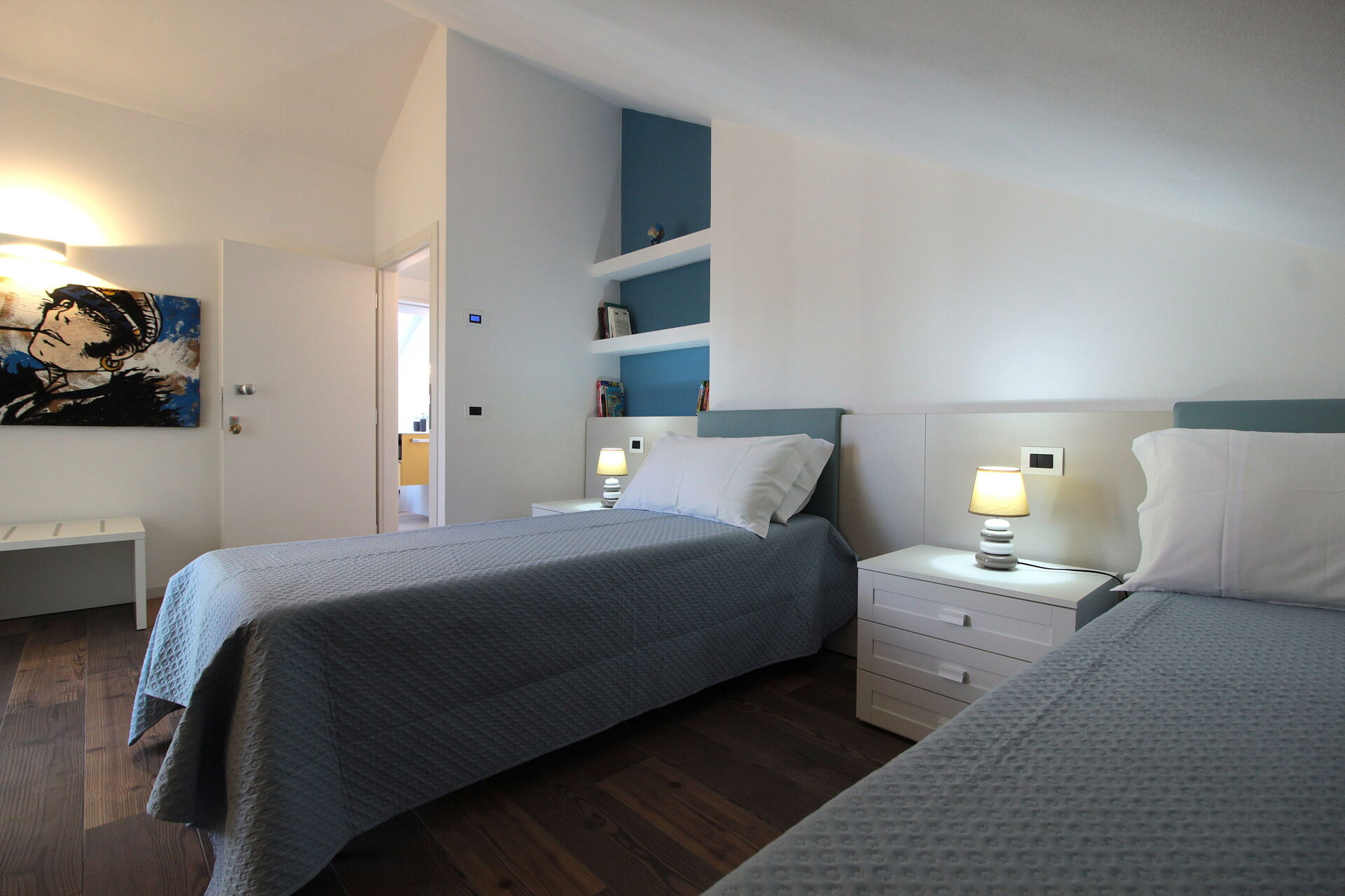 Schlafzimmer 2: zwei Einzelbetten, WiFi Internet, Ausgang auf die Terrasse.