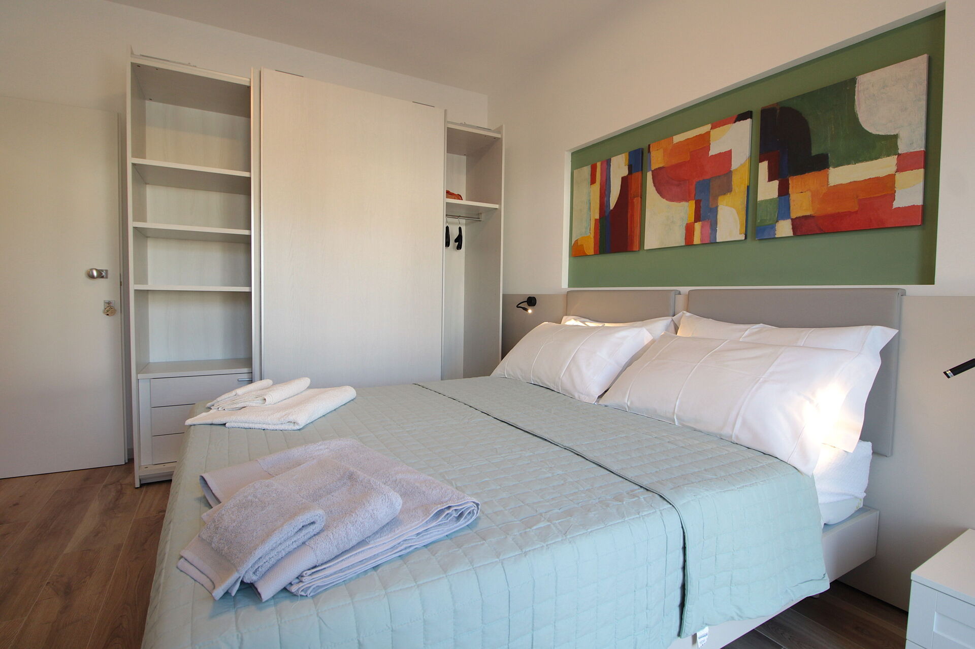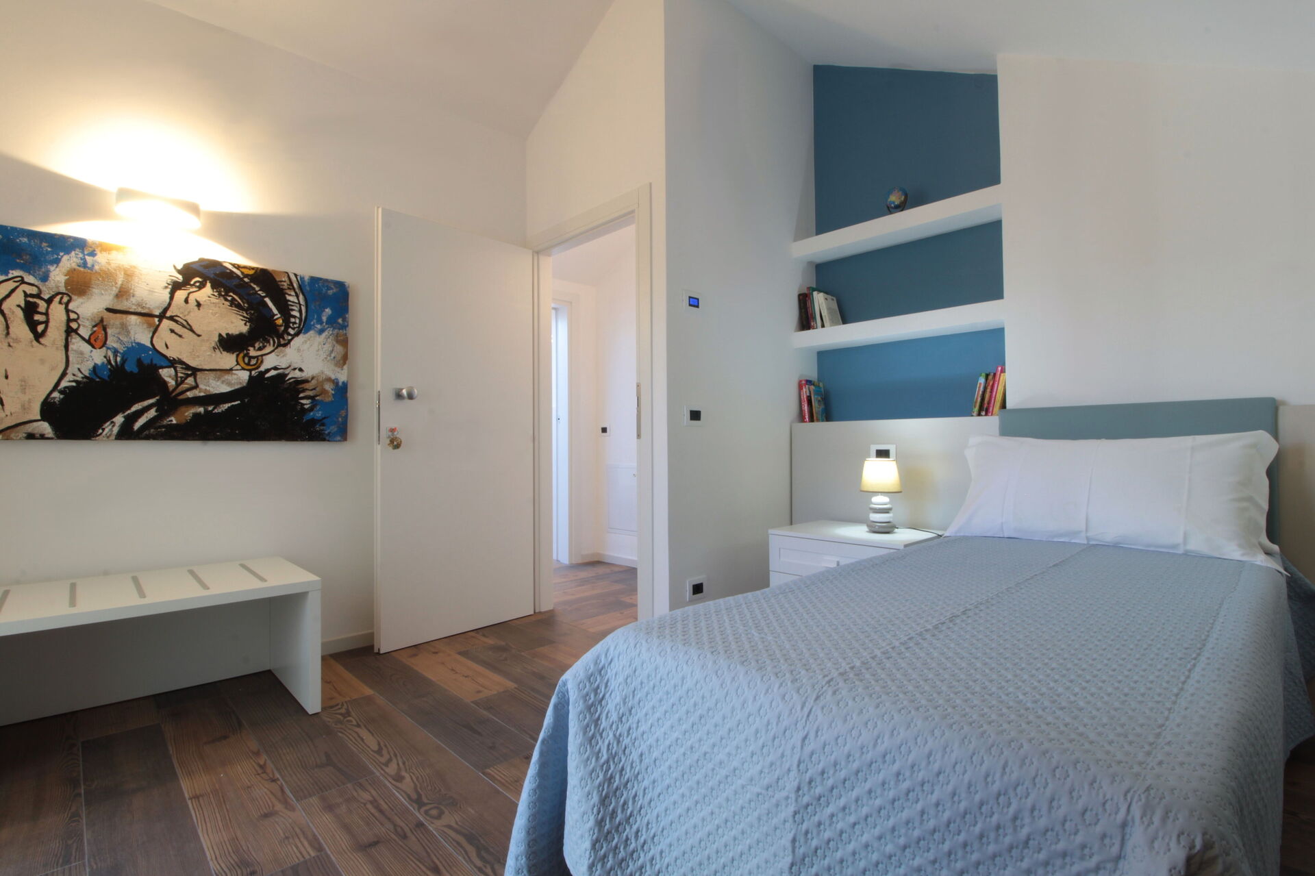Schlafzimmer: Doppelbett, WiFi Internet, Klimaanlage, Ausgang auf den Balkon.