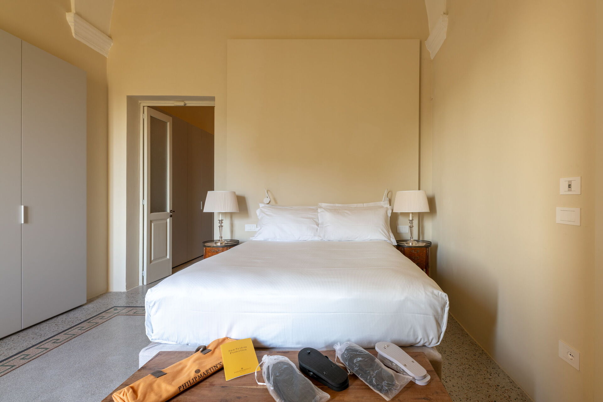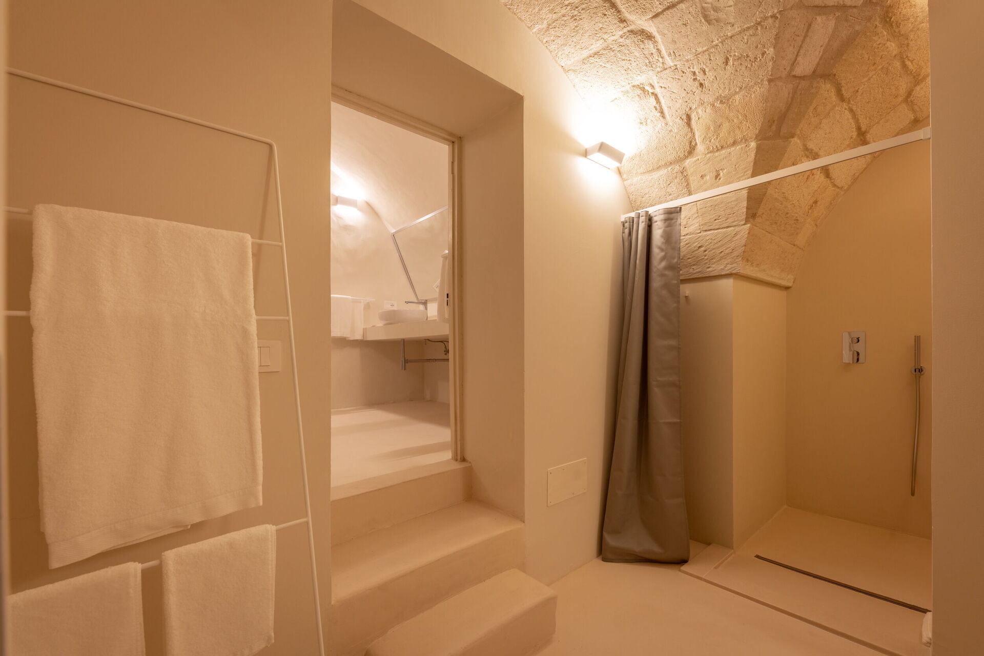 Casa Corte ist das Nebengebäude des Palazzo, das absolute Privatsphäre bietet, da es neben dem Doppelzimmer und dem Badezimmer auch über eine kleine Kochnische mit Kochfeld, Spüle und Kühlschrank sowie eine Mikrowelle, einen Wasserkocher und eine Nespresso-Maschine mit Kapseln und alles Notwendige für ein schnelles Mittag- oder Abendessen verfügt. Ein kleines Freibad mit komfortablem Sonnendeck und eine Terrasse auf dem Dach des Gebäudes vervollständigen diesen ruhigen und abgeschiedenen Bereich. Im Außenbereich befinden sich ein Grillplatz, eine Außendusche, Sofas und ein Esstisch.
