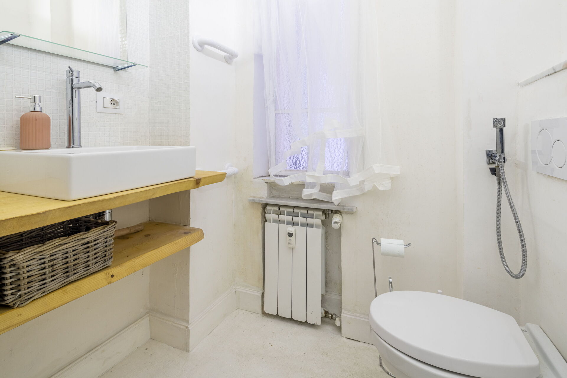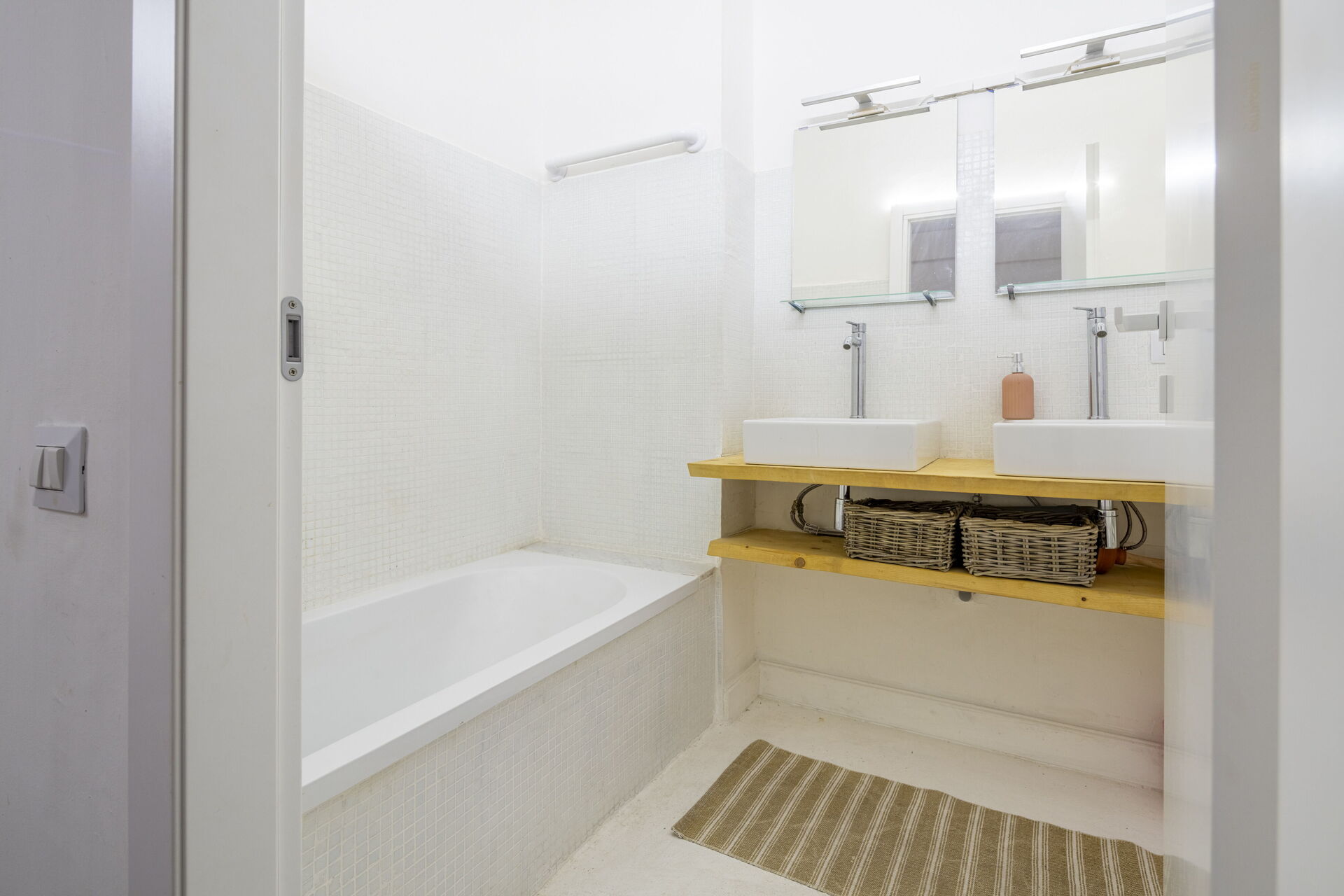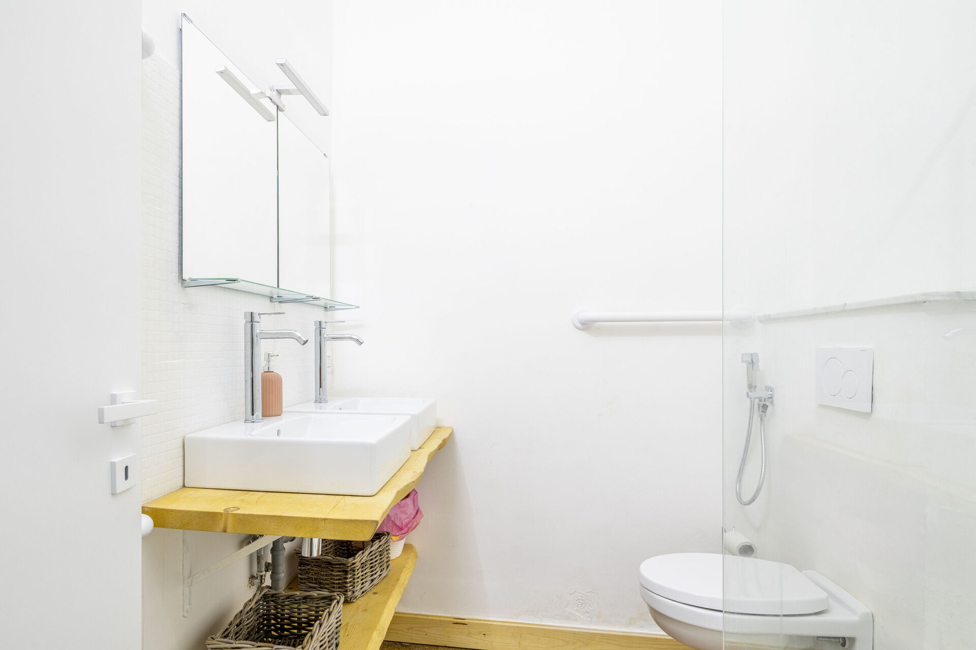 Badezimmer: Doppelwaschbecken, WC, Bidet, Dusche, Waschmaschine, WiFi Internet, Internet.
