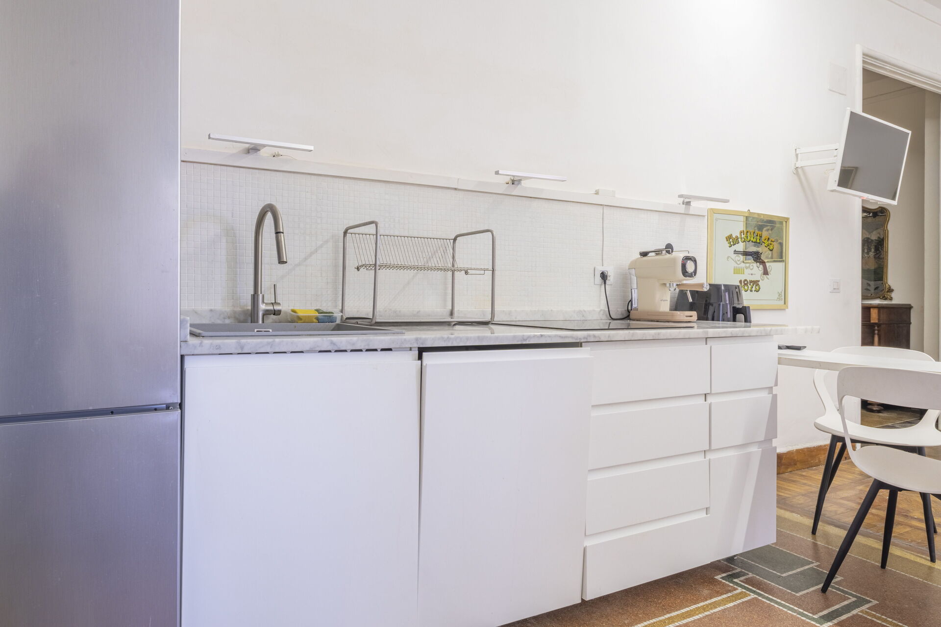 Bei Ankunft werden Sie von dem Besitzer oder Manager begrüßt, der Ihnen die reizende, saubere und gut gepflegte Unterkunft zeigt, erstklassig für einen friedlichen Ligurien-Urlaub. Ein echter Vorteil einer privaten Ferienunterkunft, im Gegensatz zu mehreren Hotelzimmern, ist, dass Sie nach einem anstrengenden Tag, den Sie mit Sightseeing verbracht haben, gemeinsam mit Freunden und Familie entspannen können. Essen Sie zusammen und genießen Sie den lokalen Wein, um den Tag ausklingen zu lassen. Essen mit Freunden und Familie ist ein großer Bestandteil der italienischen Kultur. Nutzen Sie die Küche, um Mahlzeiten aus lokalen Produkten vorzubereiten, während Sie im Urlaub sind. Die Küche kommt mit Kaffeemaschine, Toaster und Kühlschrank, sowie ausreichend Geschirr und Besteck für bis zu vier Personen.