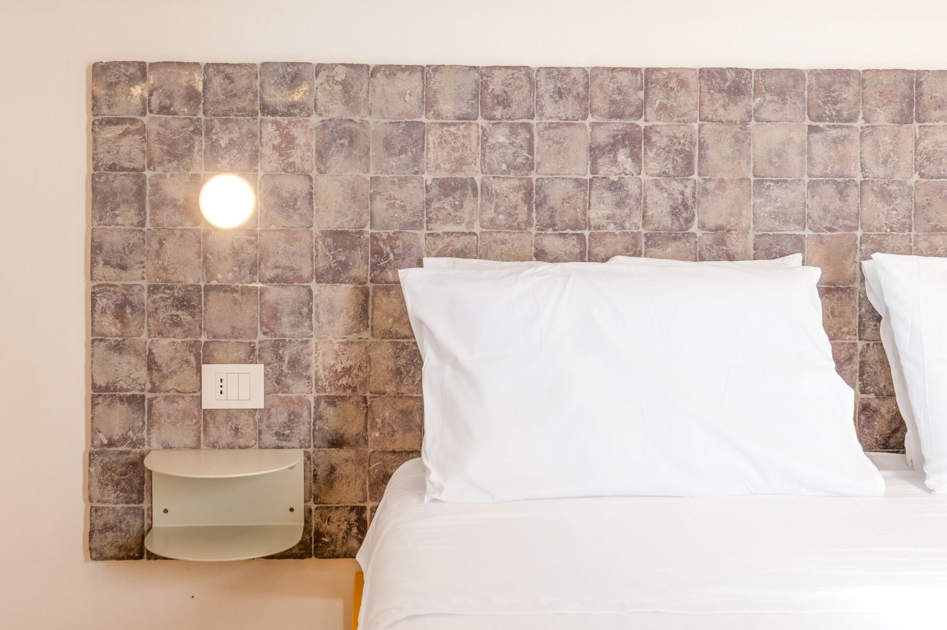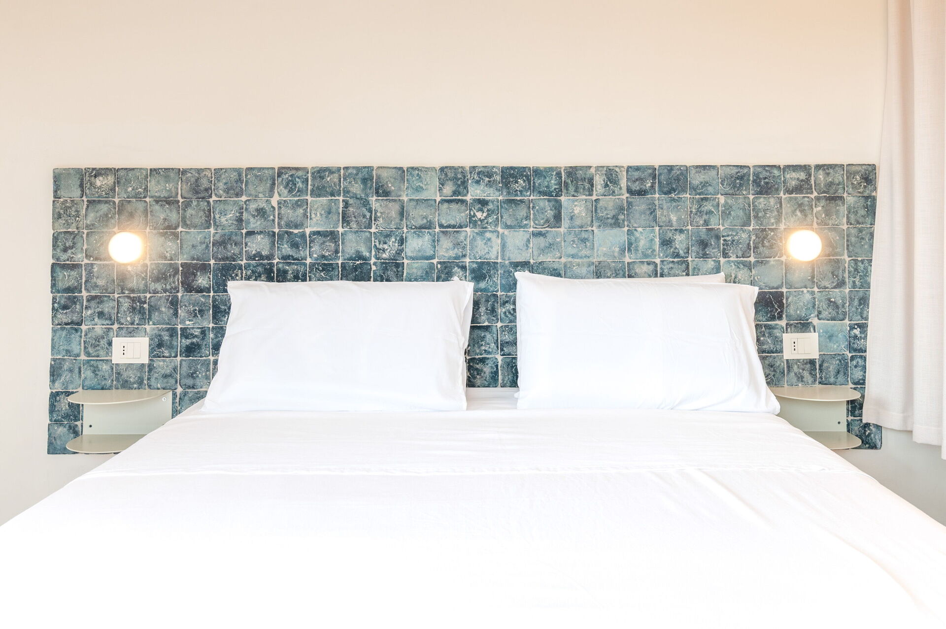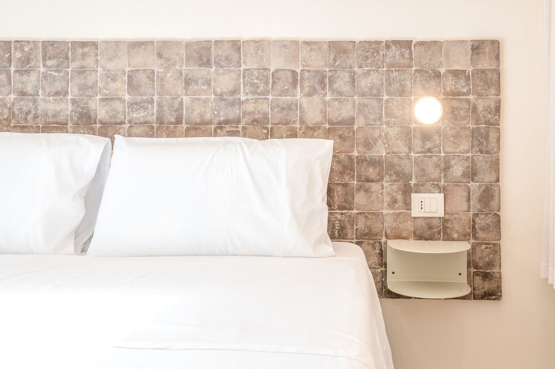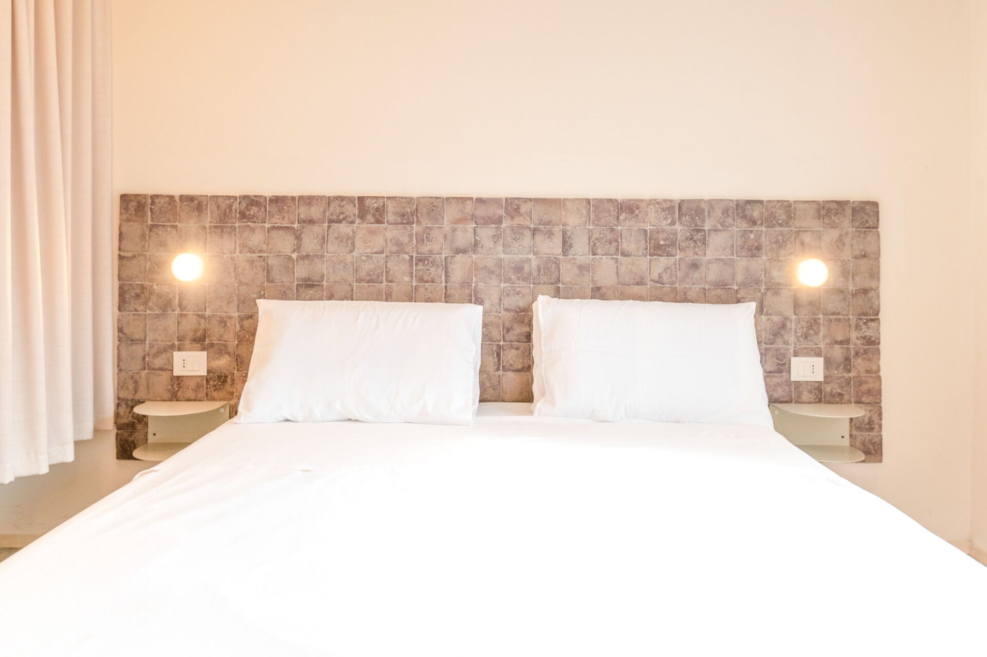 Living Area (Living & Kitchen): A welcoming open-space environment with a working fireplace, a double sofa bed for extra guests, and a dining area. The kitchen is Full Electric, equipped with an induction hob, oven, dishwasher, fridge-freezer, and dual coffee options (Nespresso capsule machine and filter coffee). The entire area is air-conditioned (with sensors to deactivate the system when doors or windows are open to support environmental sustainability) and offers direct access to the central courtyard