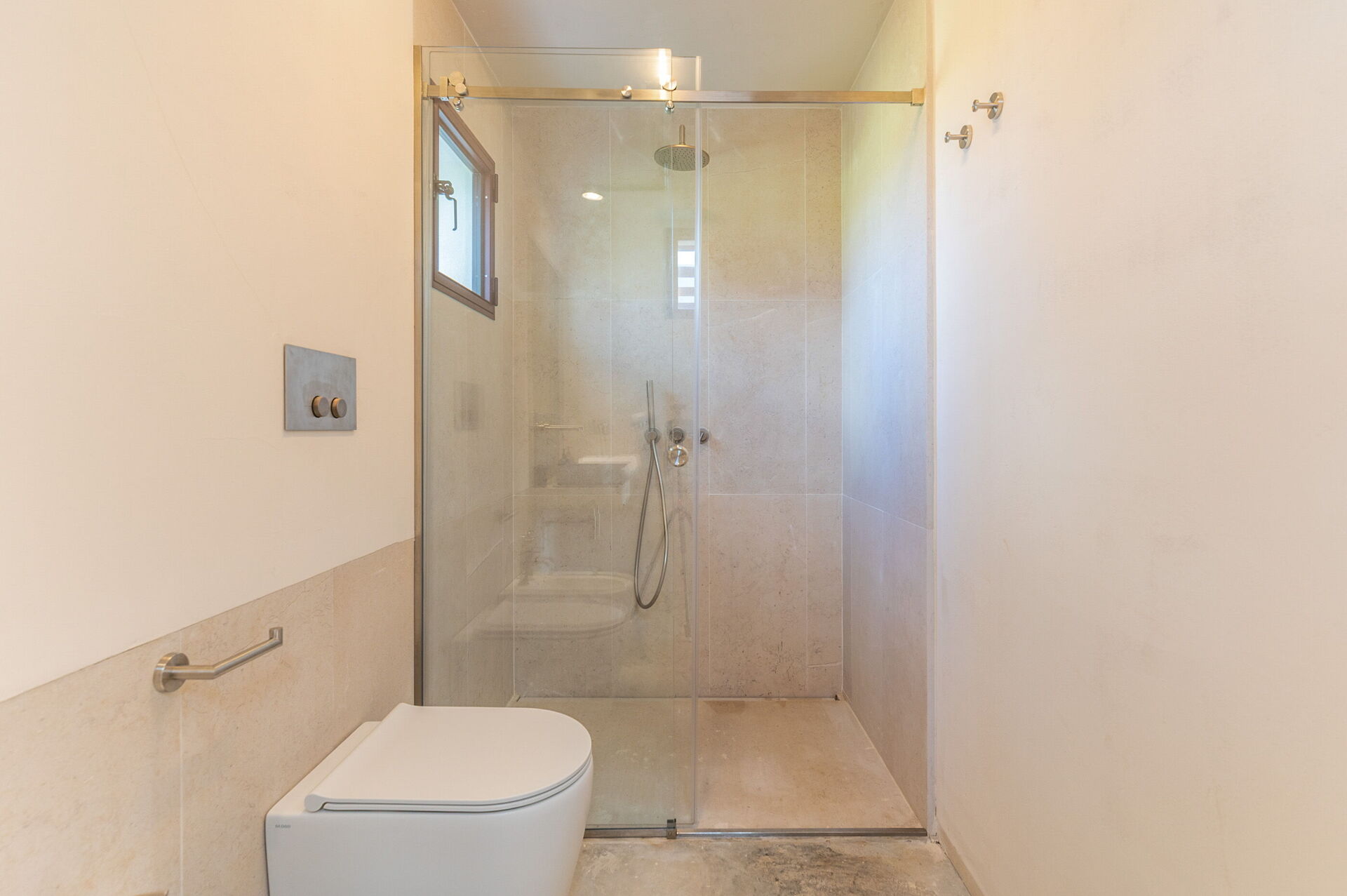 Suite 2: Double bed (1,80 m x 2,00 m), air conditioning, and full en-suite bathroom with shower.