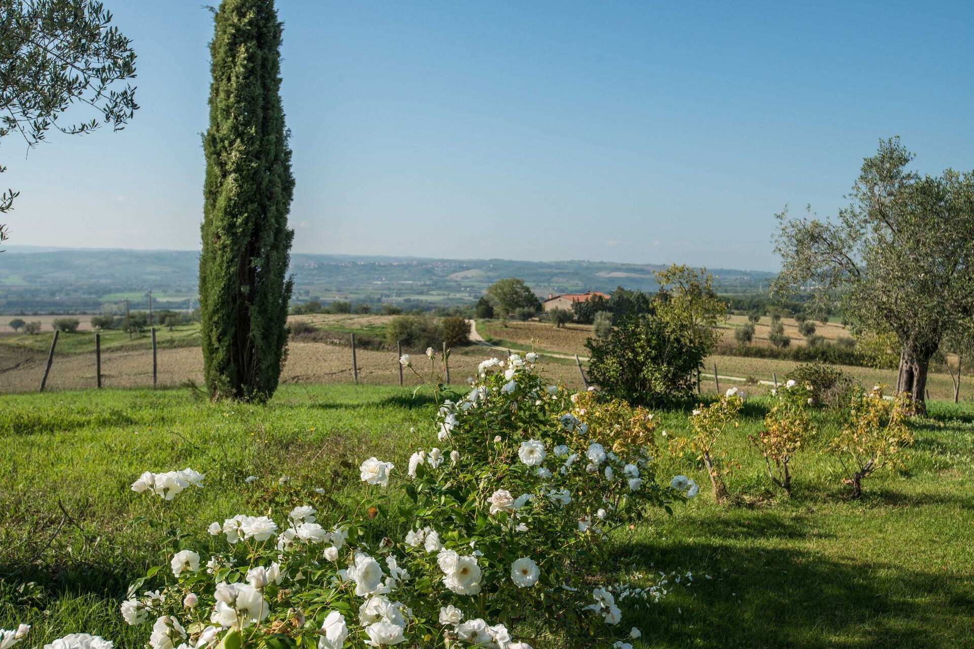 Dank seiner zentralen Lage in Montecchio dient Il Molinazzo als idealer Ausgangspunkt für Tagesausflüge in dieser wunderschönen Region. Die malerische Stadt Orvieto liegt nur 20 km entfernt, während sich das Anwesen in bequemer Tagesausflugsentfernung von Città della Pieve, Castiglione del Lago und dem Trasimenischen See, Montelpulciano, Pienza, Montalcino und anderen bezaubernden Bergstädten der südlichen Toskana befindet. Zu den berühmten umbrischen Reisezielen gehören Todi, Spoleto, Assisi und Perugia, die alle vom Anwesen aus leicht erreichbar sind. Sie können auch von den meisten ausgetretenen Touristenpfaden abschweifen, um kleinere Schätze wie Civita di Bagnoregio in Latium zu erkunden oder die spektakulären Gärten des Castello di Vignanello in der Nähe von Viterbo in nur 46 km Entfernung zu besuchen. Rom ist mit dem Zug in etwa 1 Stunde und 30 Minuten erreichbar, sodass Sie während Ihres Aufenthalts die Hauptstadt erleben können. Ein 18-Loch-Golfplatz steht in Perugia für Golfbegeisterte zur Verfügung, während Reitmöglichkeiten nur 5 Minuten von der Villa entfernt liegen. Die wunderbar ruhige Lage befindet sich auf halbem Weg zwischen Orvieto und Todi, im Herzen Umbriens, umgeben von Olivenhainen und Zypressen, wo sich der Blick über die Landschaft bis zur Burg von Guardea erstreckt.