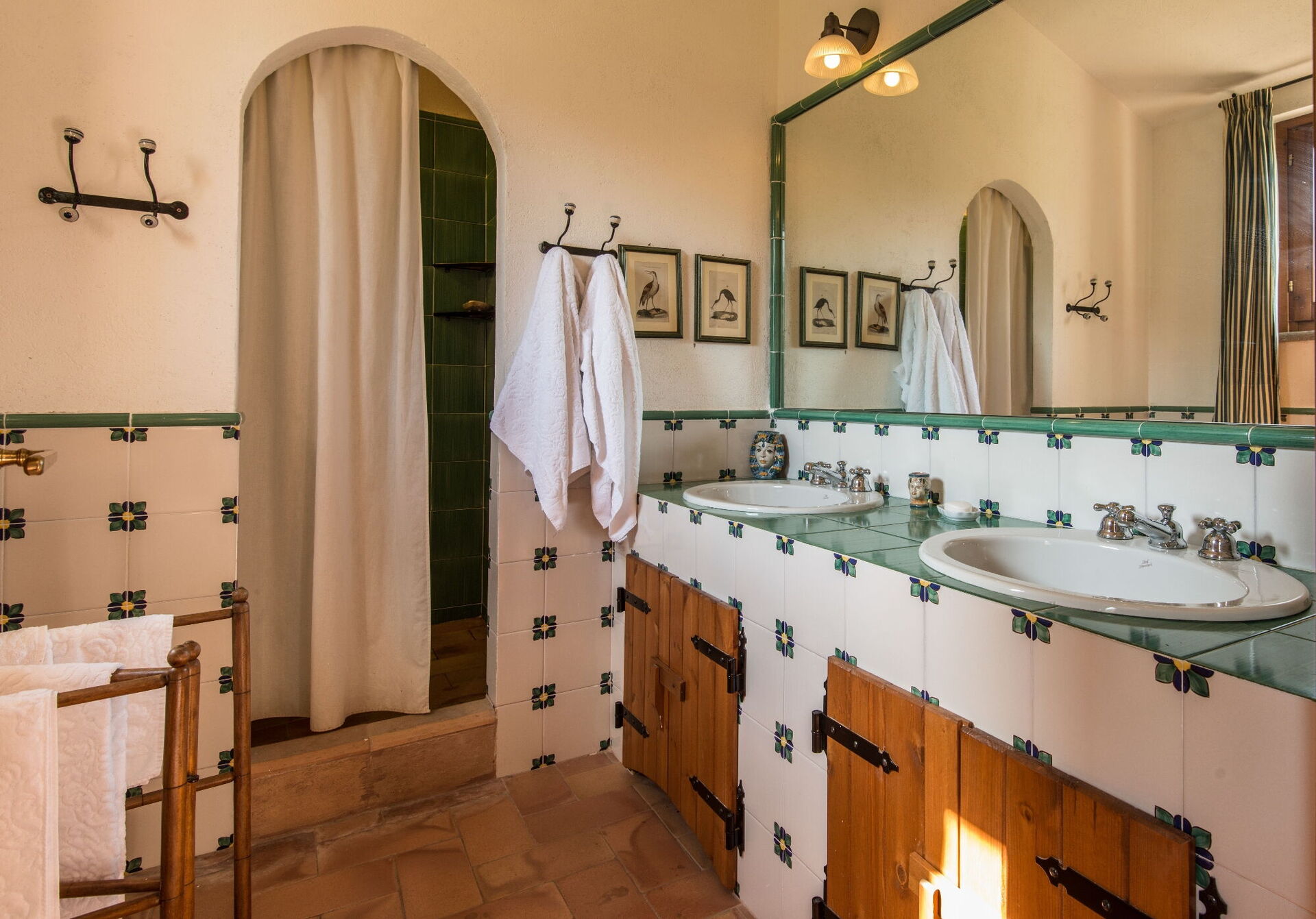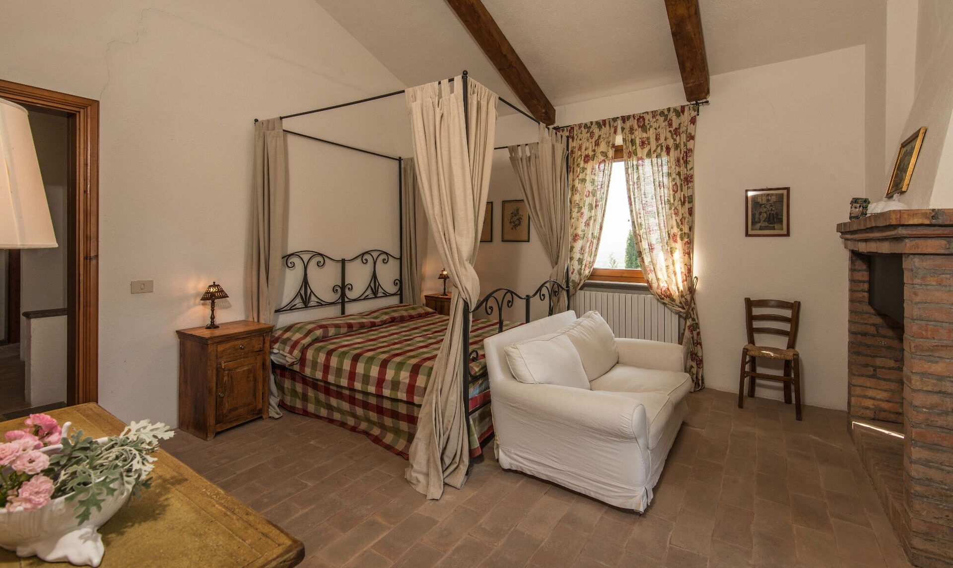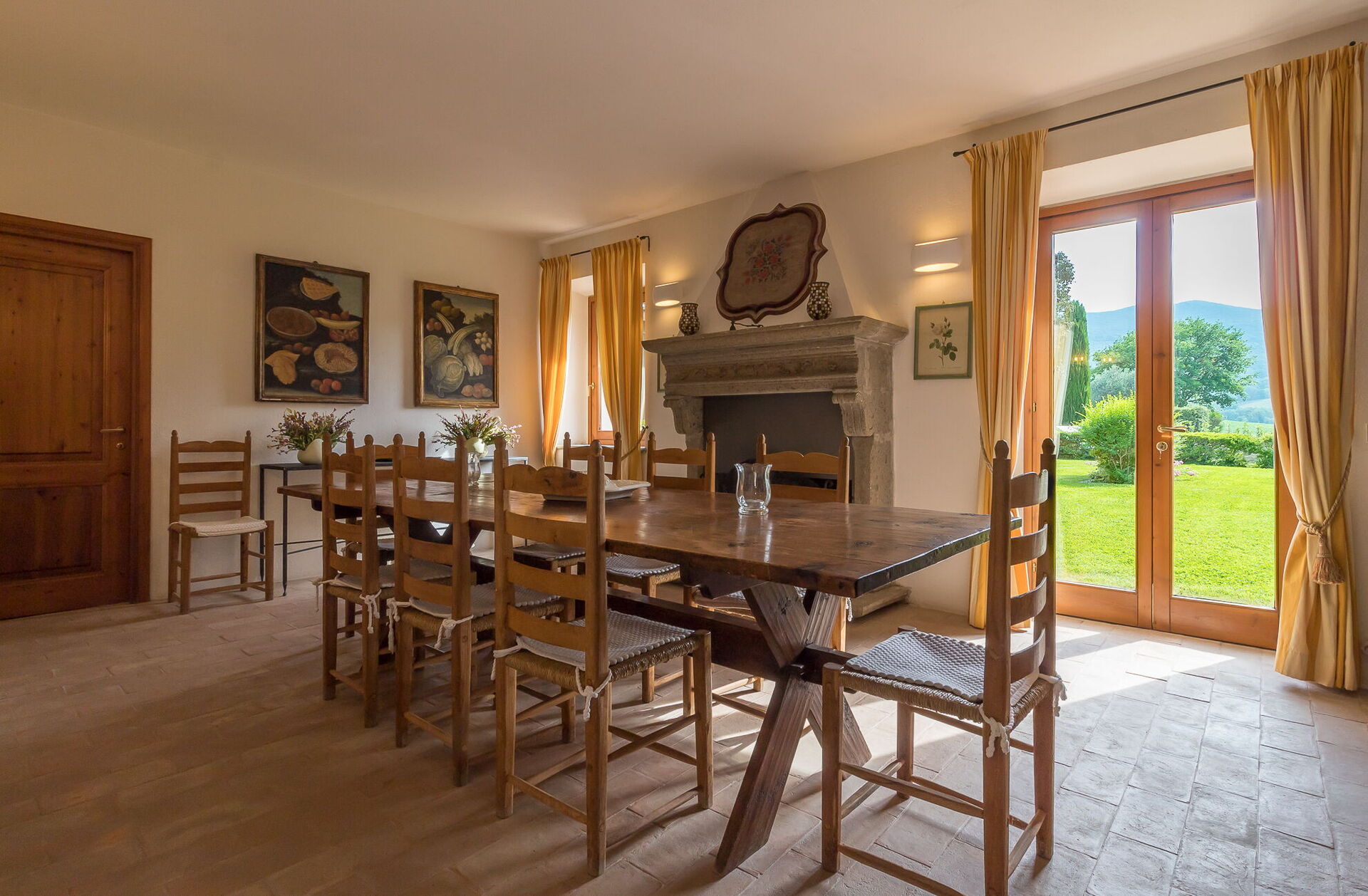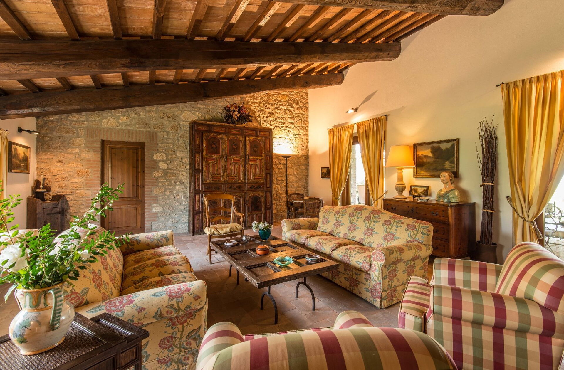 Sie finden diese weitläufige Ferienunterkunft durchdacht gestaltet, um bis zu 14 Gäste in 7 Schlafzimmern und 7 Badezimmern unterzubringen, verteilt auf das Haupthaus und ein Nebengebäude. Das Haupthaus verfügt über einen Eingang im Erdgeschoss, der Sie in ein erstes Wohnzimmer führt, das mit einem bequemen Chesterfield-Sofa und ein paar Sesseln ausgestattet ist und Sitzgelegenheiten für bis zu 7 Personen bietet. Angrenzend an diesen Bereich entdecken Sie ein großes Wohnzimmer mit funktionierendem Kamin und bequemen Sofas und Sesseln, die bis zu 10 oder 12 Personen Platz bieten, mit Flügeltüren, die zur überdachten Loggia führen, wo Sie entspannen und die Aussicht genießen können. Neben dem Wohnzimmer befindet sich ein großes Esszimmer mit funktionierendem Kamin, das bis zu 14 Personen Platz bietet. Das Erdgeschoss umfasst auch eine große Küche mit separatem Essbereich, funktionierendem Kamin und einem Tisch für 8 Personen, mit Flügeltüren, die zu einer Essterrasse und einem zweiten Wohnbereich im Freien führen. Ein Gästebad dient dieser Ebene. Das Erdgeschoss wird durch ein klimatisiertes Doppelzimmer mit Kingsize-Bett, separatem Wohnzimmer und begehbarem Kleiderschrank vervollständigt, begleitet von einem eigenen Badezimmer mit Badewanne mit Handbrause und separater Dusche. Die erste Etage bietet Schlafmöglichkeiten für bis zu 8 Personen und herrliche Ausblicke über die sanften Hügel und die Landschaft. Sie finden ein Hauptschlafzimmer mit Kingsize-Bett, funktionierendem Kamin und begehbarem Kleiderschrank, mit eigenem Badezimmer mit Dusche und Doppelwaschbecken. Drei weitere Schlafzimmer auf dieser Etage bieten flexible Schlafmöglichkeiten mit Einzelbetten, die zu Doppelbetten zusammengestellt werden können. Eines dieser Schlafzimmer verfügt über einen begehbaren Kleiderschrank, und ihre eigenen Badezimmer sind entweder mit Duschen oder einer Badewanne mit Handbrause ausgestattet. Das Nebengebäude, gegen Aufpreis verfügbar, bietet 2 zusätzliche klimatisierte Schlafzimmer. Ein Zweibett- oder Doppelzimmer mit Einzelbetten, die zusammengestellt werden können, hat Flügeltüren, die zum Garten führen, und ein eigenes Badezimmer mit Dusche. Ein Doppelzimmer mit Queensize-Bett hat eine Tür, die zum Garten führt, und ein eigenes Badezimmer mit Dusche.