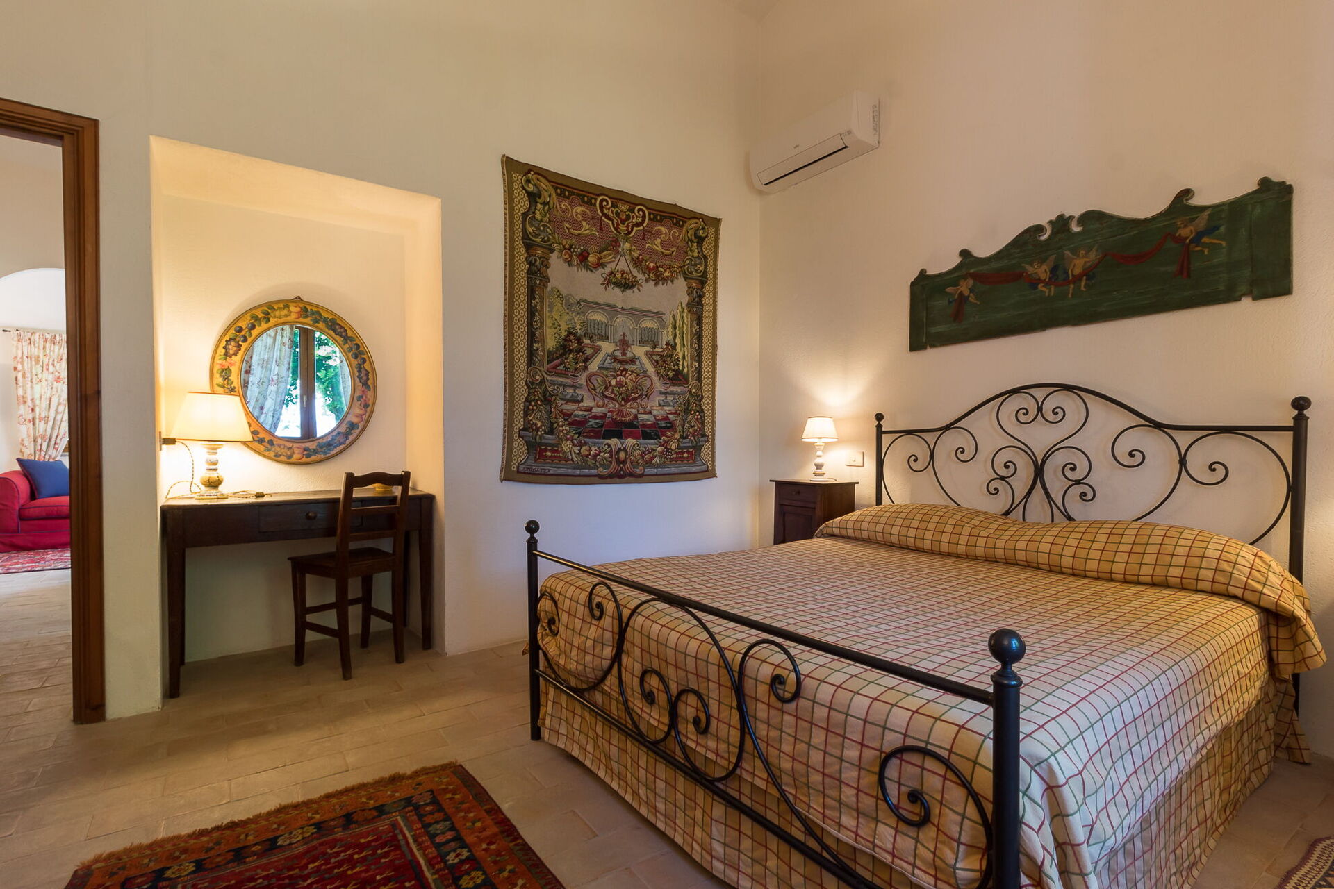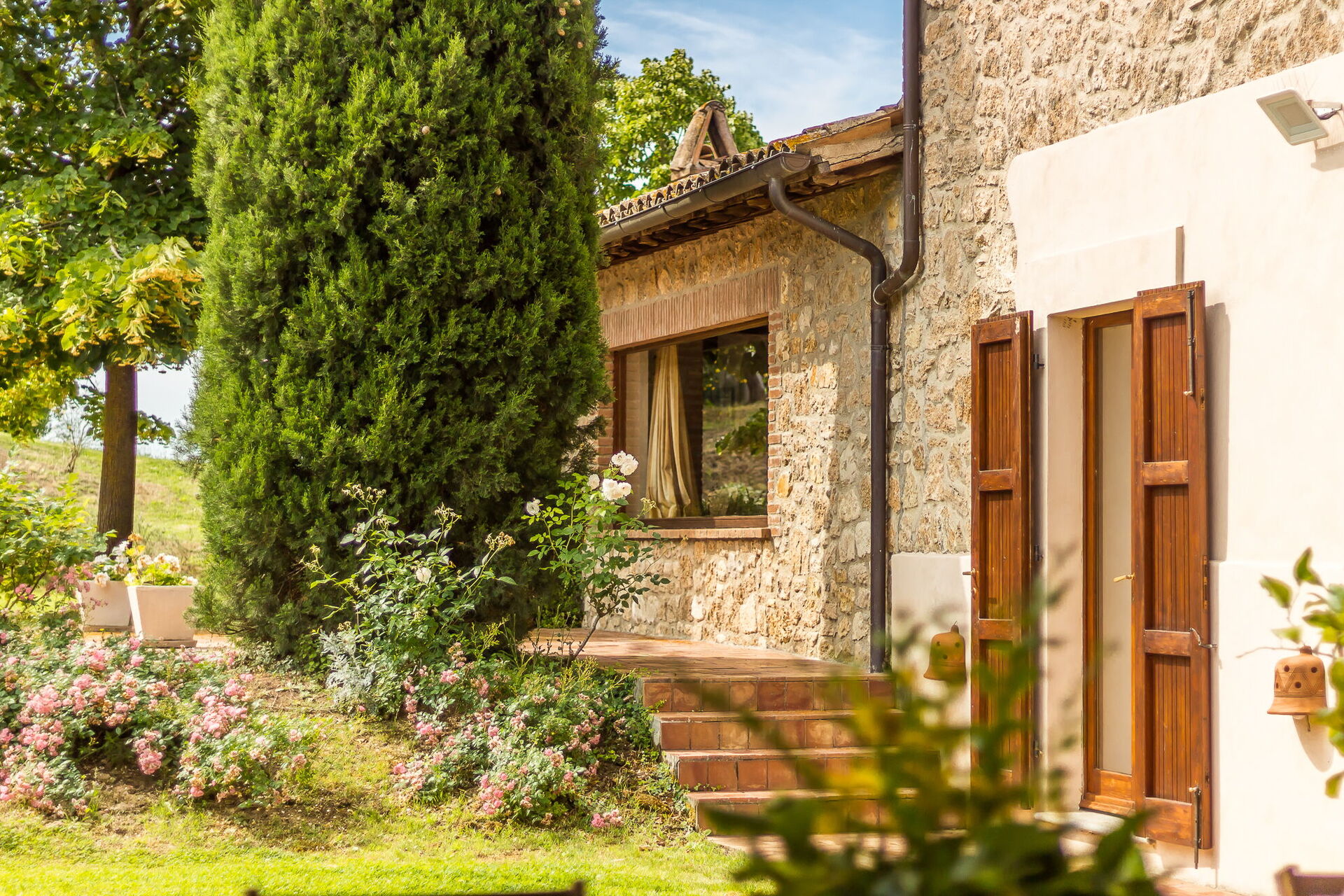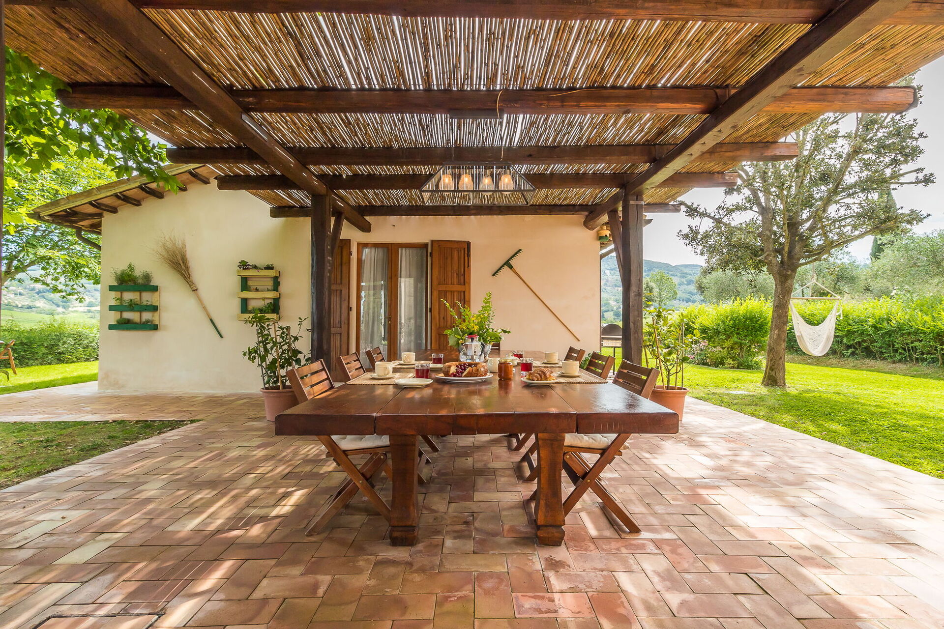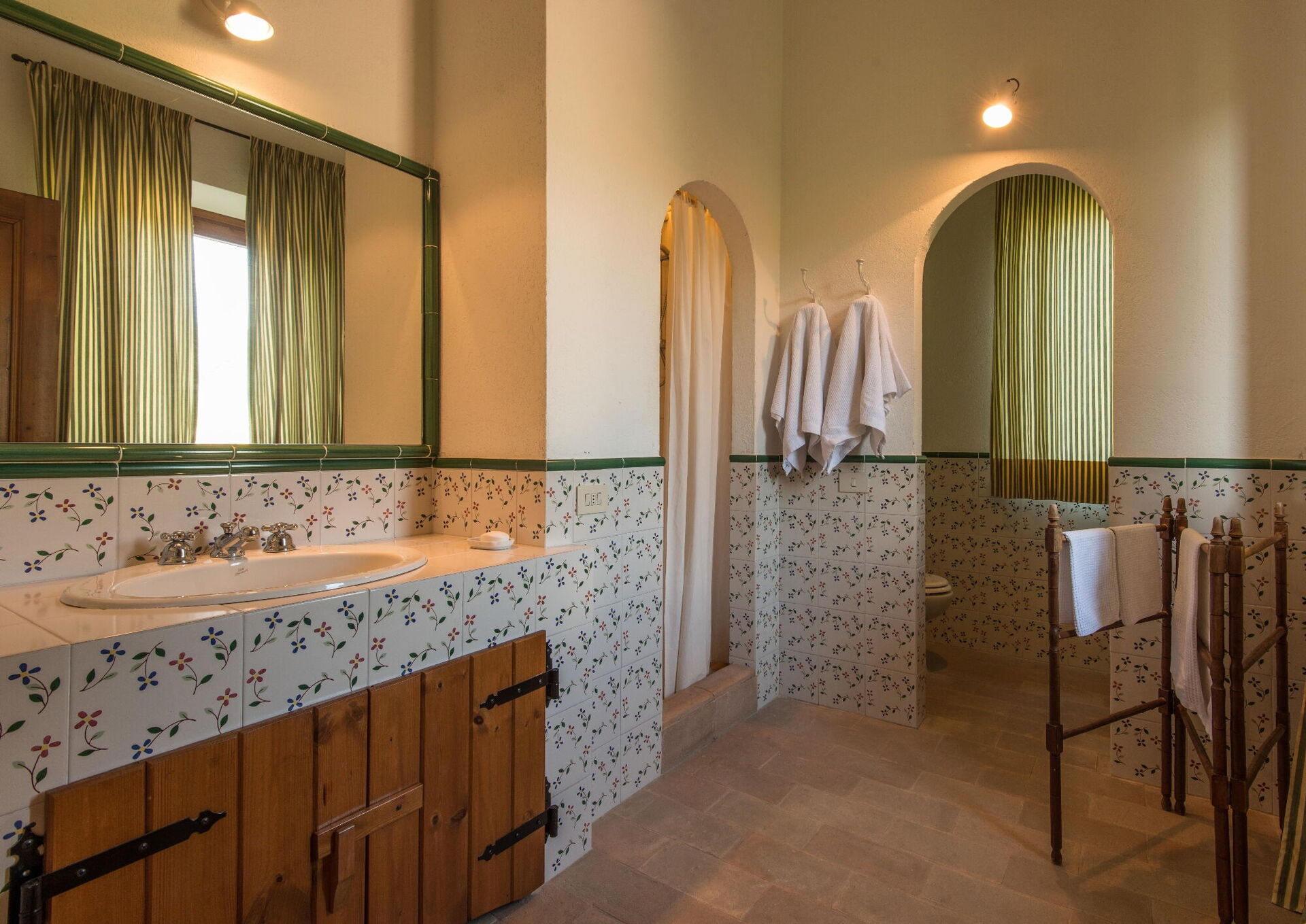 Il Molinazzo ist eine elegante, freistehende Landvilla für 10 bis 14 Personen mit 7 Schlafzimmern und 7,5 Badezimmern, perfekt gelegen zur Erkundung des südlichen Teils der Toskana, Umbriens und Latiums. Die Unterkunft befindet sich in Montecchio, Italien, nur 20 km von der malerischen Stadt Orvieto entfernt. Dieses kürzlich restaurierte Anwesen erstreckt sich über 500 Quadratmeter Innenfläche und liegt auf einem 2 Hektar großen Grundstück. Sie werden feststellen, dass die Unterkunft von den Eigentümern persönlich und mit ausgezeichnetem Geschmack eingerichtet wurde, wobei eine wunderbare Balance zwischen antiken Möbeln und modernen Annehmlichkeiten erreicht wurde. Das Anwesen verfügt über einen Panorama-Swimmingpool in beherrschender Lage mit spektakulärem Blick über die sanfte Hügellandschaft. In allen Schlafzimmern ist eine Klimaanlage vorhanden, um Ihren Komfort während der warmen Sommermonate zu gewährleisten, und eine WLAN-Internetverbindung steht Ihnen während Ihres gesamten Aufenthalts zur Verfügung. Der weitläufige Außenbereich umfasst gepflegte Gärten voller Rosen, Lavendel und anderer blühender Pflanzen, umgeben von Olivenhainen und Zypressen in einer Landschaft, die von jahrhundertelanger geduldiger landwirtschaftlicher Tradition geprägt ist. Il Molinazzo besteht aus 2 angrenzenden Steinhäusern, wobei das Haupthaus bis zu 10 Personen in 5 Schlafzimmern und 5 Badezimmern beherbergt, während ein kleineres Gästehaus weitere Gäste in 2 Schlafzimmern und 2 Badezimmern sowie einem Waschraum unterbringt. Diese Aufteilung macht das Anwesen ideal für Familientreffen oder Gruppen von 5 bis 7 Paaren, die sowohl Privatsphäre als auch Gemeinschaftsräume suchen.