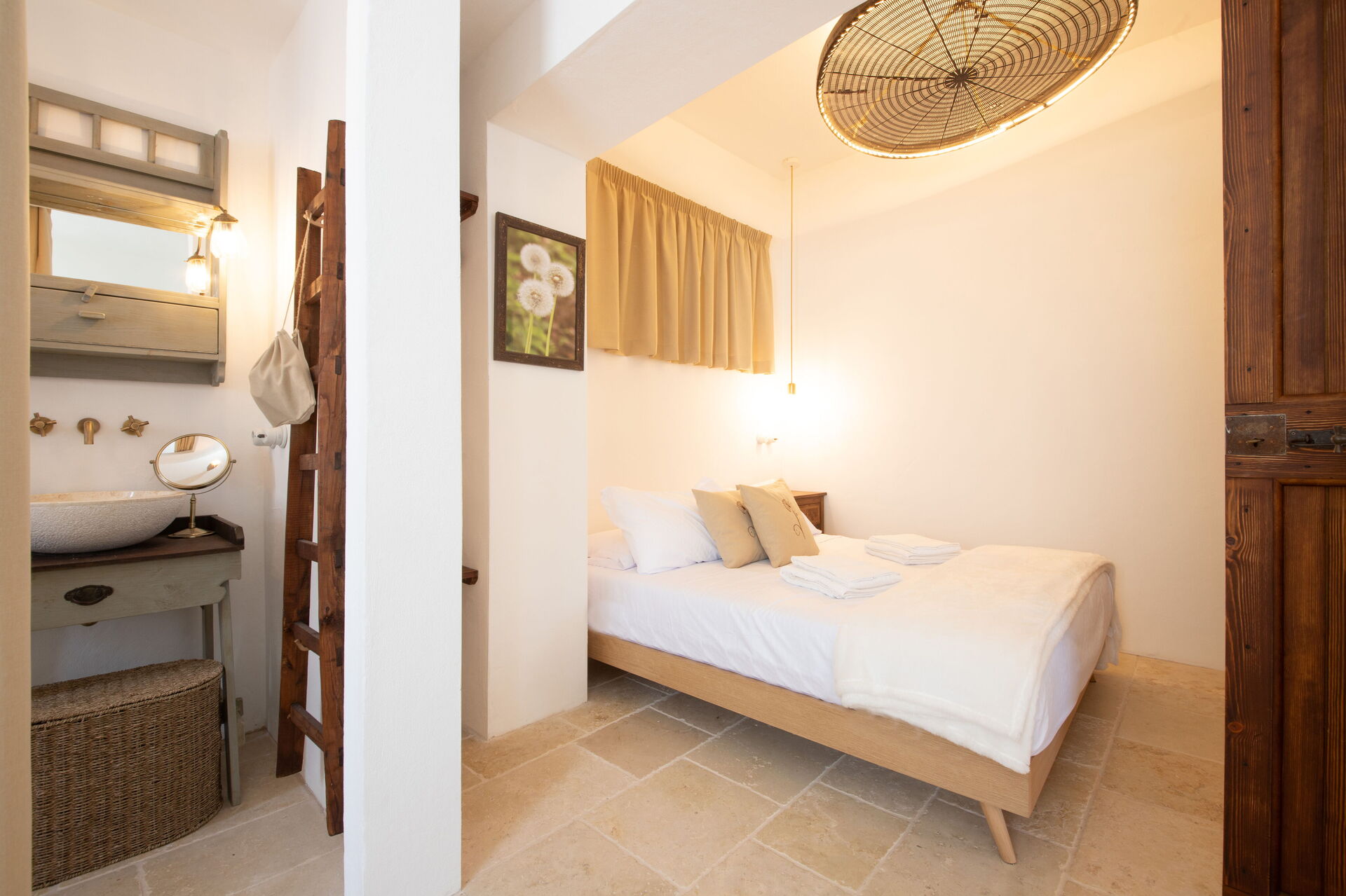 Schlafzimmer mit Bad 2: Doppelbett, WiFi Internet, Klimaanlage, Whirlpool-Badewanne, Waschbecken, WC, Bidet, Dusche, Fön.