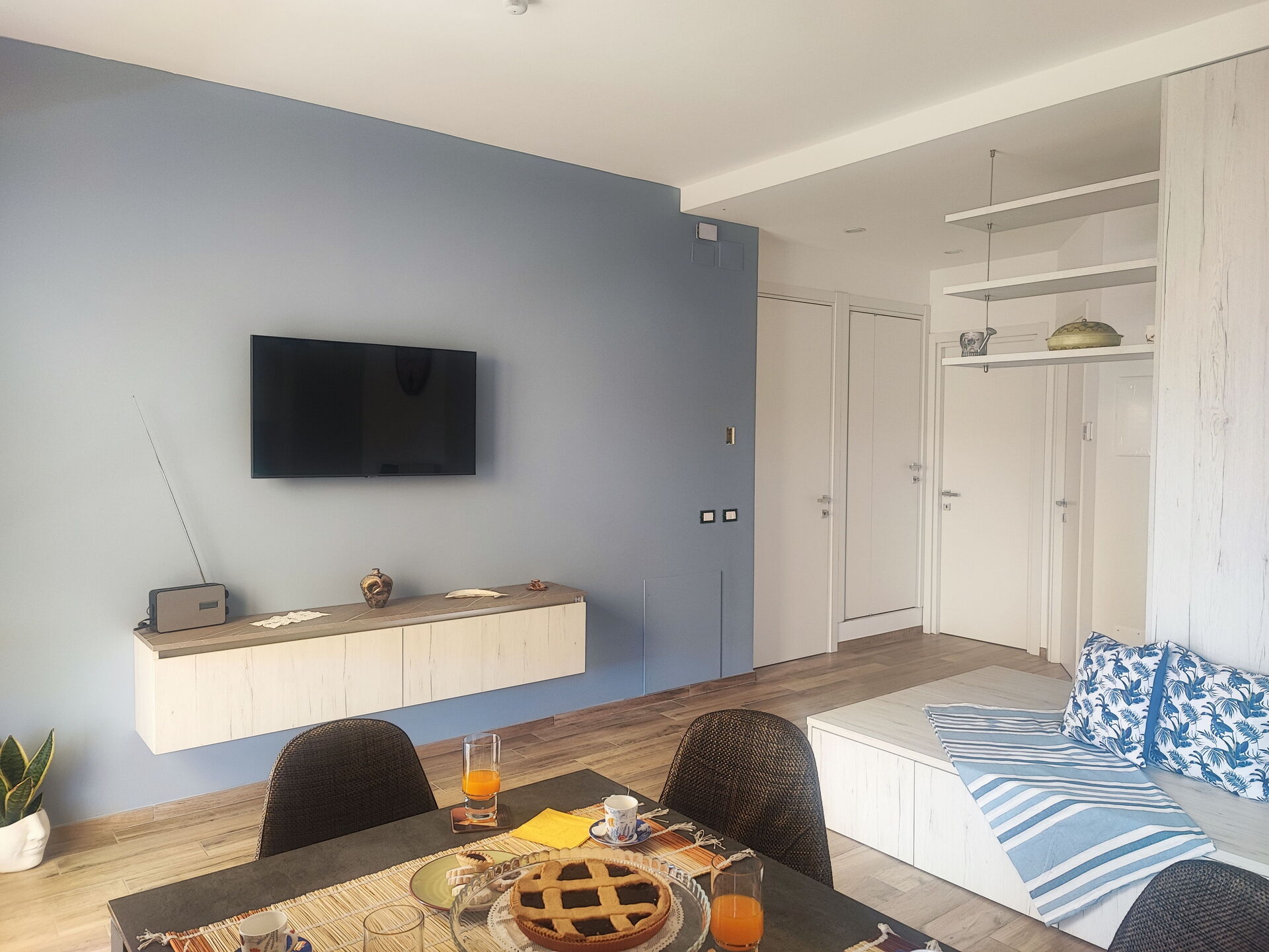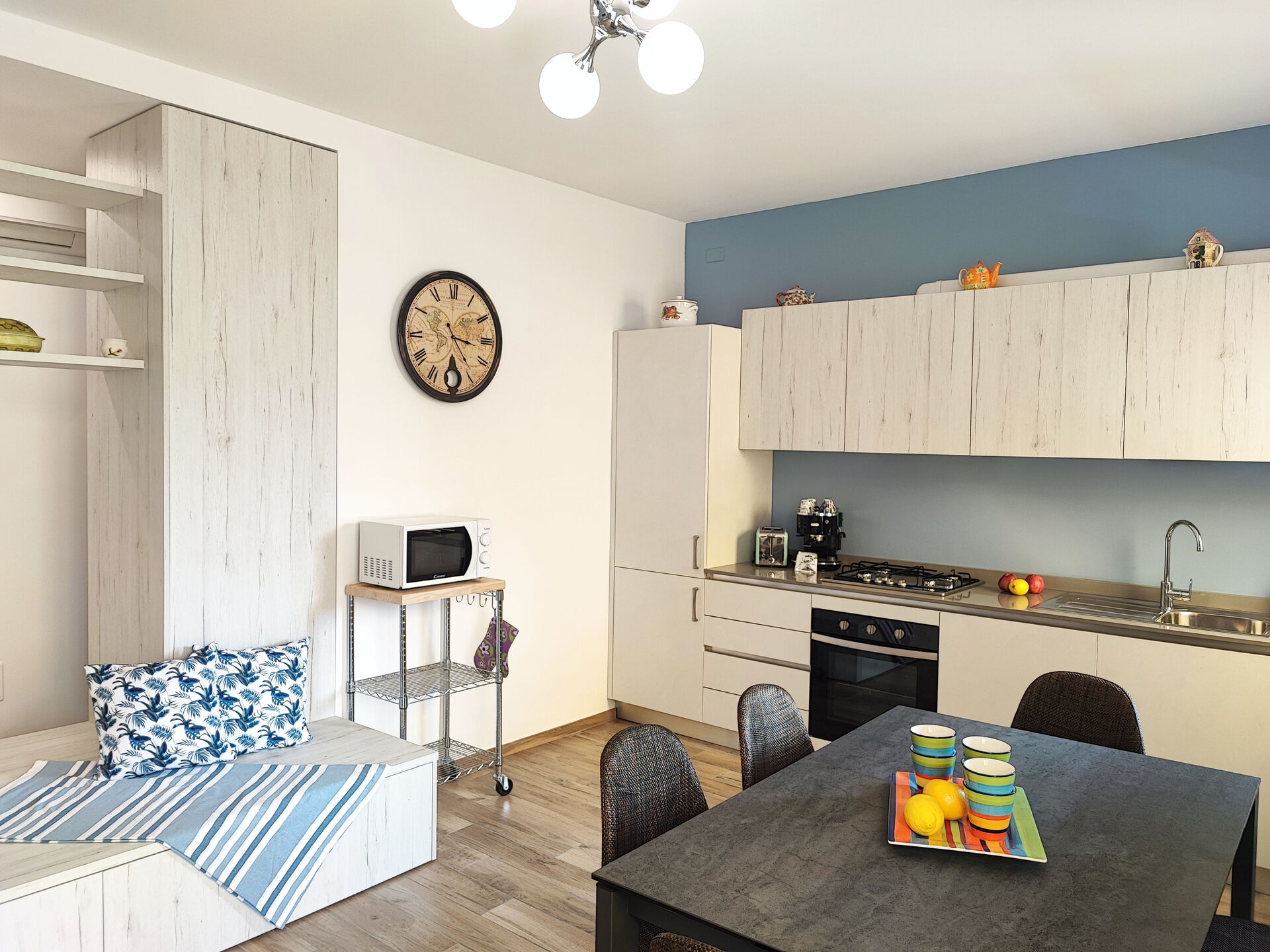 Wohnküche: gut ausgestattete Küche, Spülmaschine, Kühlschrank, Tiefkühler, Mikrowelle, Herd, Ofen, Italienische Kaffeemaschine, WiFi Internet, Klimaanlage, Satelliten-TV, Ausgang auf den Balkon.