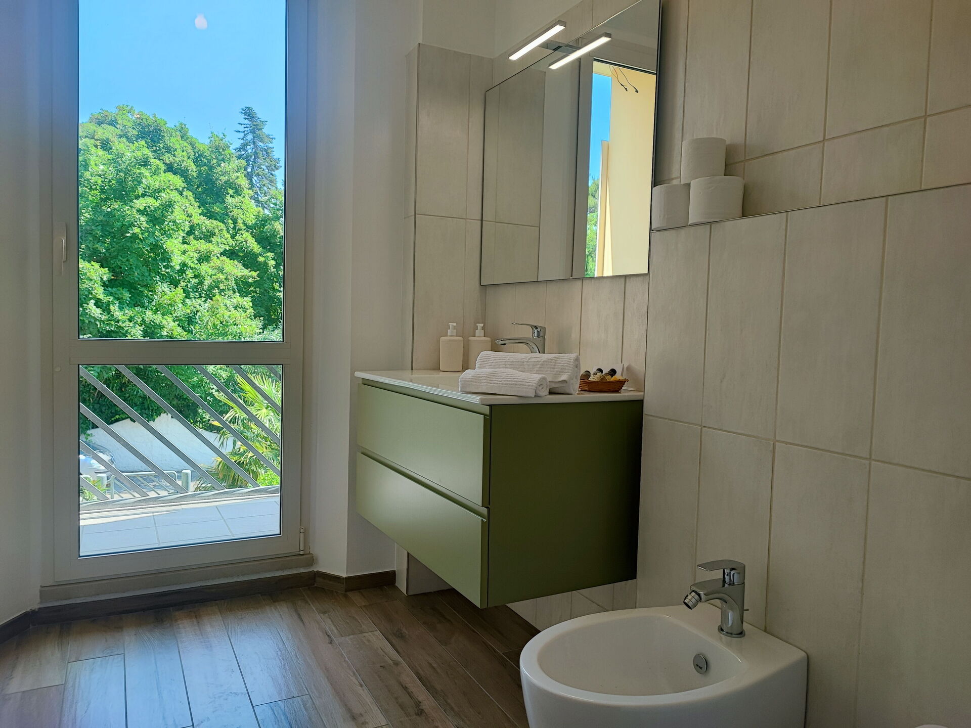Badezimmer: Waschbecken, WC, Bidet, Dusche, Waschmaschine, WiFi Internet.