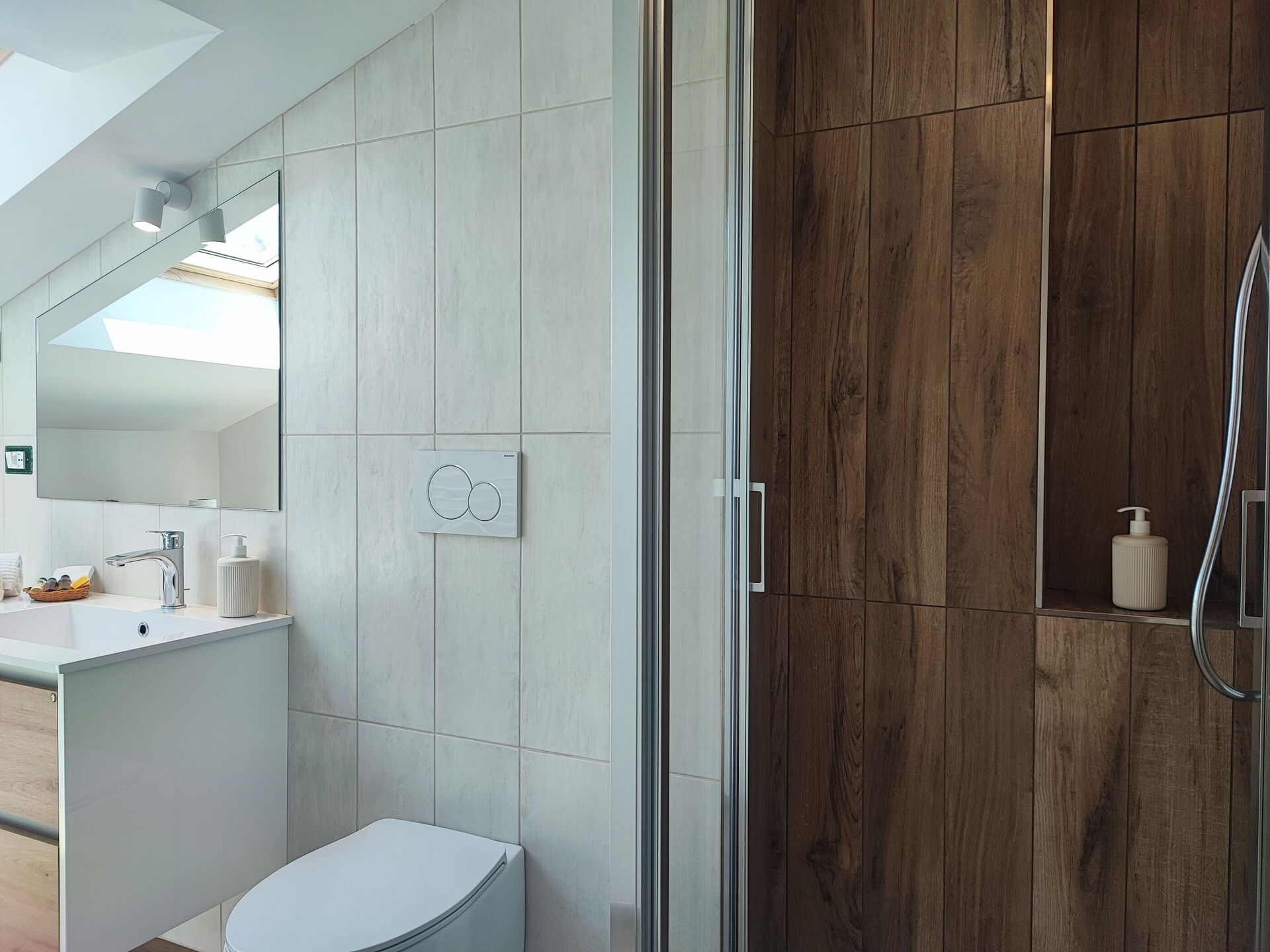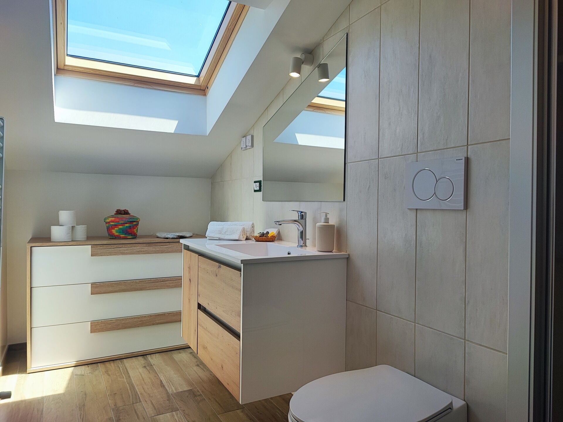 Badezimmer: Waschbecken, WC, Bidet, Dusche, WiFi Internet.