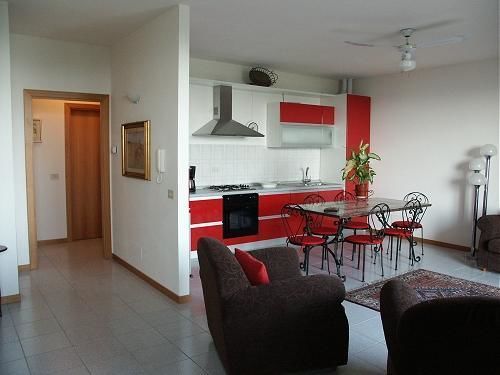 ( 130 sqm) One enters door to find large living area ( with air conditioning) with kitchen, stove, refrigerator and dishwasher.