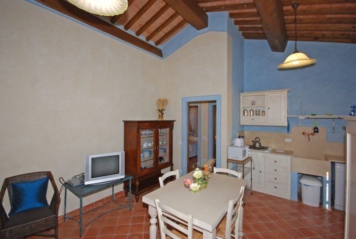 55 m2 1.Stock:Wohnzimmer mit Essecke (Satellitenfernsehen) mit Doppelschlafcouch und Kochecke (Gefrierfach, Waschmaschine, Mikrowelle), Doppelzimmer, Zweibettzimmer, Bad mit Dusche. Privater, ausgestatteter Außenbereich.