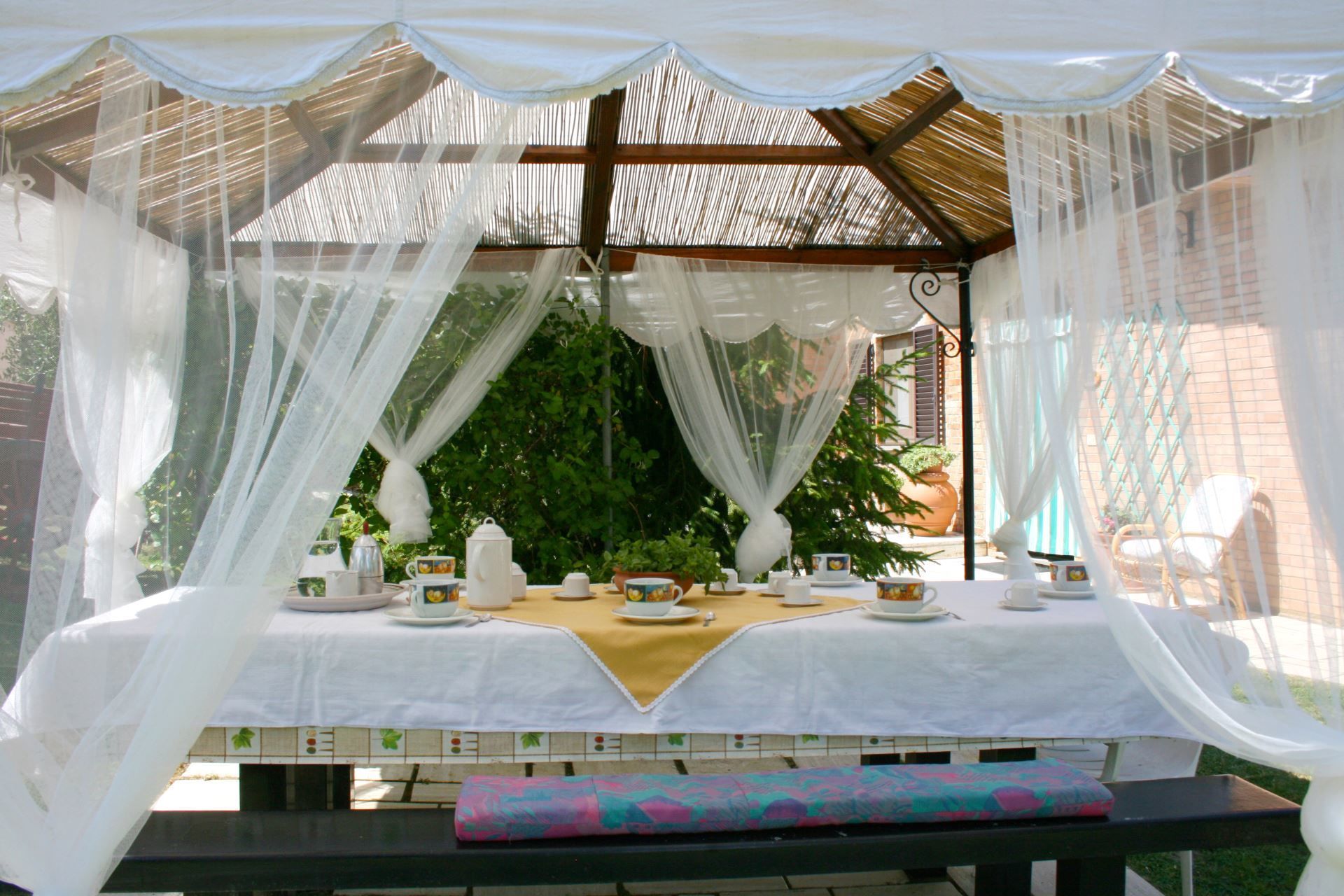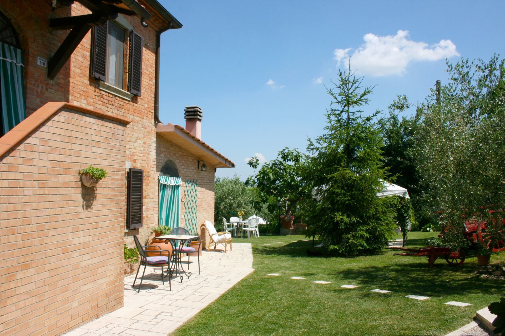 Die Villa verfügt über eine große eingezäunte und gut ausgestattete Grünfläche. Der Pavillon, der mit Vorhängen ausgestattet ist, um Schatten und Kühle zu gewährleisten, die Gartenmöbel, der Grill und der Holzofen laden dazu ein, eine schöne Zeit mit der Familie zu verbringen, einschließlich Abendessen und Barbecues, natürlich begleitet von einer Flasche Nobile di Montepulciano Wein.