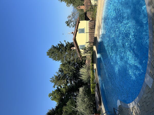 Dieses schöne Anwesen hat etwas Besonderes an sich. Es liegt in den bewaldeten Hügeln, die das Chiana- und das Arnotal voneinander trennen, und aufgrund seiner Lage auch einen leichten Zugang zu den Städten Arezzo, Florenz und Siena hat. Vielleicht ist es der gepflegte, von hohen Kiefern beschattete und komplett eingezäunte Panoramagarten, der schöne private Swimmingpool (Größe 6 x 9 m - Tiefe 1,20 m - geöffnet vom 01. Mai bis 30. September) oder vielleicht der Jacuzzi (6 Plätze - gegen Aufpreis) inmitten der Olivenbäume?... Oder es könnte die Idee der Landvilla selbst sein, ihre abgelegene, aber nicht isolierte Lage und die warme Atmosphäre, die im Inneren mit Pastellfarben und Möbeln im rustikalen Stil geschaffen wird.
