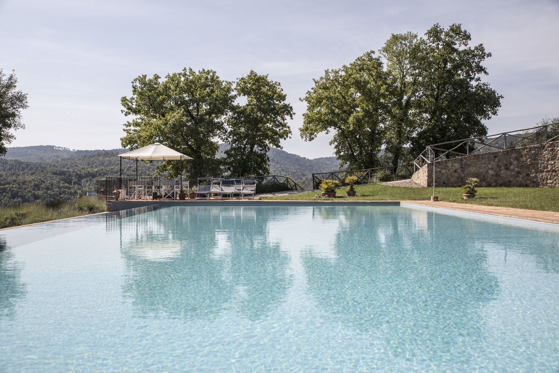 Wunderschöne herrschaftliche Villa mit privatem Schwimmbad, gelegen in absoluter Ruhe inmitten eines grossen Grundstücks auf dem Rücken einer Hügelkette mit wunderschönem Ausblick auf das Naturschutzgebiet des „Basso Merse“mit dem Berg „Amiata“ am Horizont.