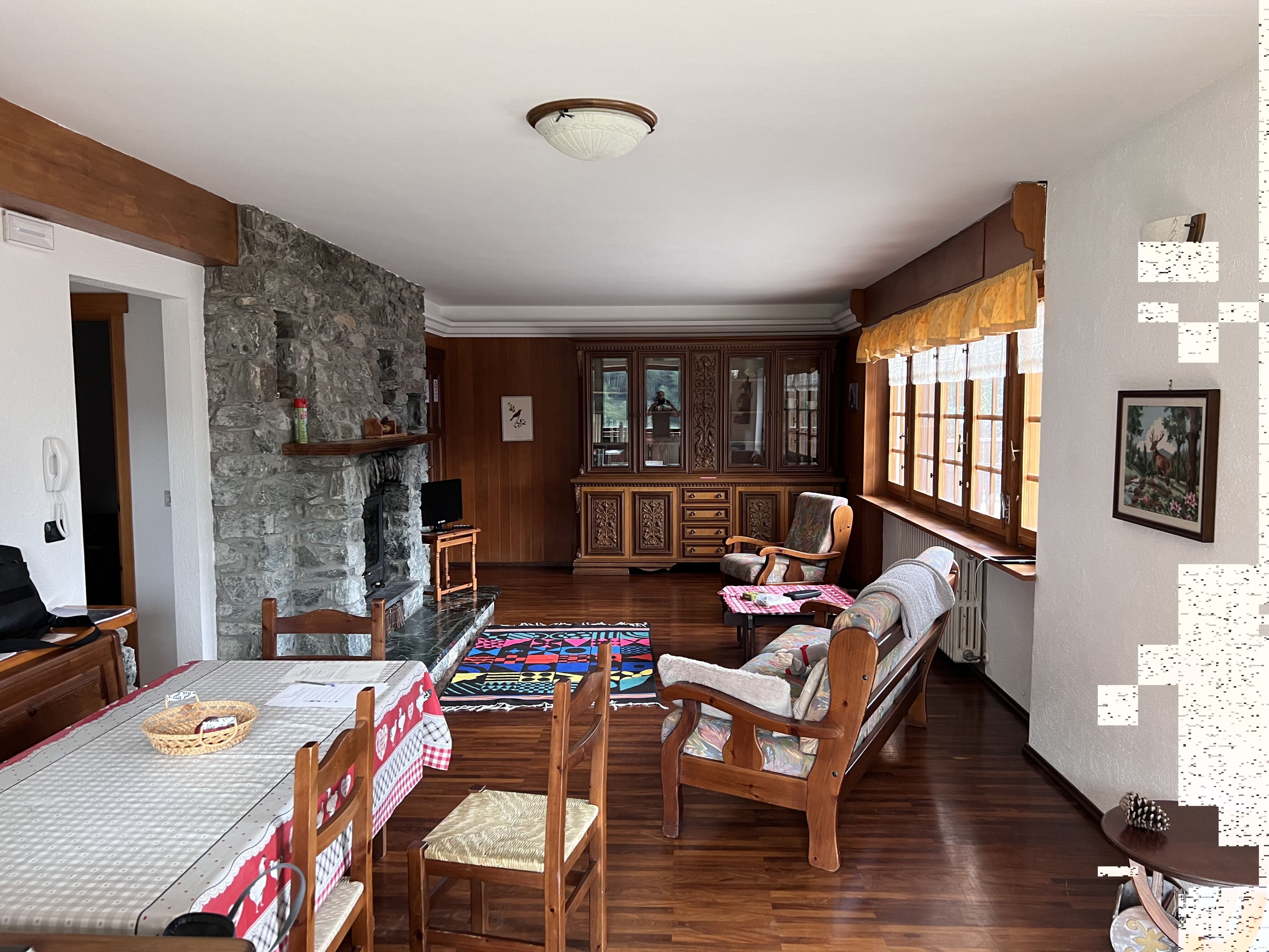 Die Ferienwohnung "Aigle" umfasst 100 m² auf dem Erdgeschoss und bietet Platz für bis zu 6 Gäste in 2 Schlafzimmern und 1 Bad. Der Wohnbereich ist großzügig gestaltet und verfügt über einen Kamin mit offenem Herd sowie direkten Zugang zu einer großen Terrasse mit Terrassenmöbeln und Blick auf die Berge, das Tal und den Garten. Das erste Schlafzimmer ist mit einem Doppelbett ausgestattet, das zweite Schlafzimmer mit einem Etagenbettensatz und einem zusätzlichen Doppelbett. Die Küche ist als Kitchenette mit Esstisch und Essecke konfiguriert. Das Bad verfügt über eine Dusche, ein Bidet und ein WC.