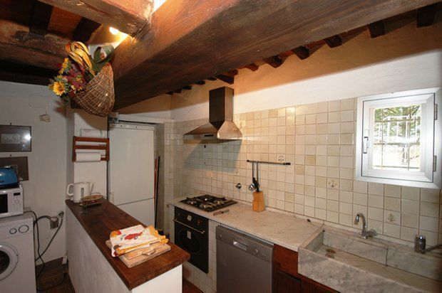 Erdgeschoss: Wohnzimmer (Satelliten TV,DVD),grosse charakteristische Küche,(Backofen,kleine Mikrowelle,Gefrierschrank,Spülmaschine ,Waschmaschine,Toaster,Moka,antikes Marmorwaschbecken) mit Tisch und Kamin,Wohnzimmer,Doppelzimmer mit Ehebett,Zweibettzimmer,Bad mit eingelassener Badewanne und 2 Waschbecken.Privater Aussenplatz mit Tisch und Stühlen.