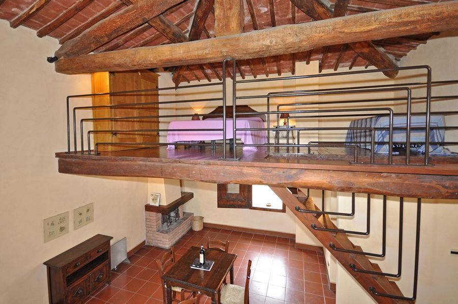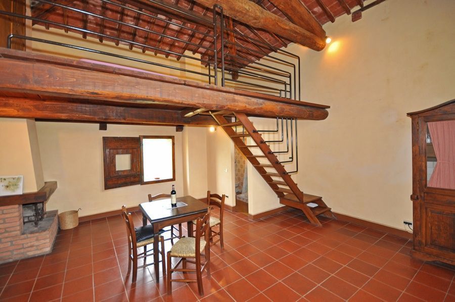2.Stock:Wohnzimmer mit Kamin und Essbereich mit Kochecke,Bad mit Dusche.